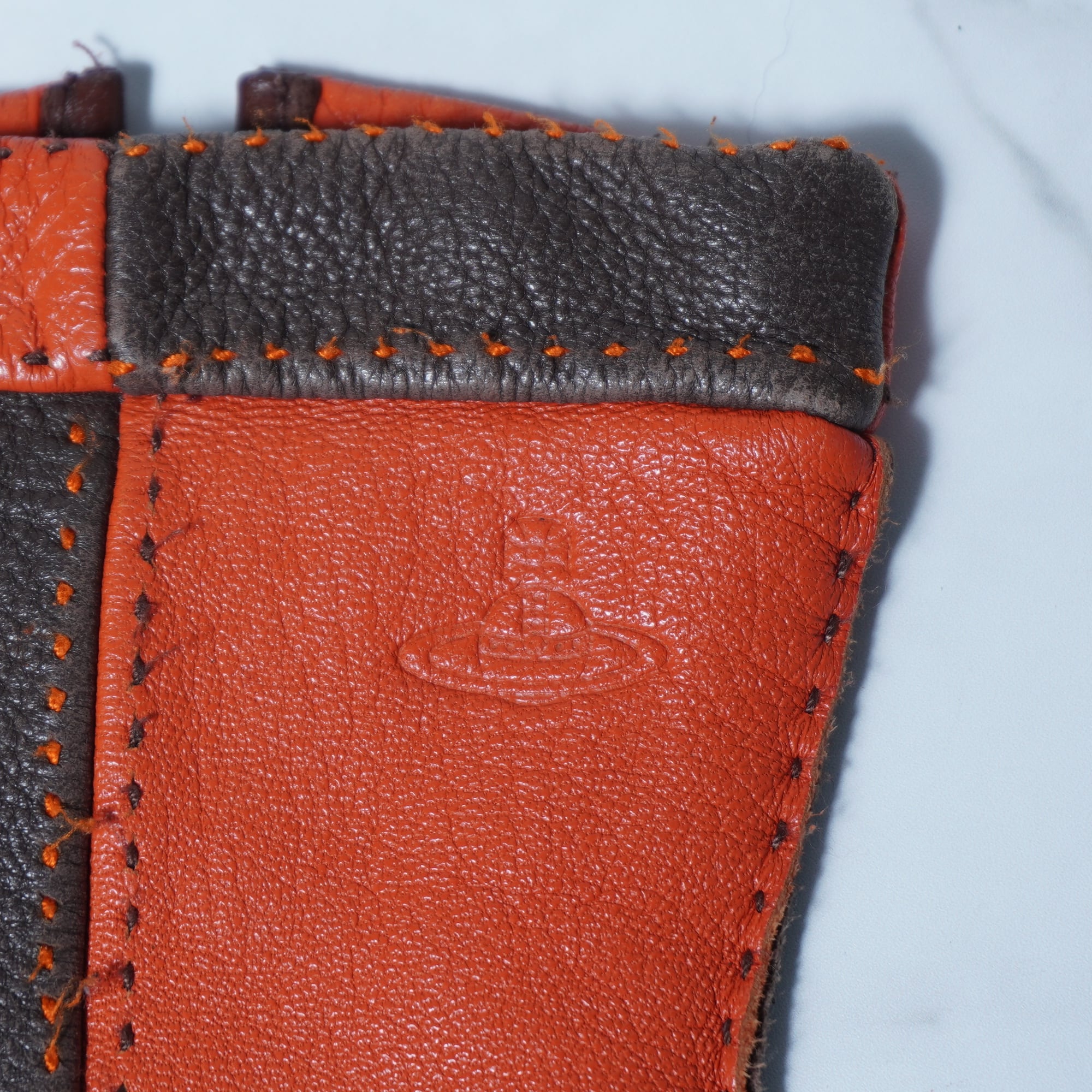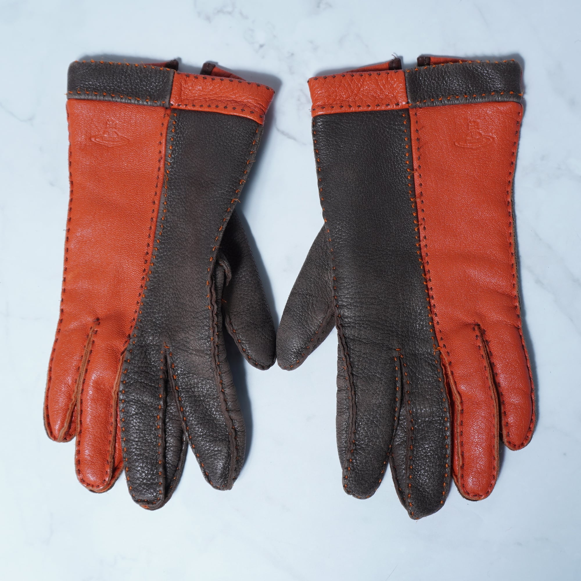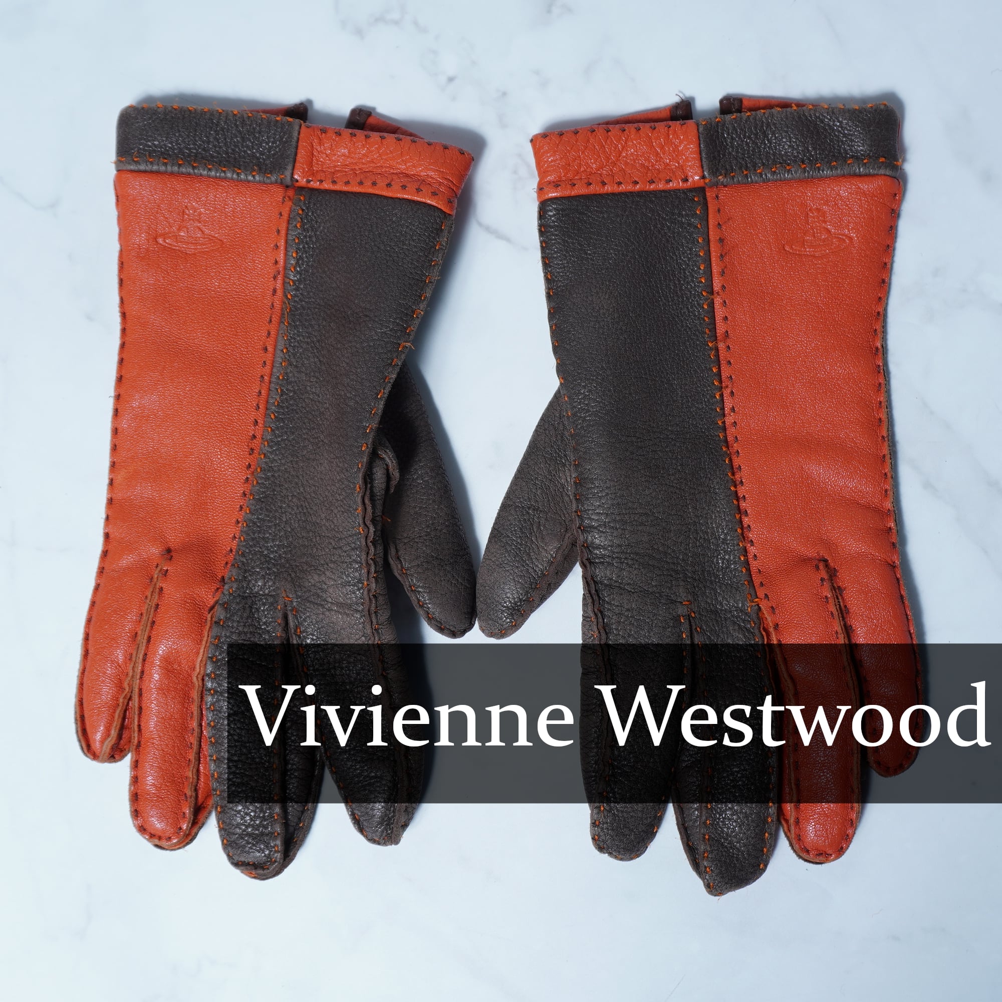 【Vivienne Westwood】ヴィヴィアンウエストウッド "オーブロゴ” 2トーンレザーグローブ orange&brown