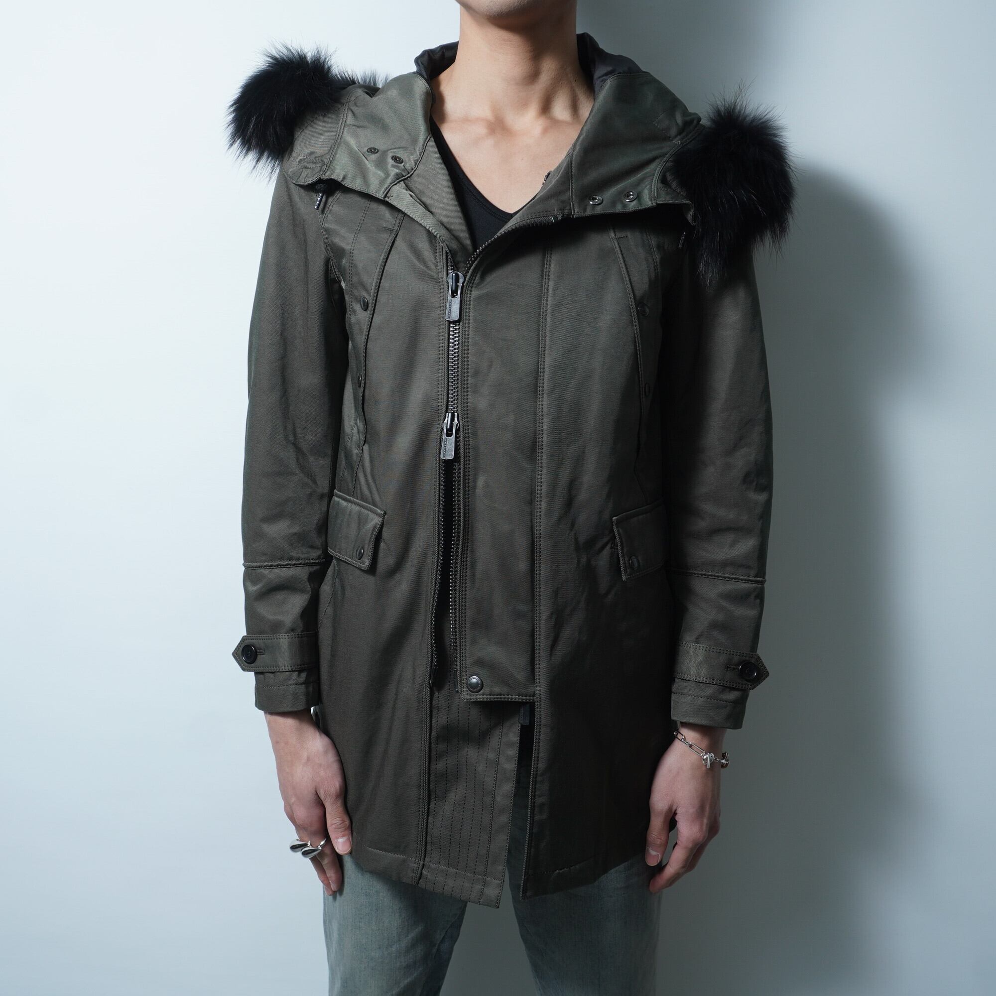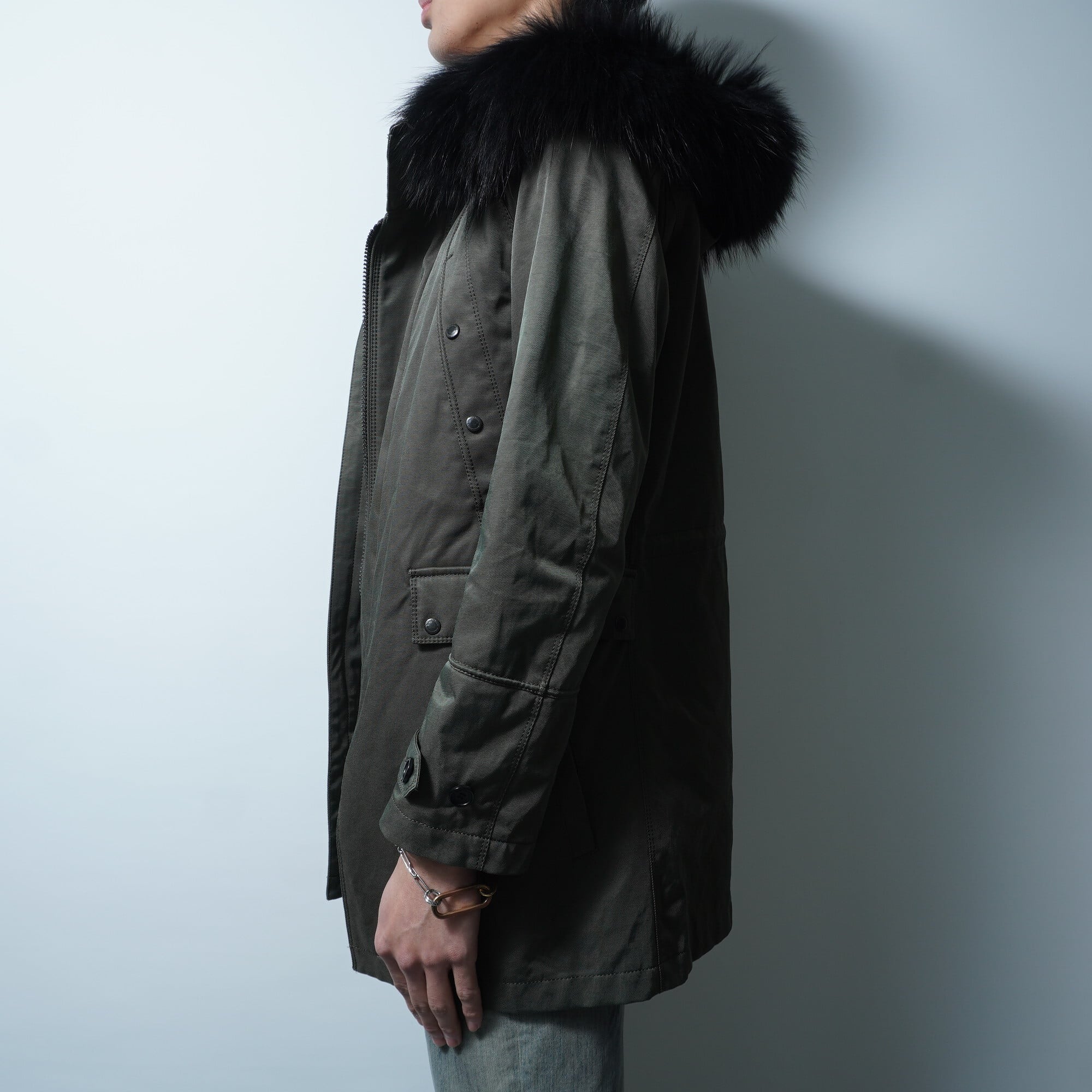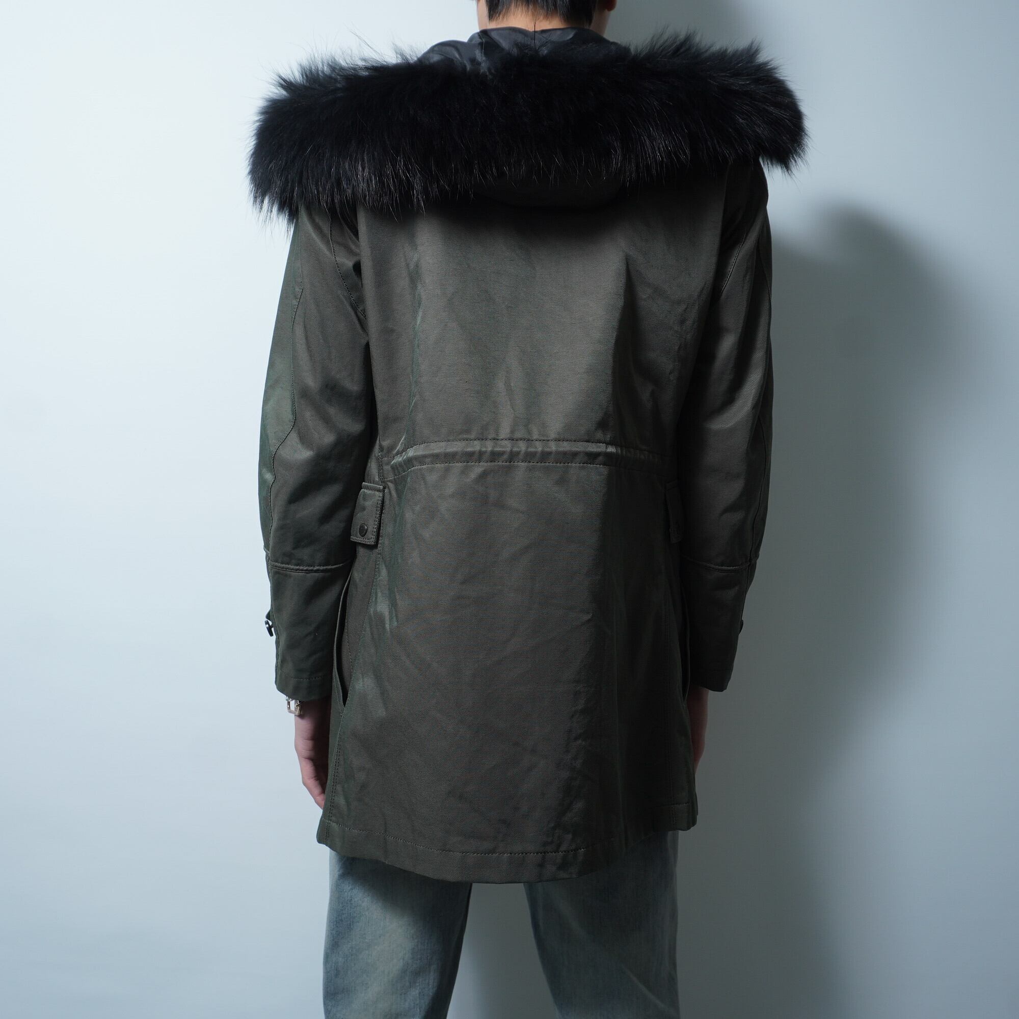 【BLACK BARRETT】ブラックバレット バイニールバレット タヌキファーナイロンライナー付きモッズコート khaki