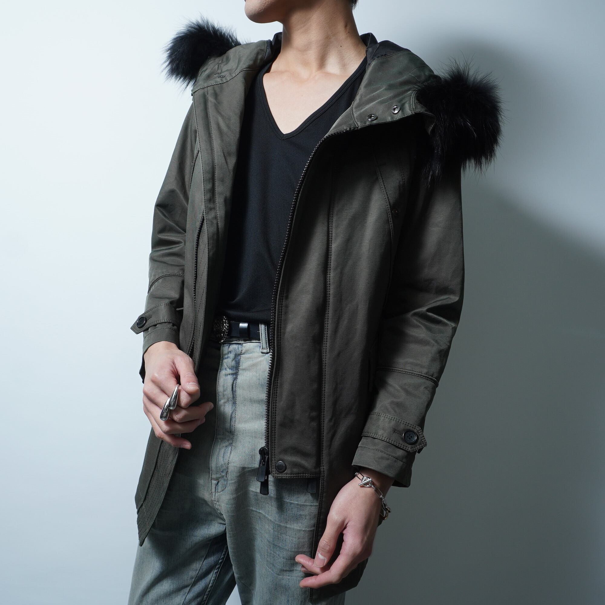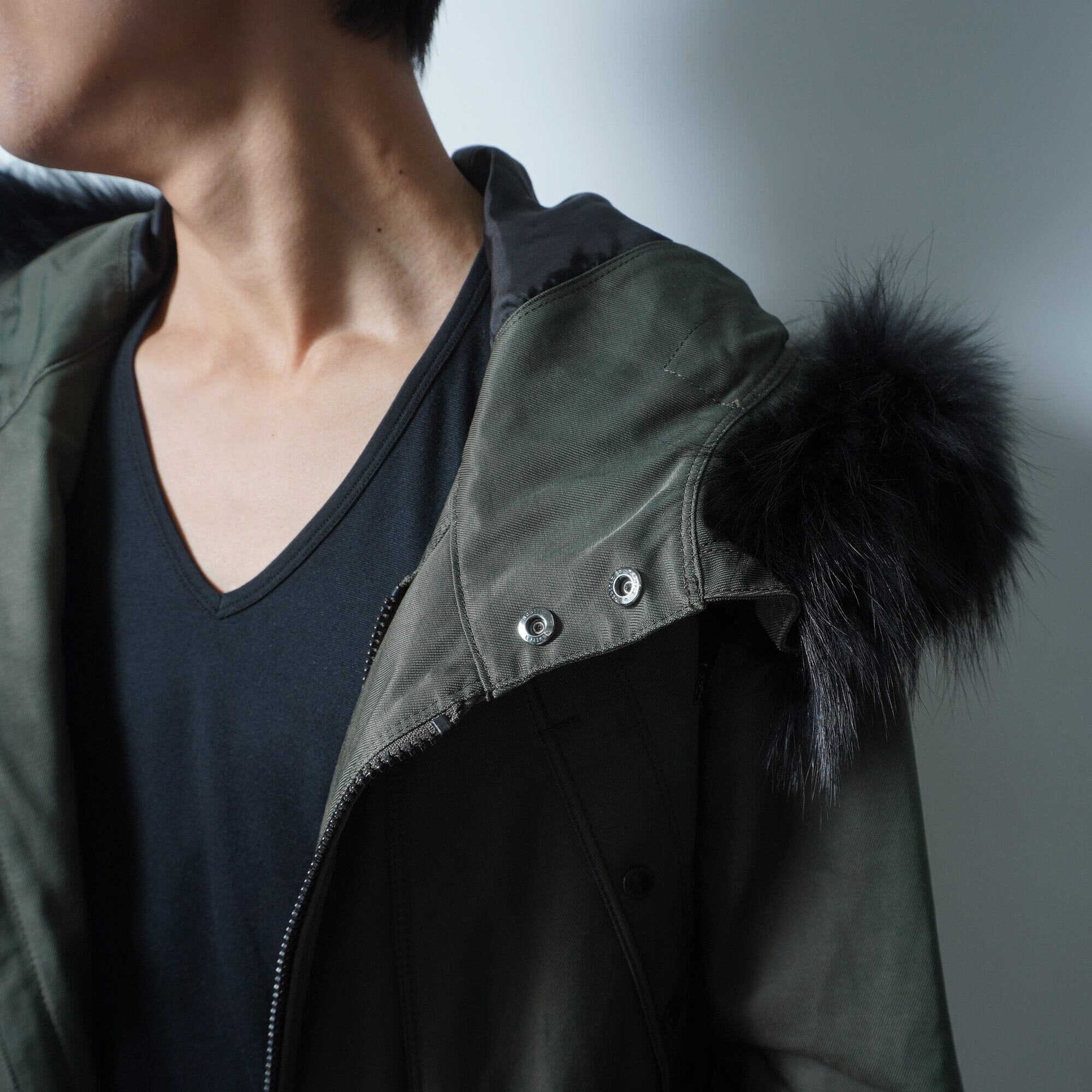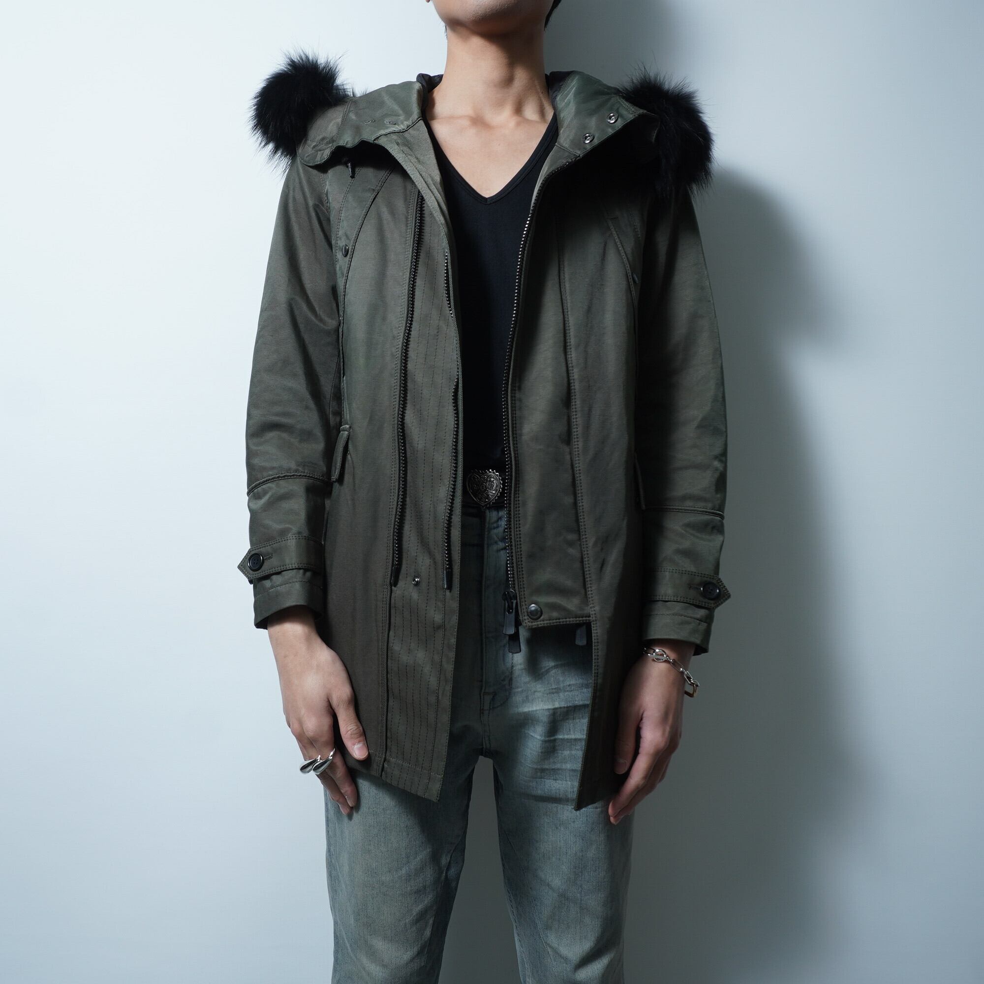 【BLACK BARRETT】ブラックバレット バイニールバレット タヌキファーナイロンライナー付きモッズコート khaki