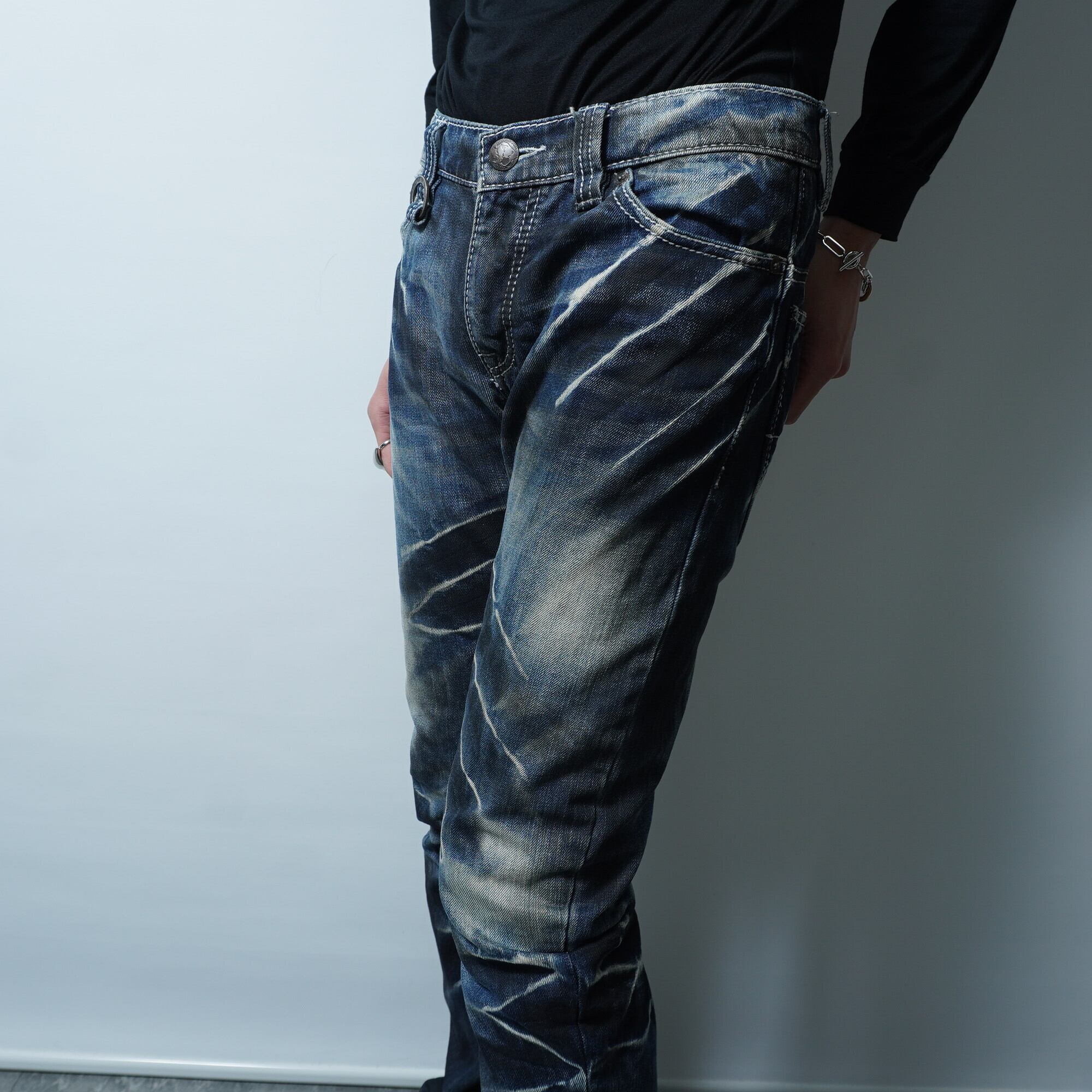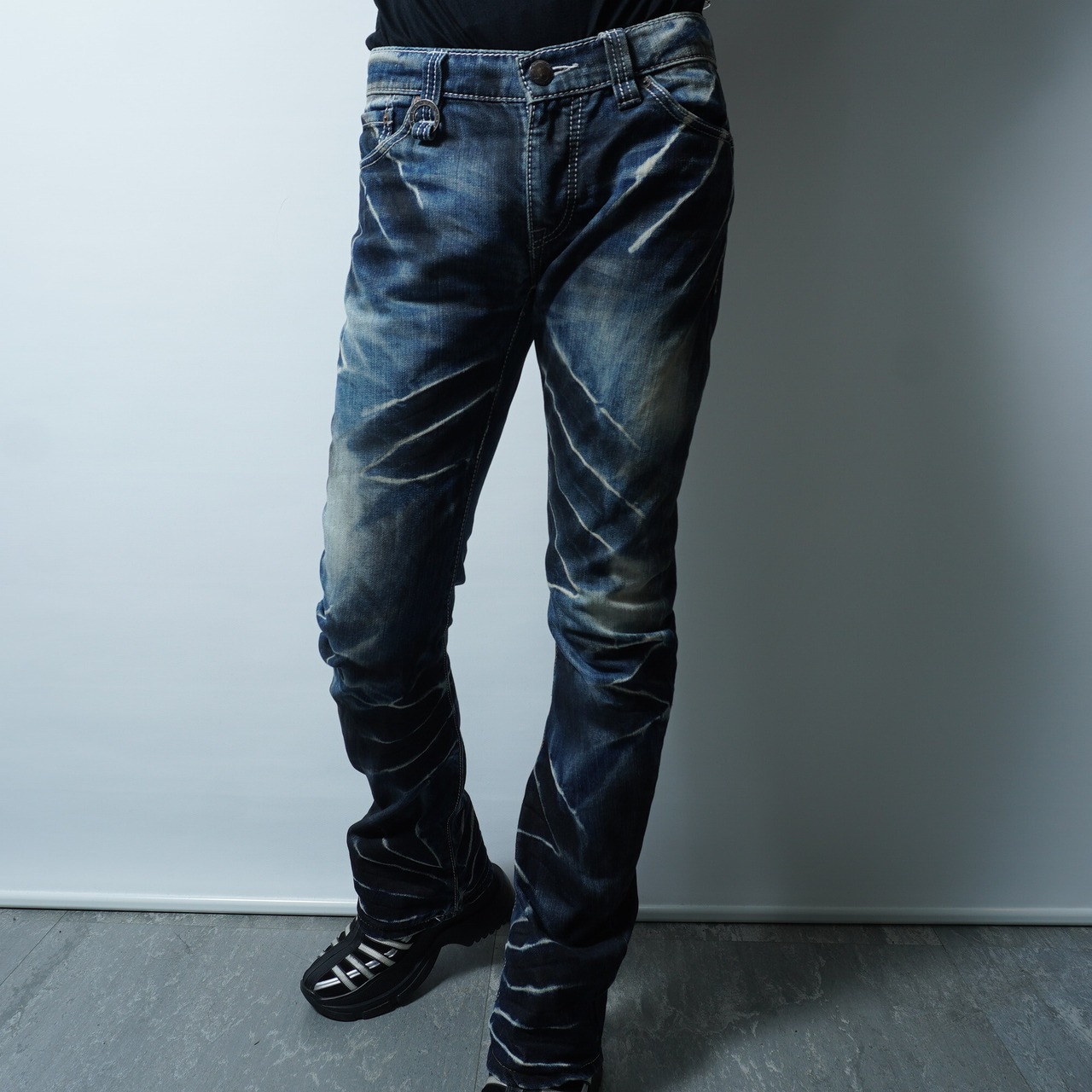 【BUFFALO BOBS】バッファローボブズ 00's Y2K 鬼ヒゲ 顔料加工フレアデニムパンツ japanese label