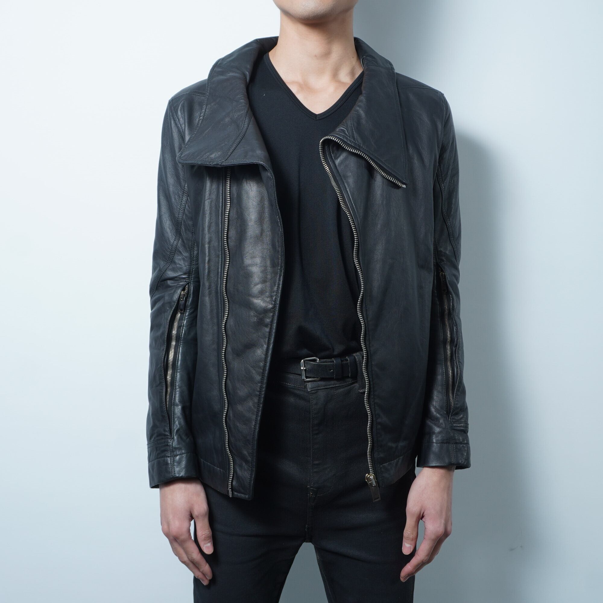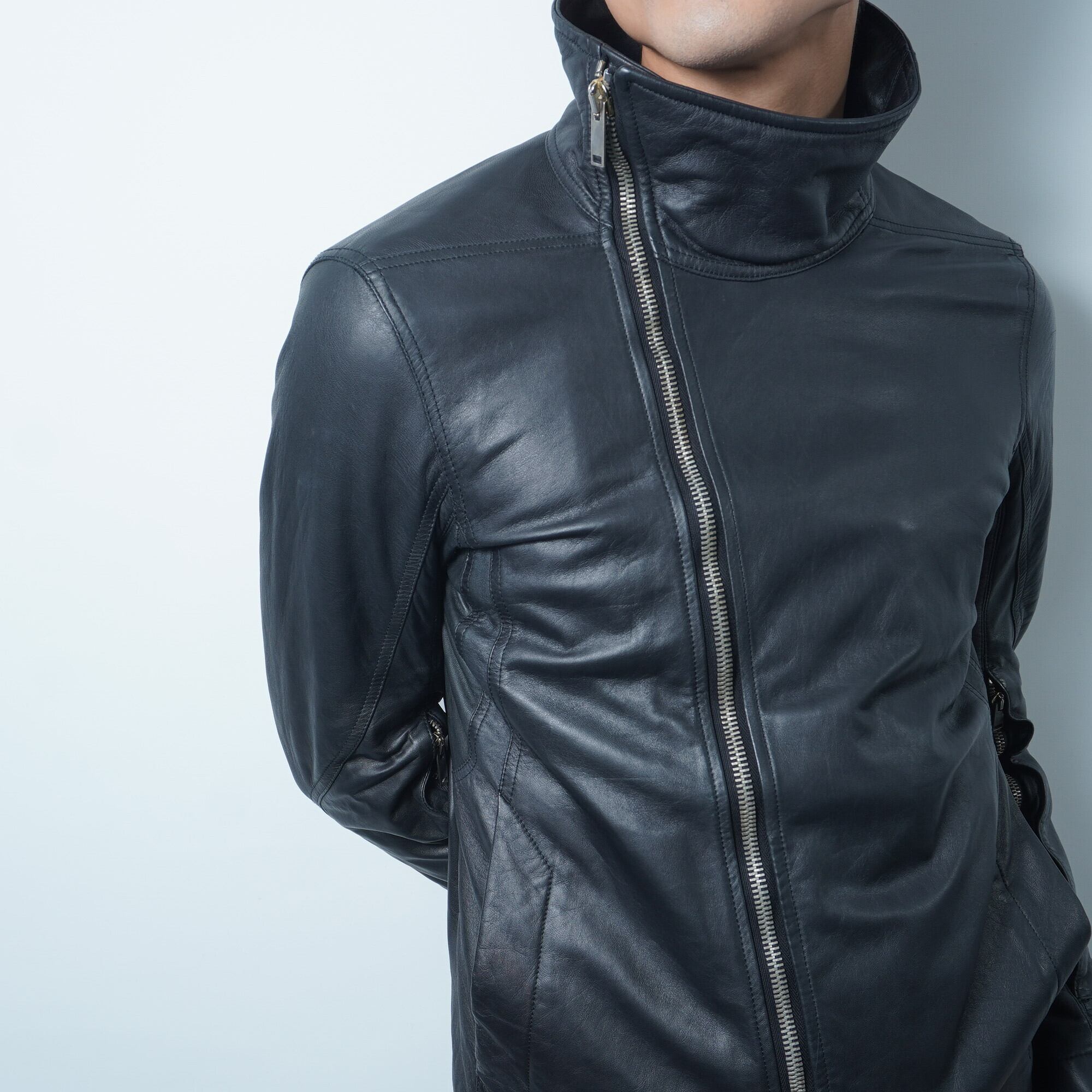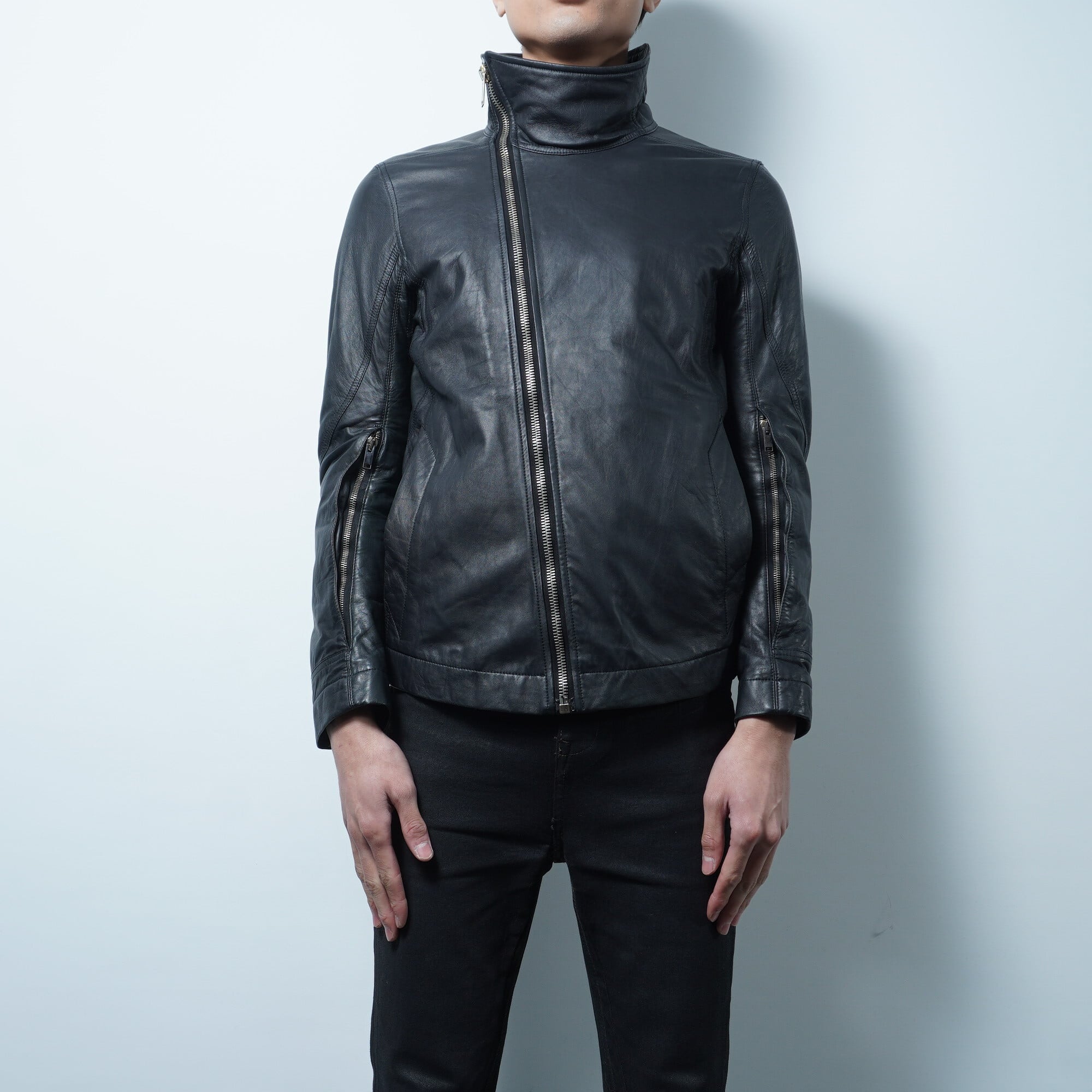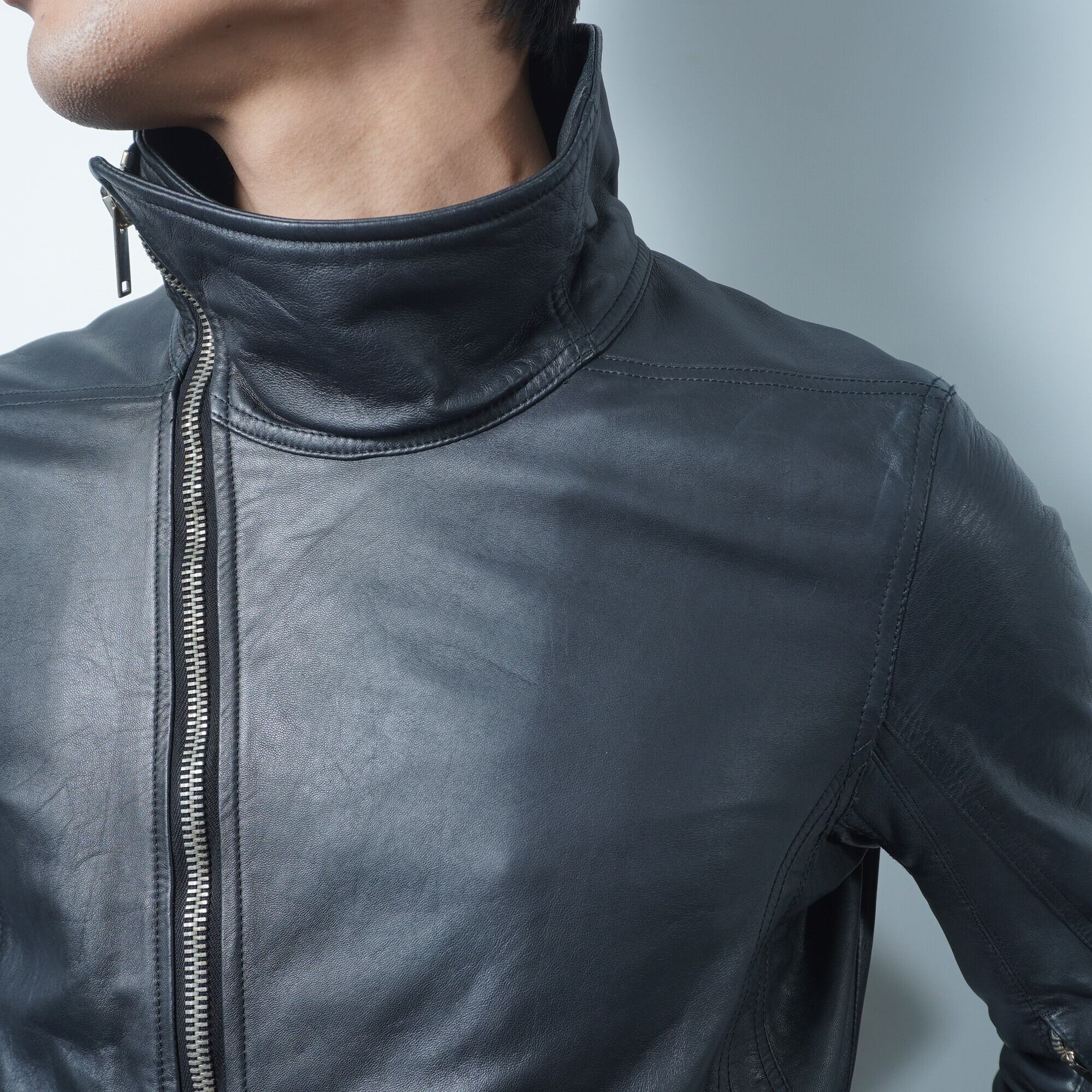 【Rick Owens】リックオウエンス 15ss ラムレザー斜めジップハイネックジャケット black