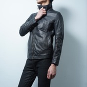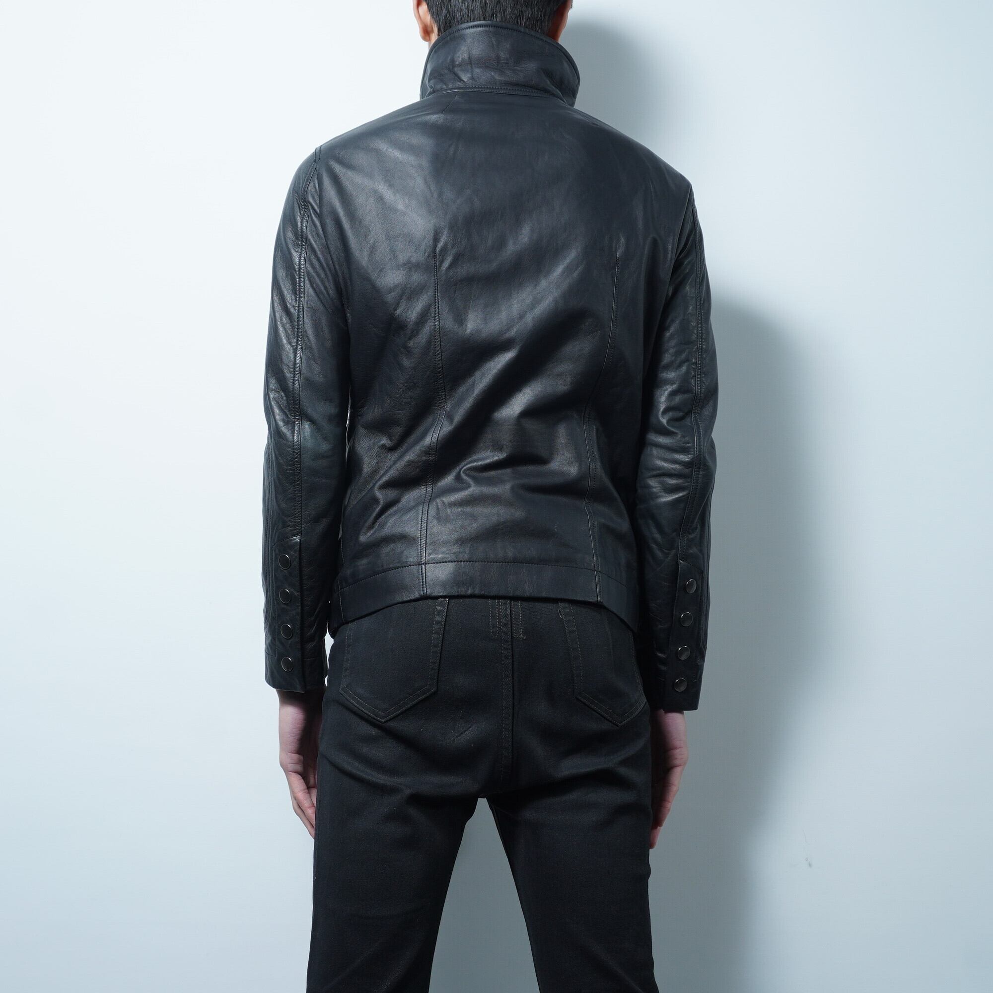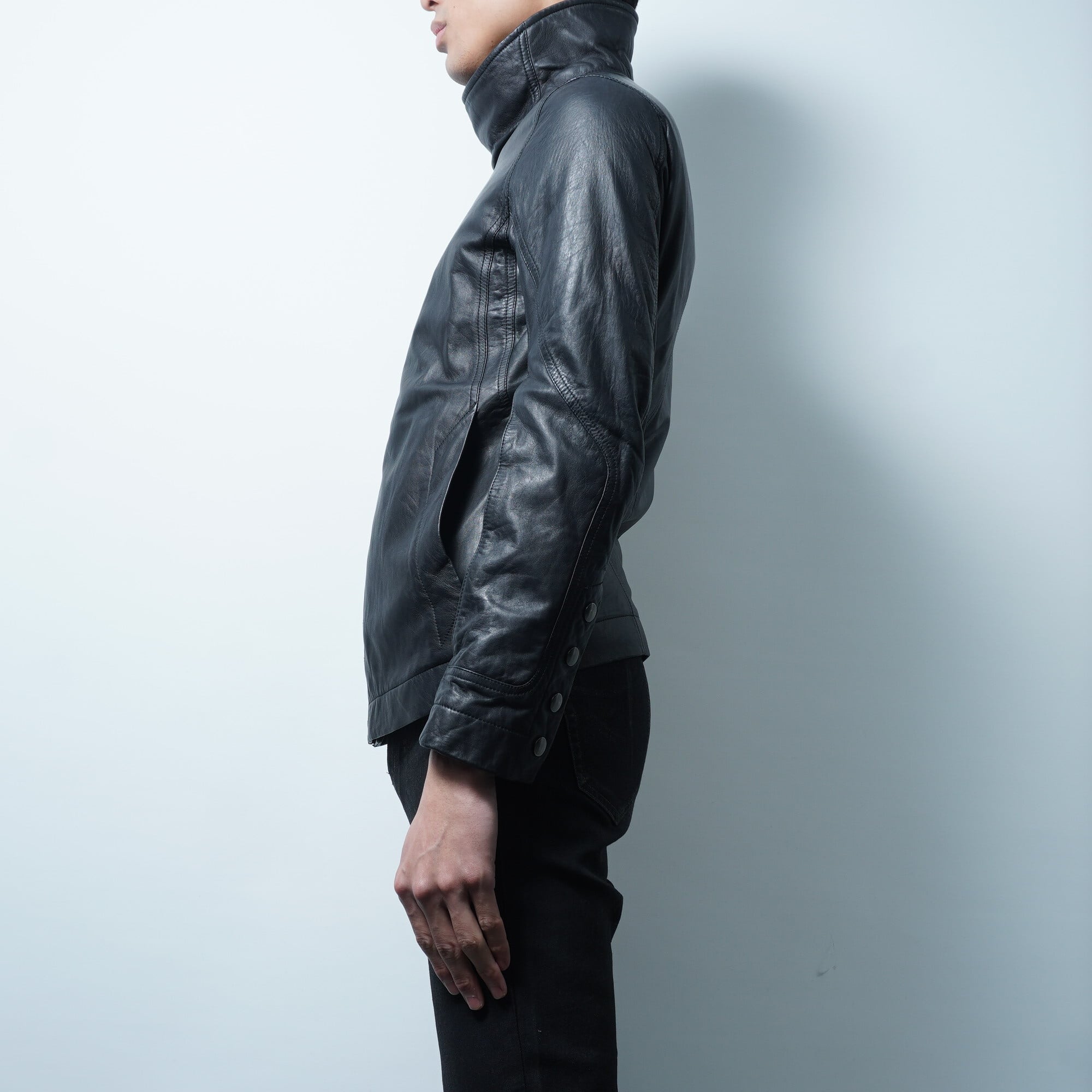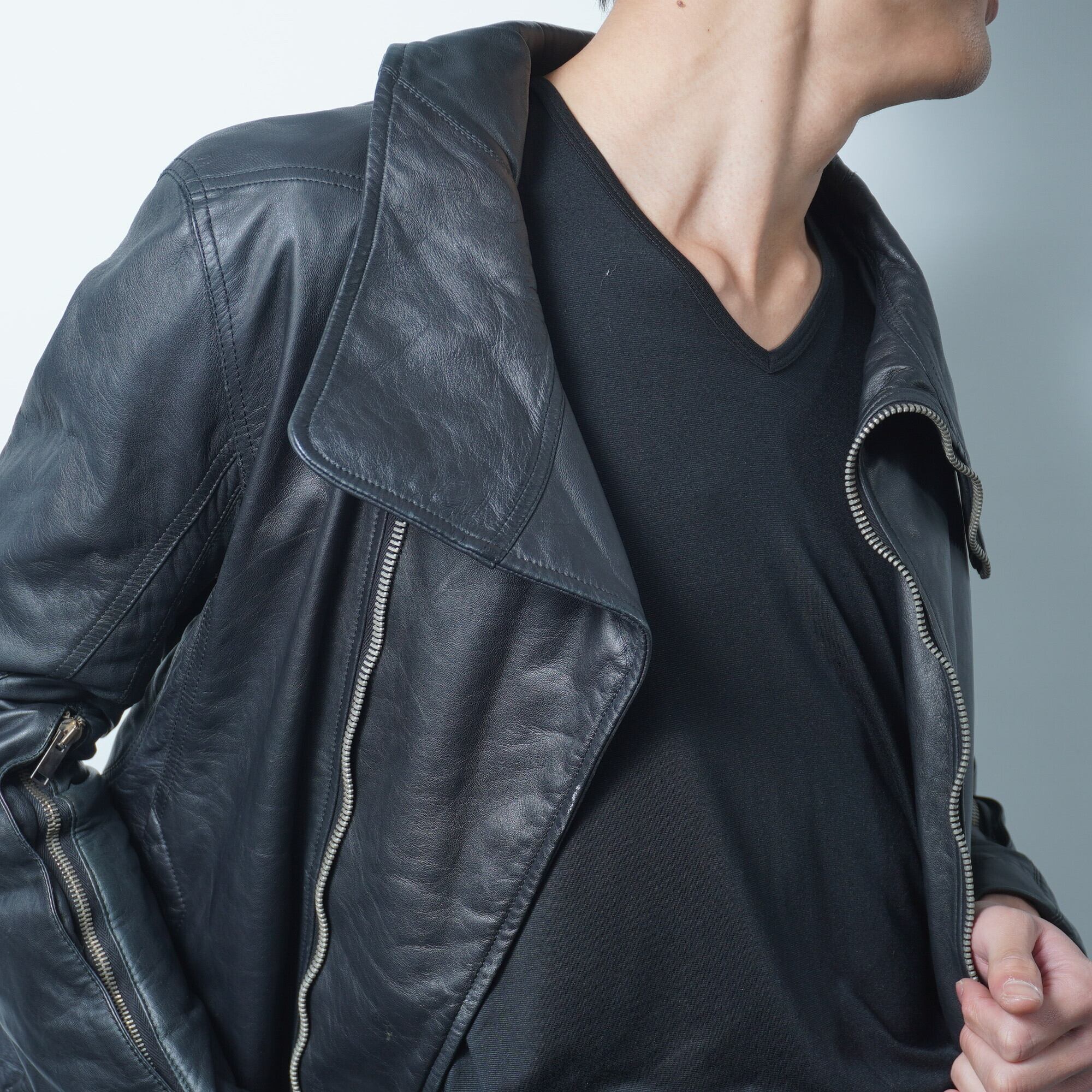 【Rick Owens】リックオウエンス 15ss ラムレザー斜めジップハイネックジャケット black