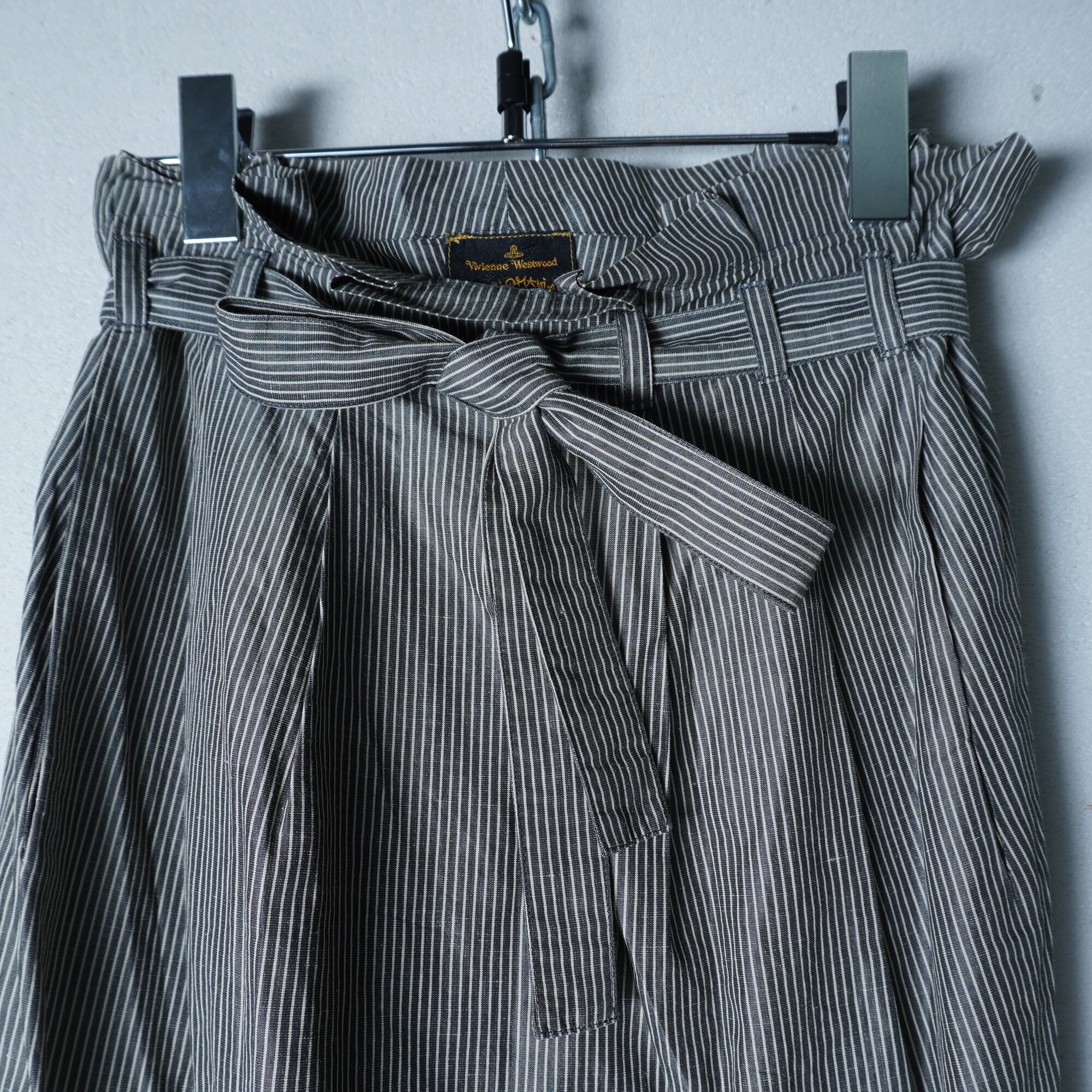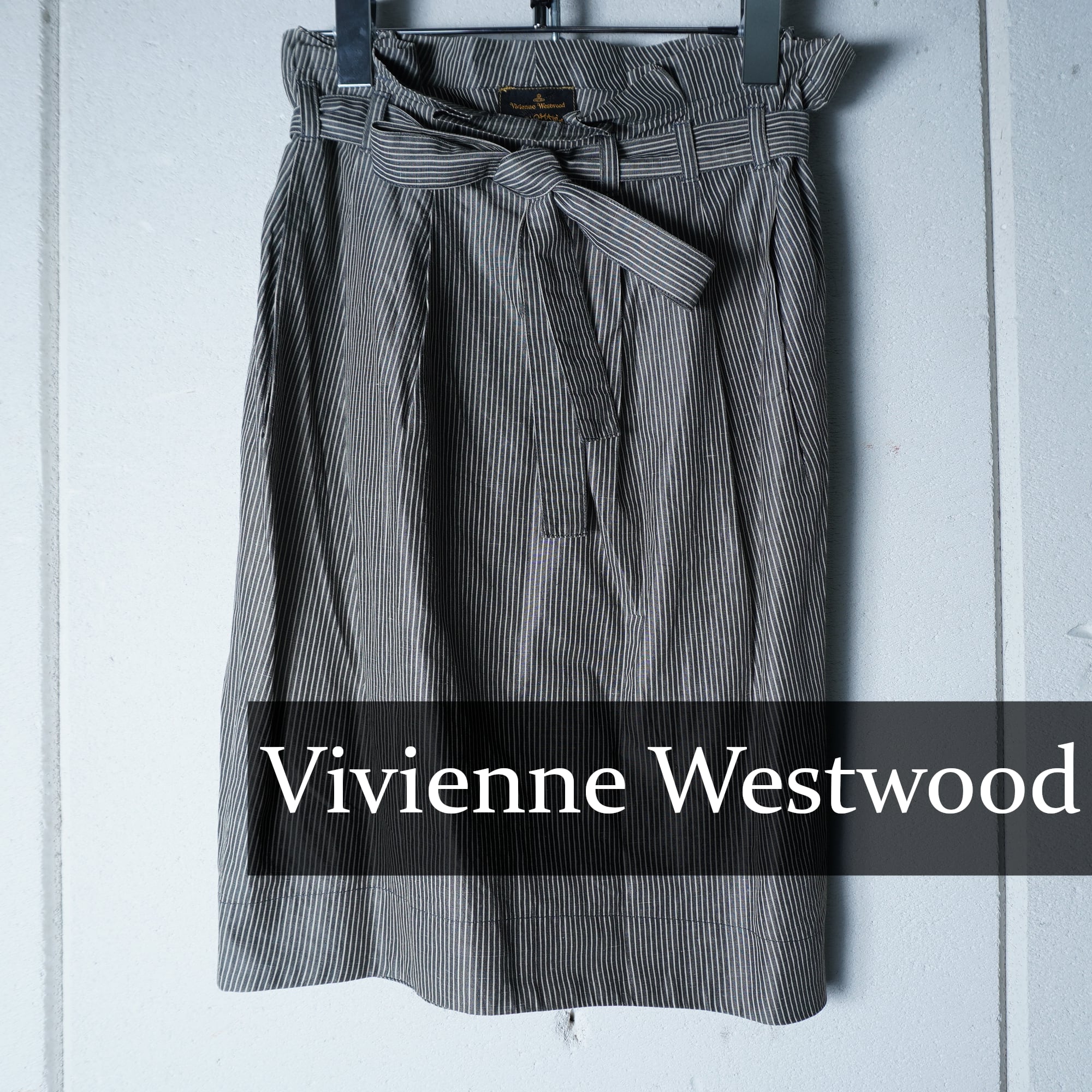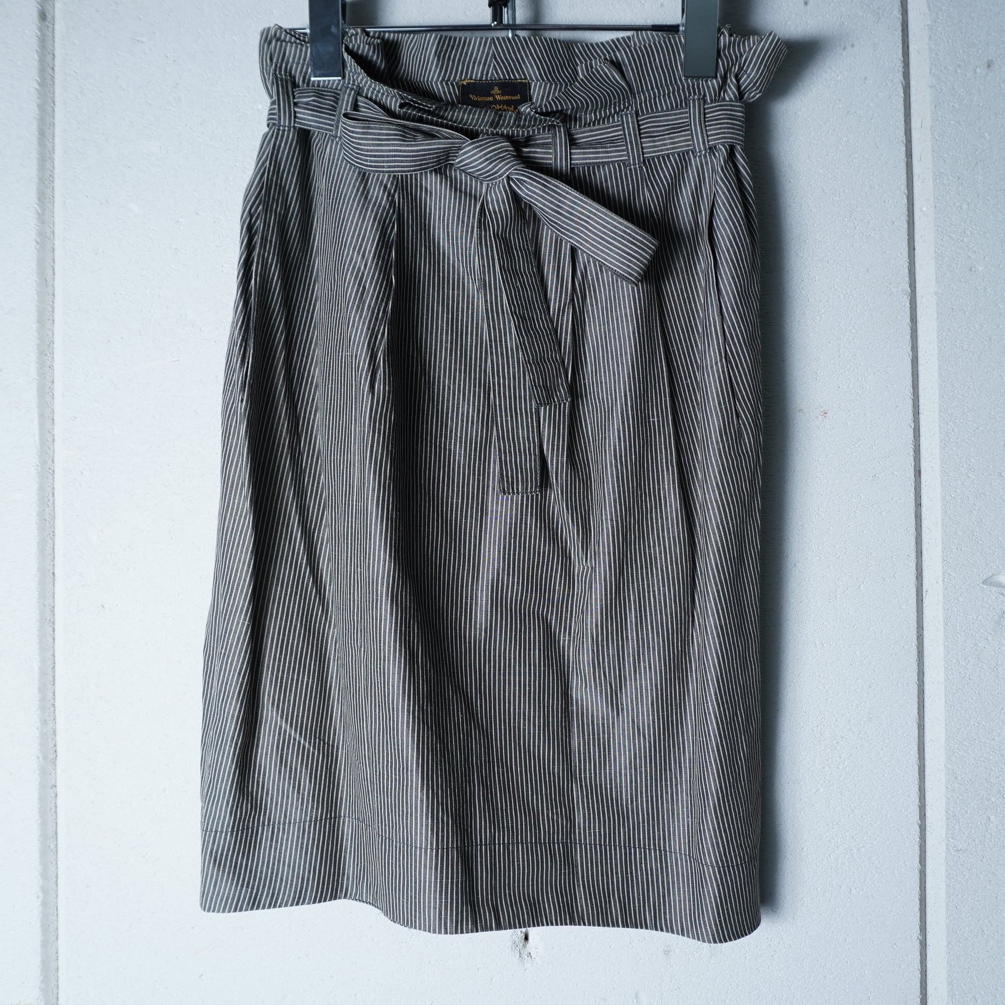 【Vivienne Westwood】ヴィヴィアンウエストウッド ベルト付ストライプスカート gray