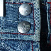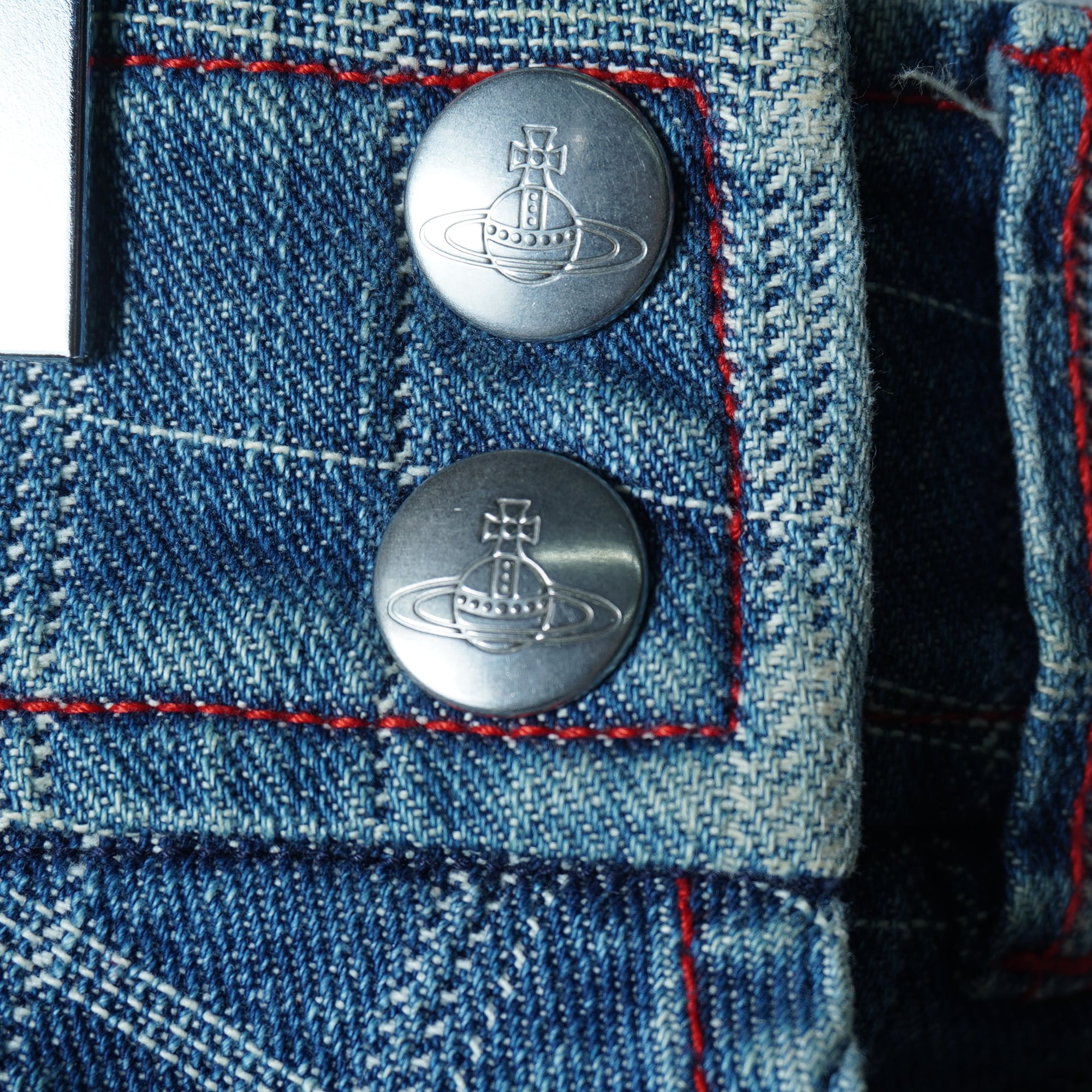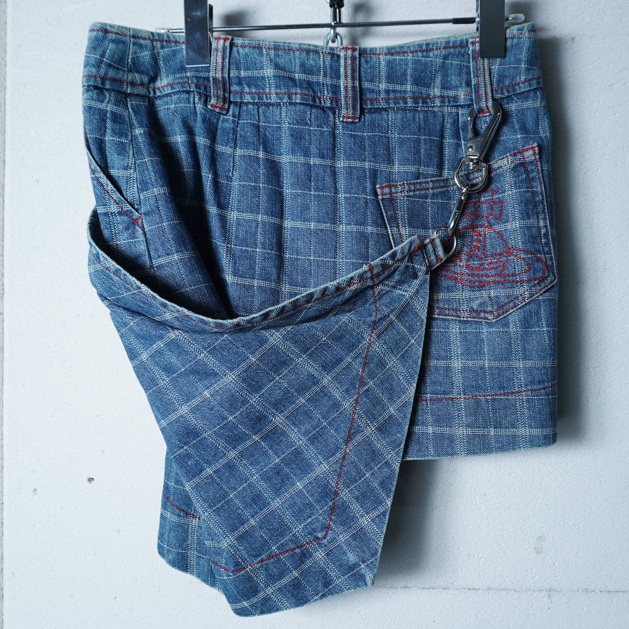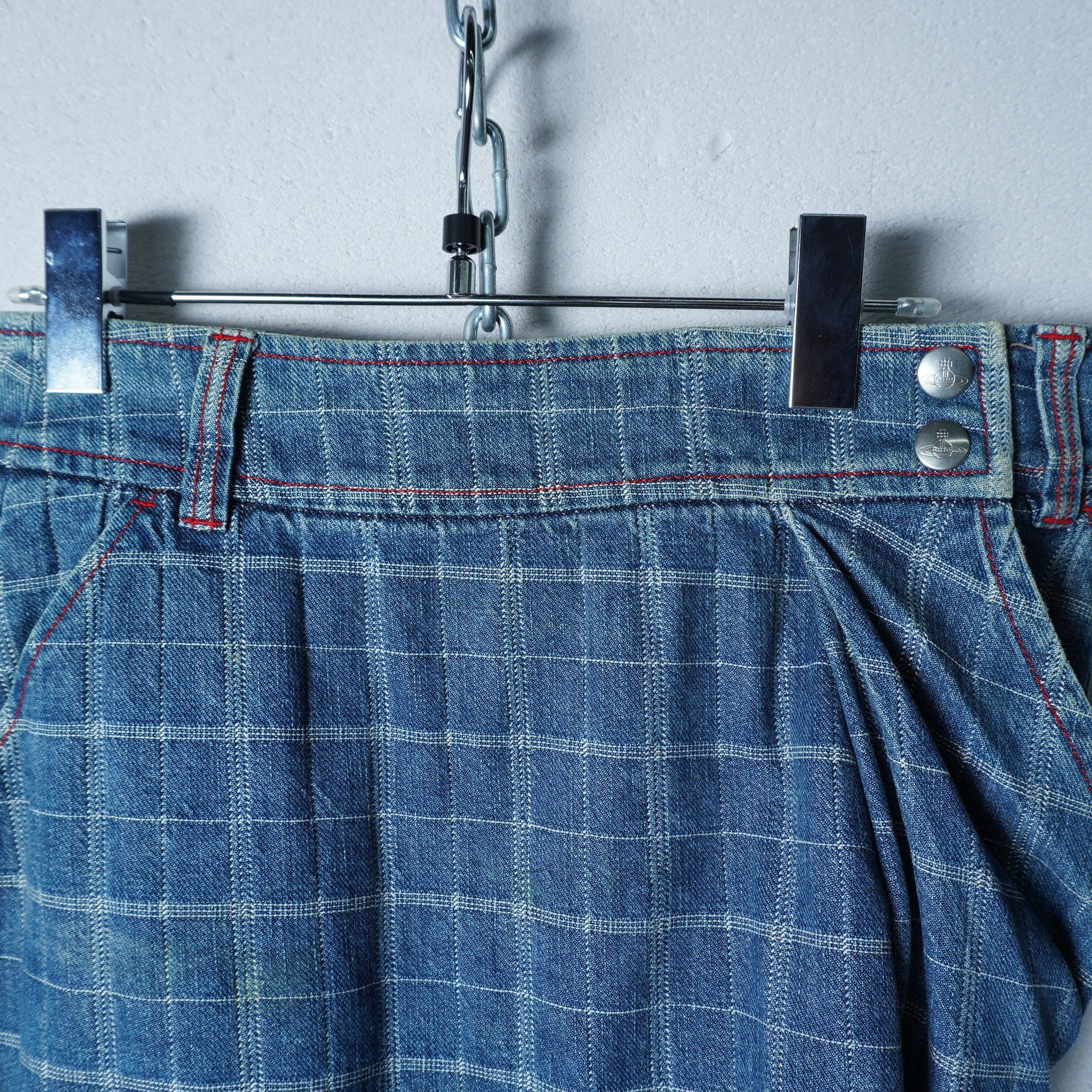 ・ヴィヴィアンウエストウッドならではのオーブロゴボタンが特徴のデニムラップスカート