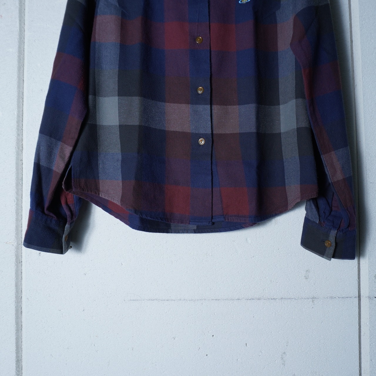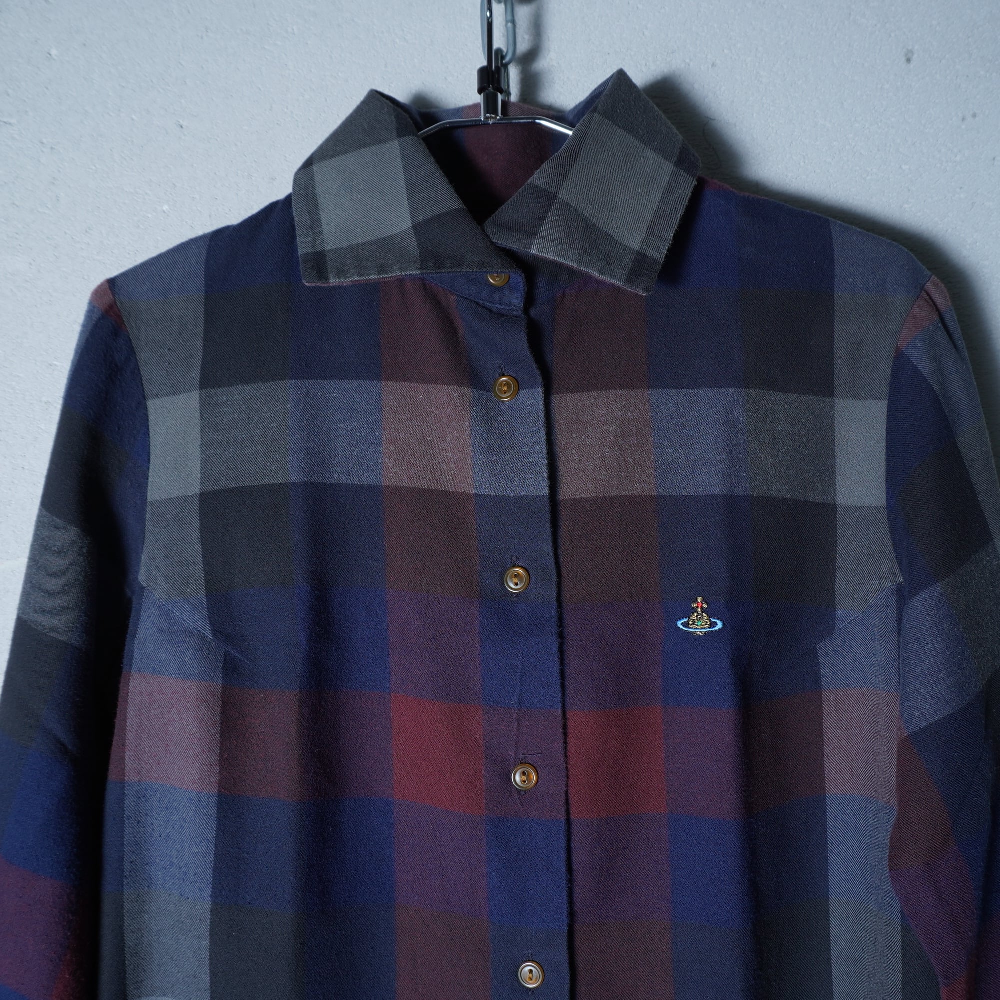 【Vivienne Westwood】ヴィヴィアンウエストウッド ”オーブロゴ刺繍” ブロックチェックボタンダウンシャツ navy&brown&black