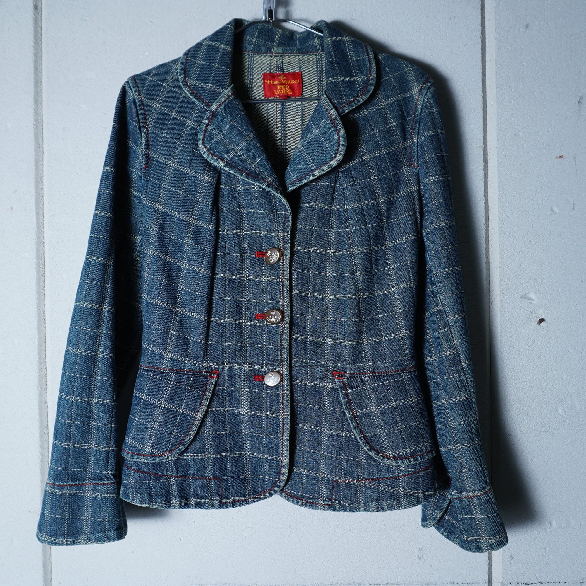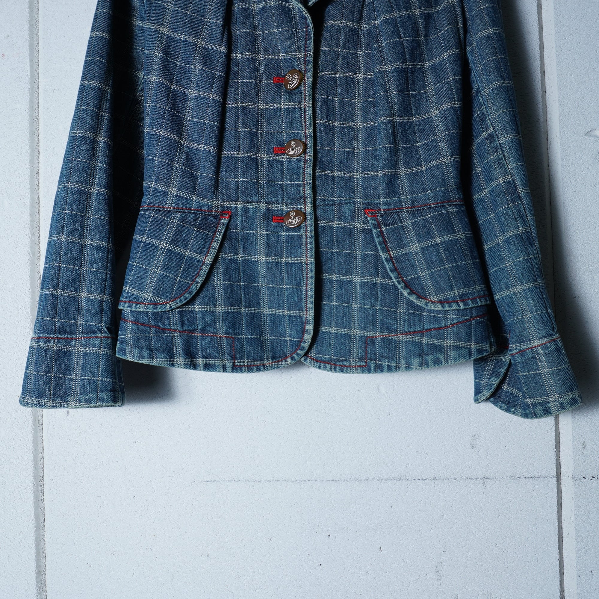 【Vivienne Westwood】ヴィヴィアンウエストウッド ”オーブロゴボタン” チェックデニムジャケット indigo