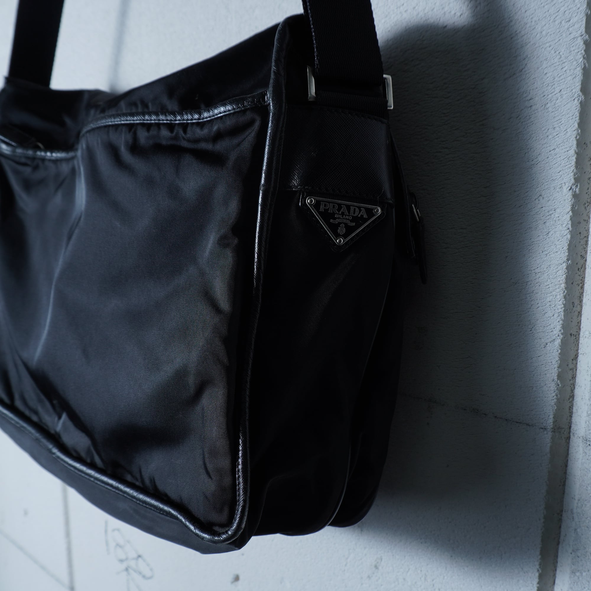 【PRADA】プラダ ”ロゴ金具” レザー切替高密度ナイロンショルダーバッグ black