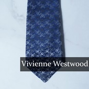 【Vivienne Westwood】ヴィヴィアンウエストウッド オーブロゴ 総柄 SILK100%スリムネクタイnavy