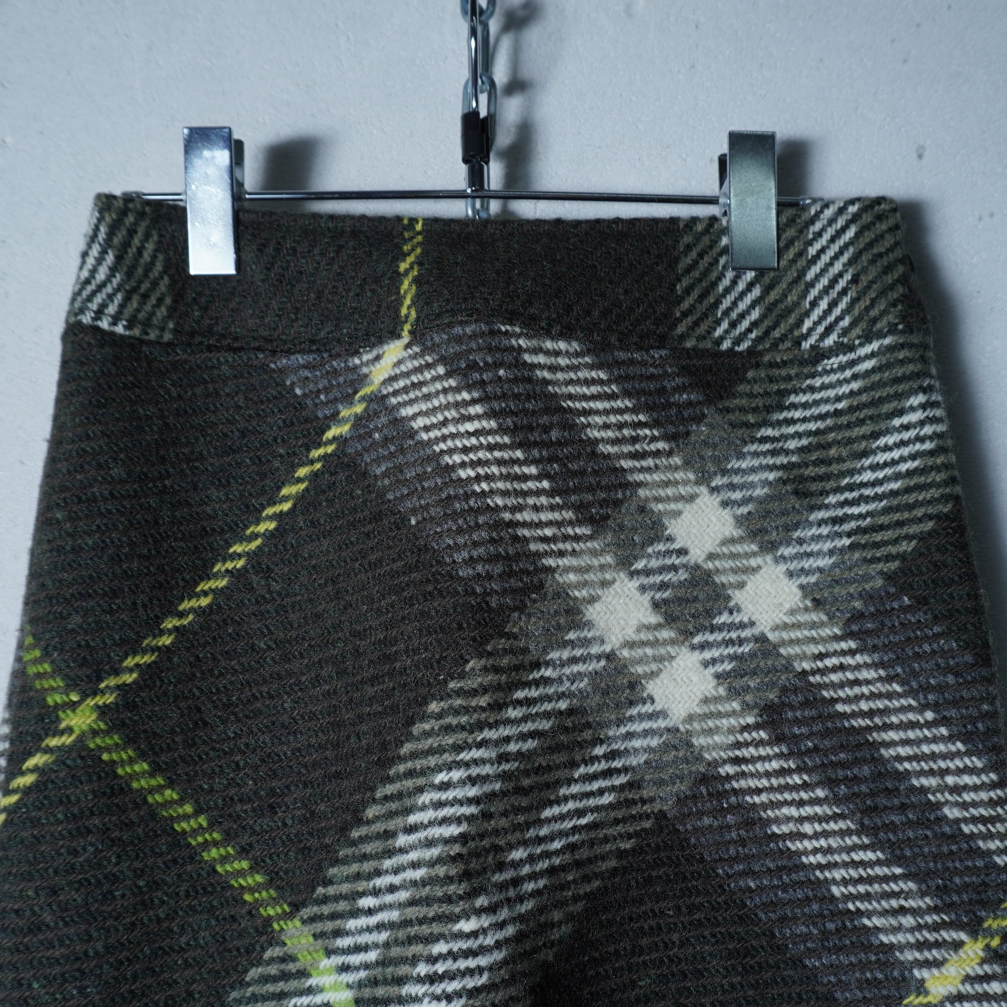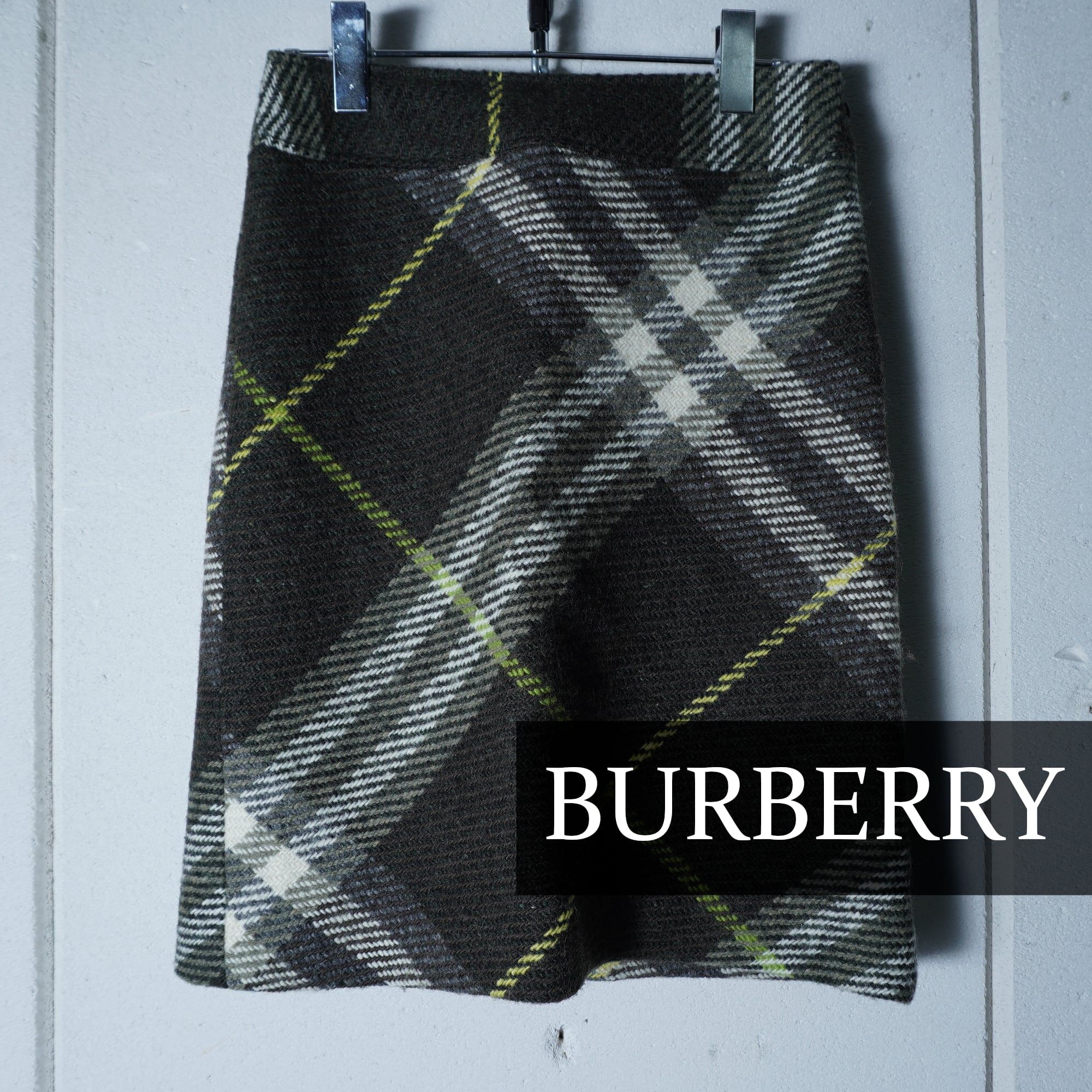 【BURBERRY】バーバリー ”WOOL100%” チェックスカート khaki&yellow&white