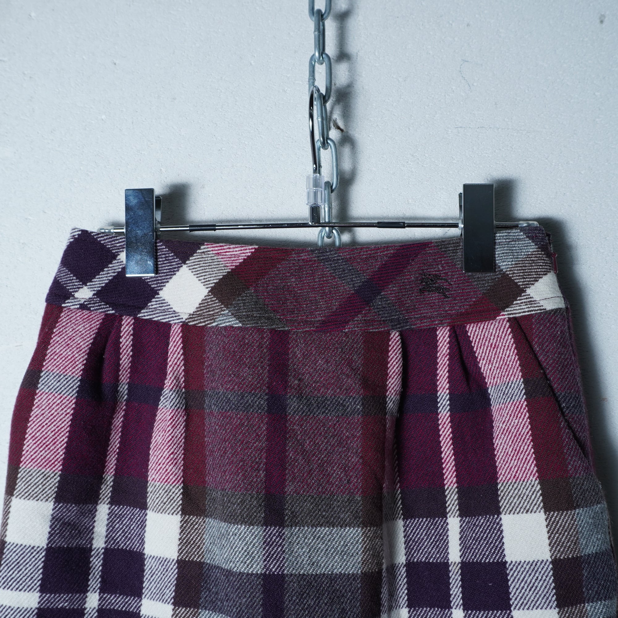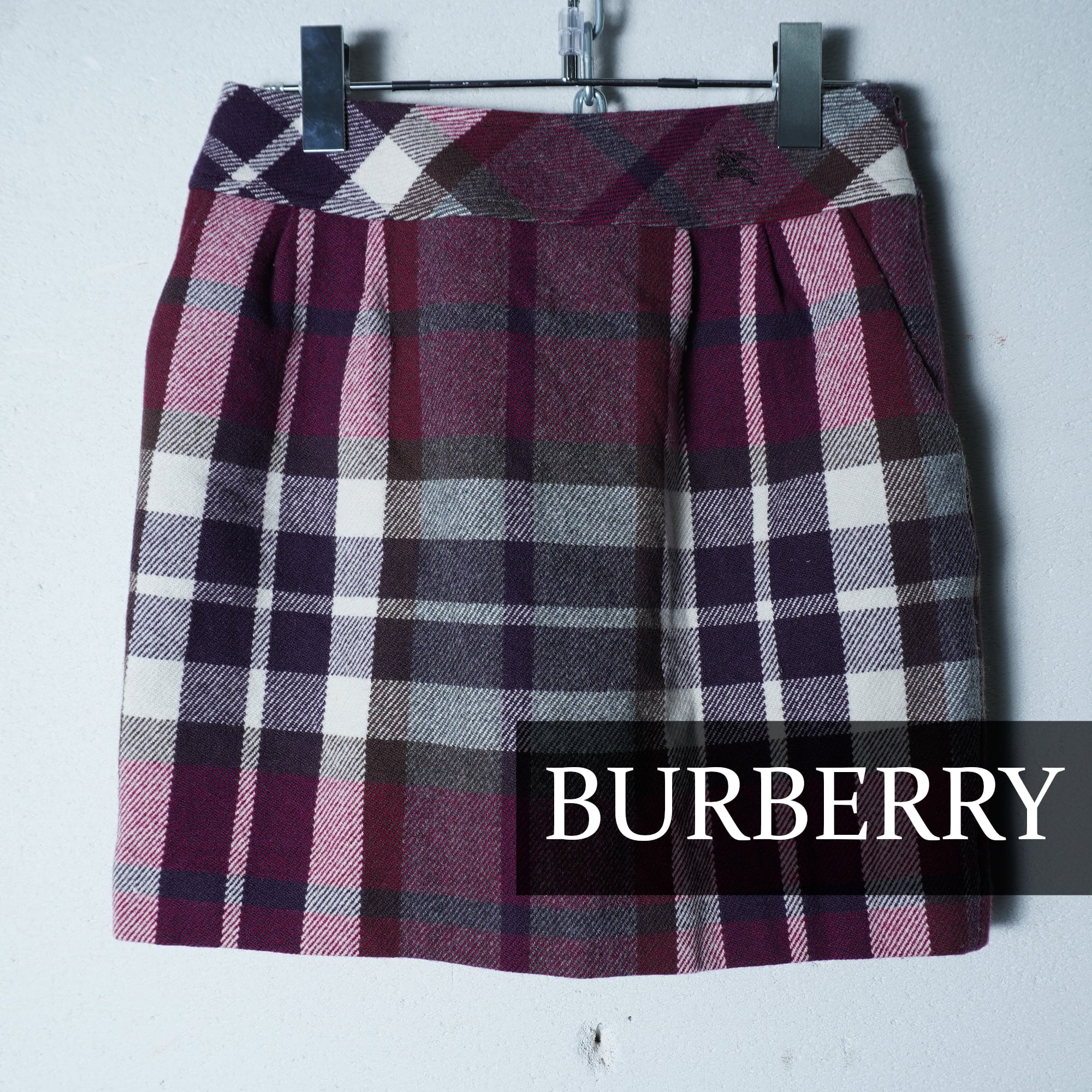 【BURBERRY】バーバリー "ホースロゴ刺繍” ウールチェックスカート red&white&brown