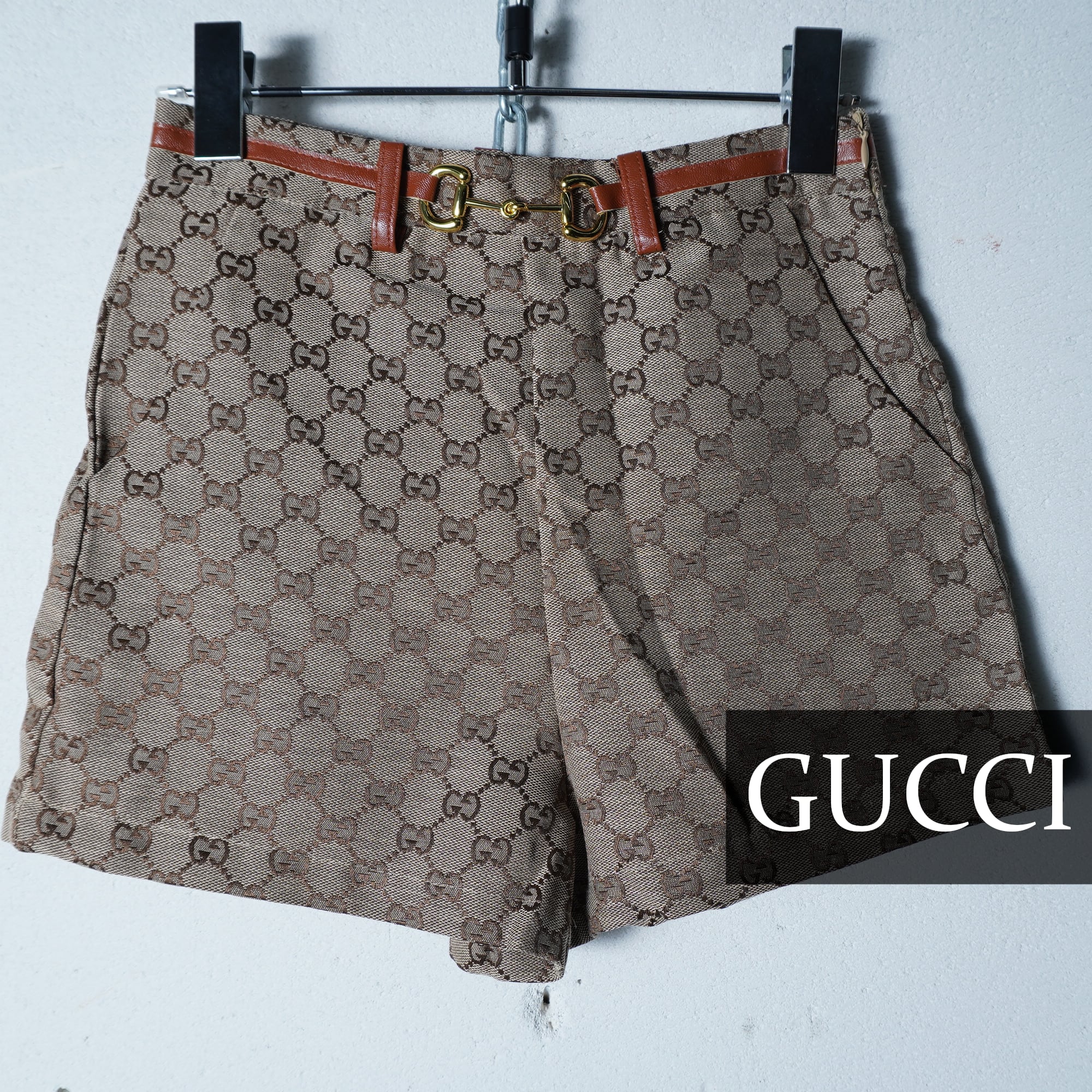 【GUCCI】グッチ ”GGロゴ柄” ホースビットバックルショートパンツ beige