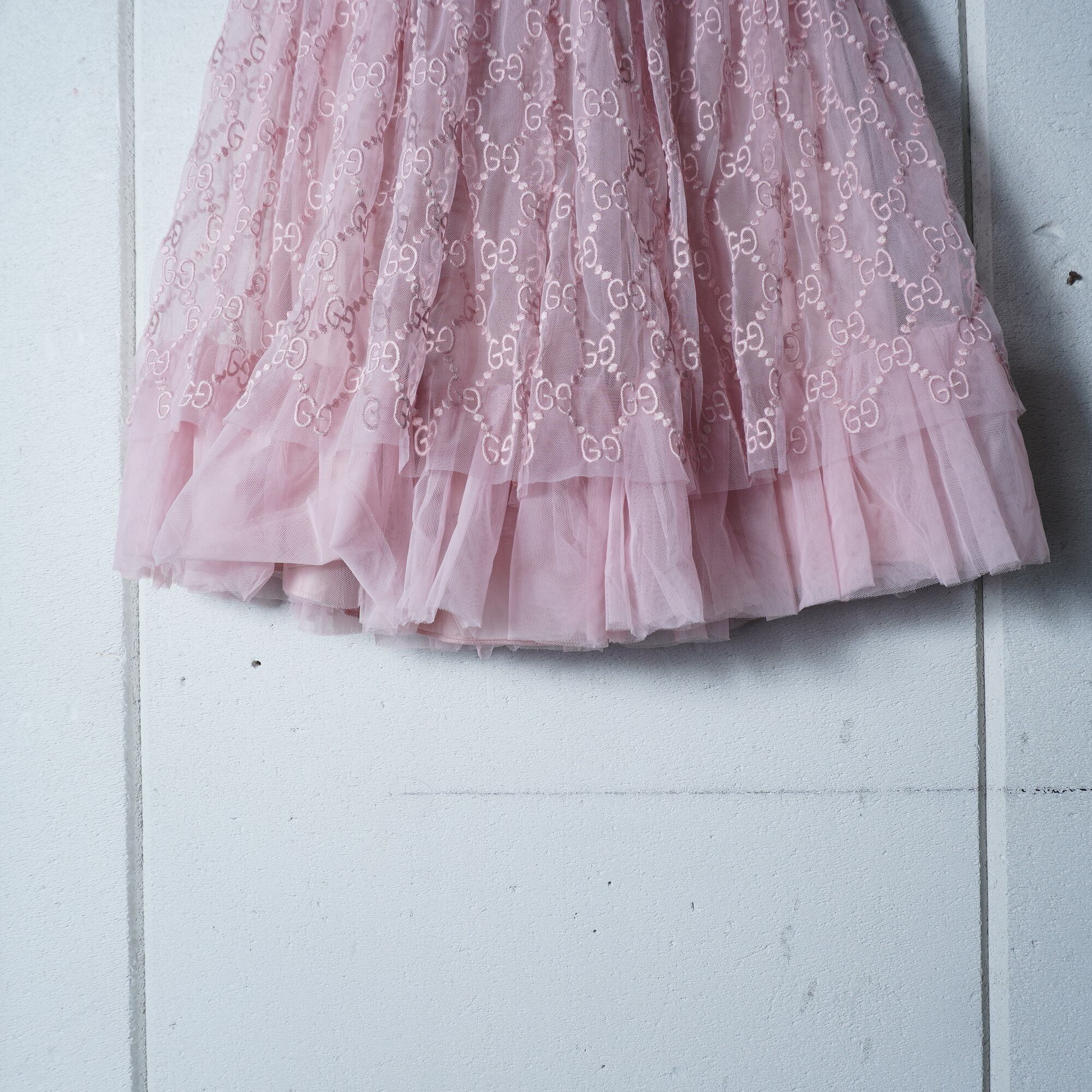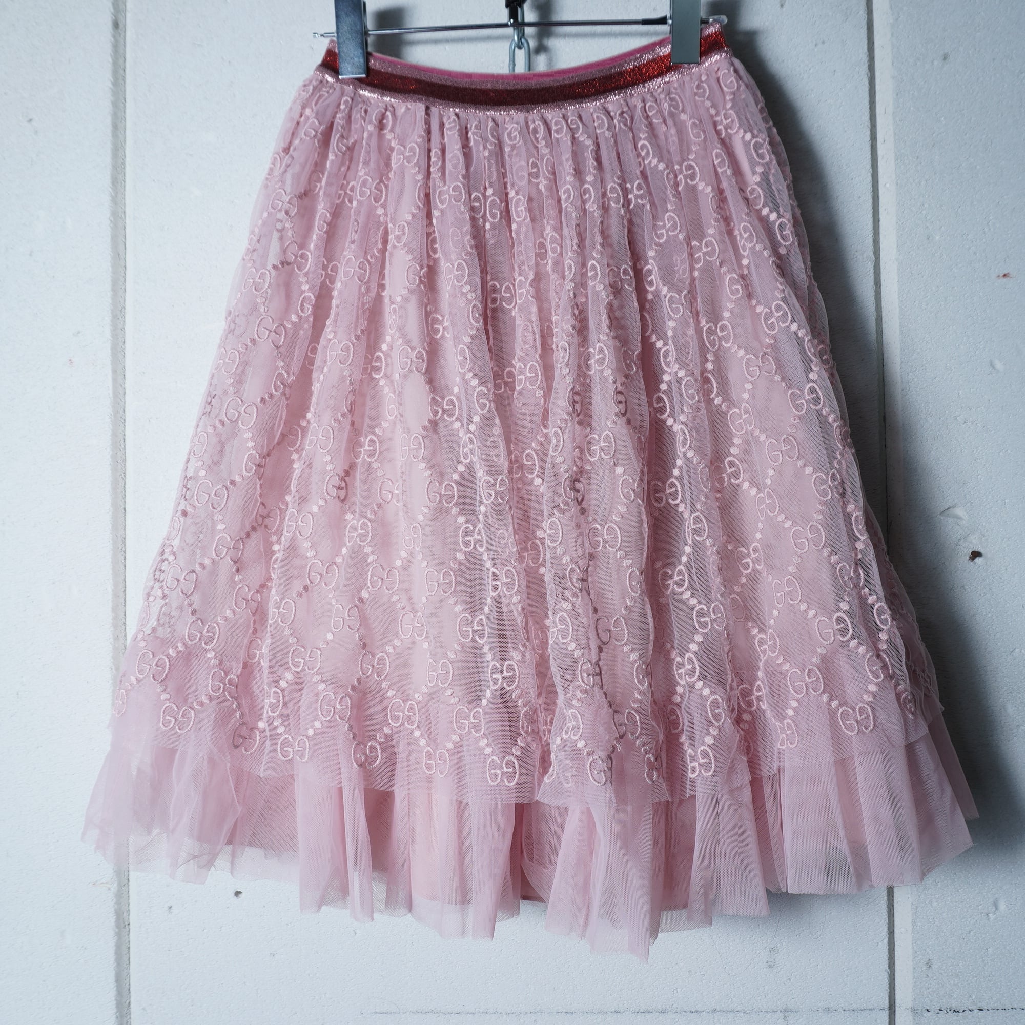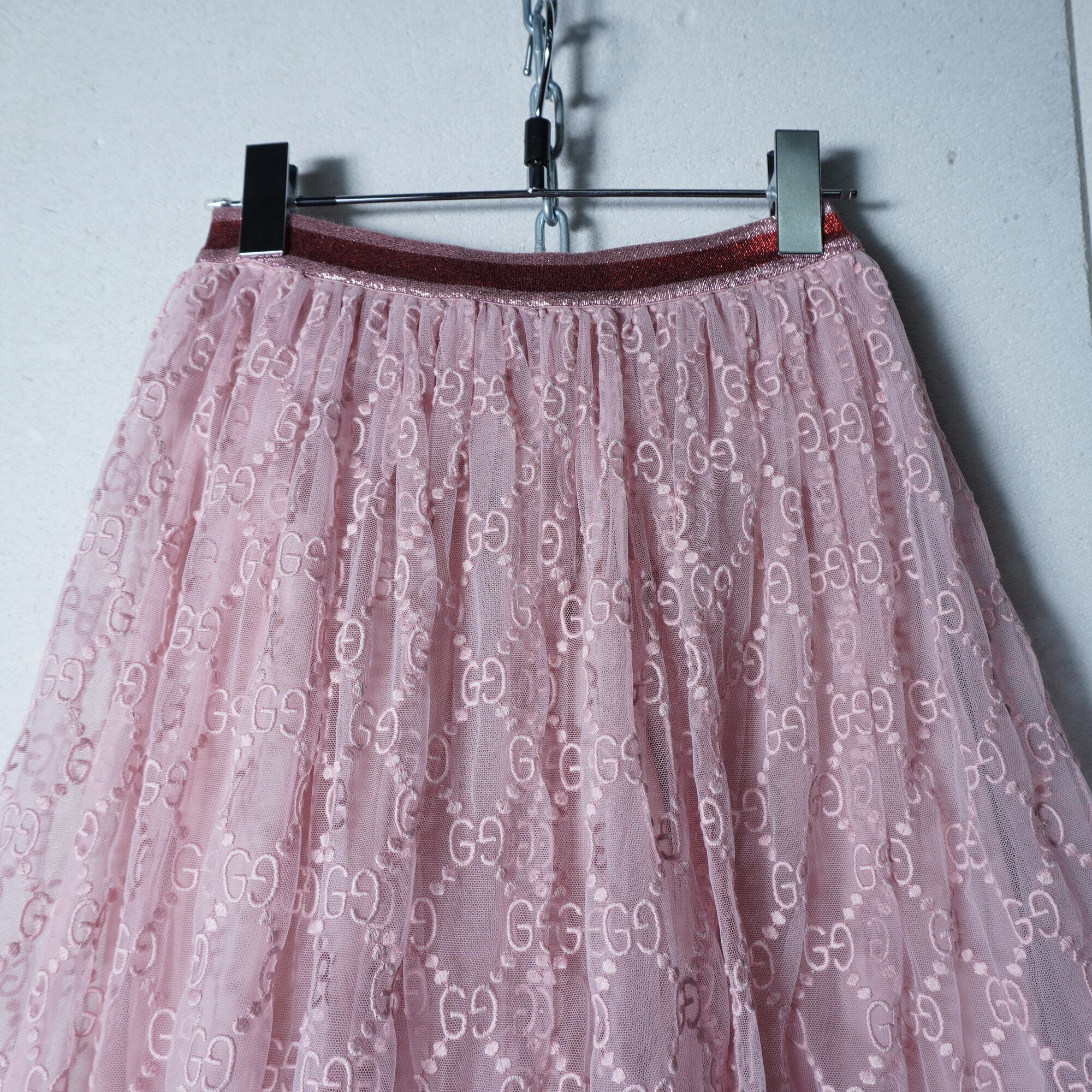 【GUCCI】グッチ "GG総柄”エンブロイダリ―チュールスカート pink