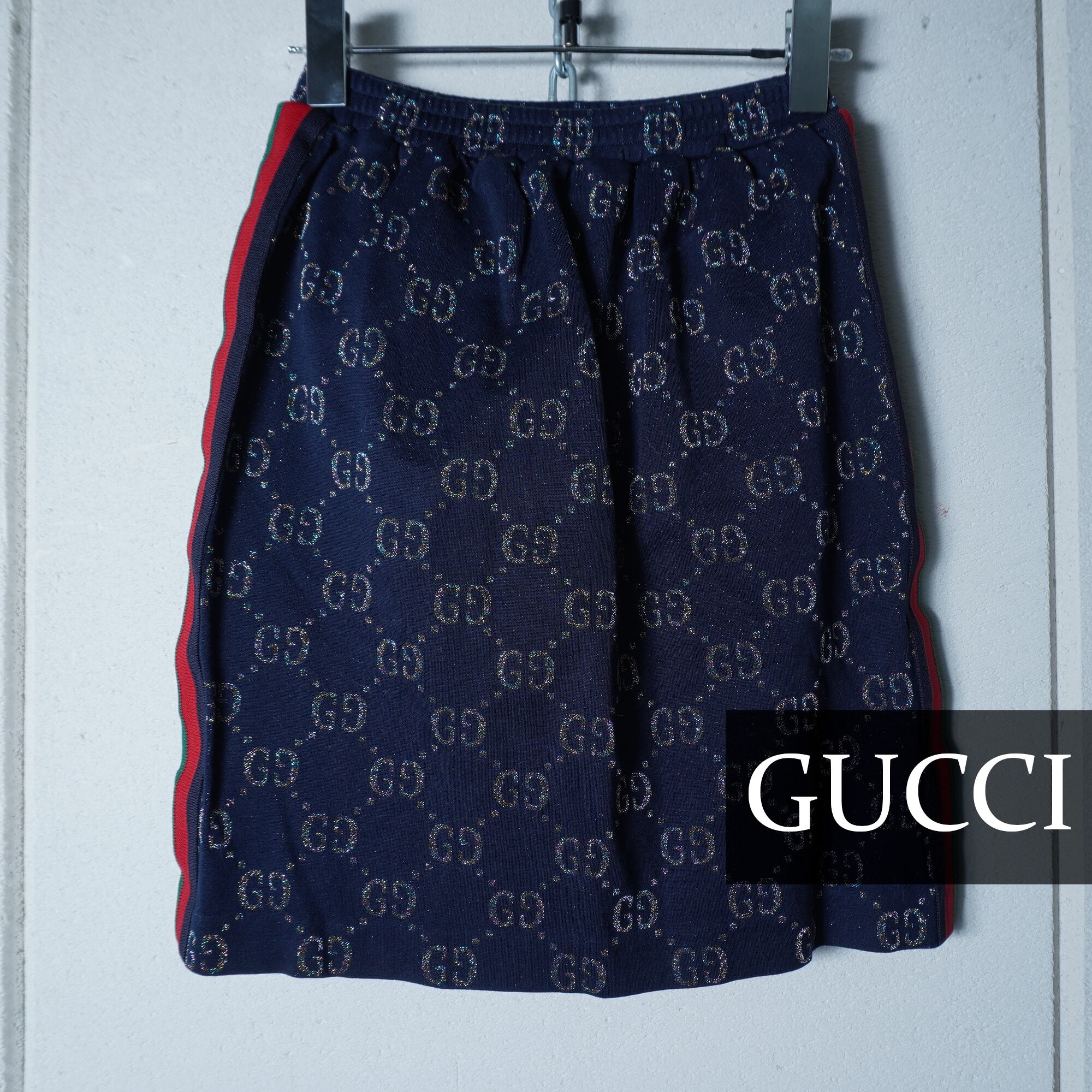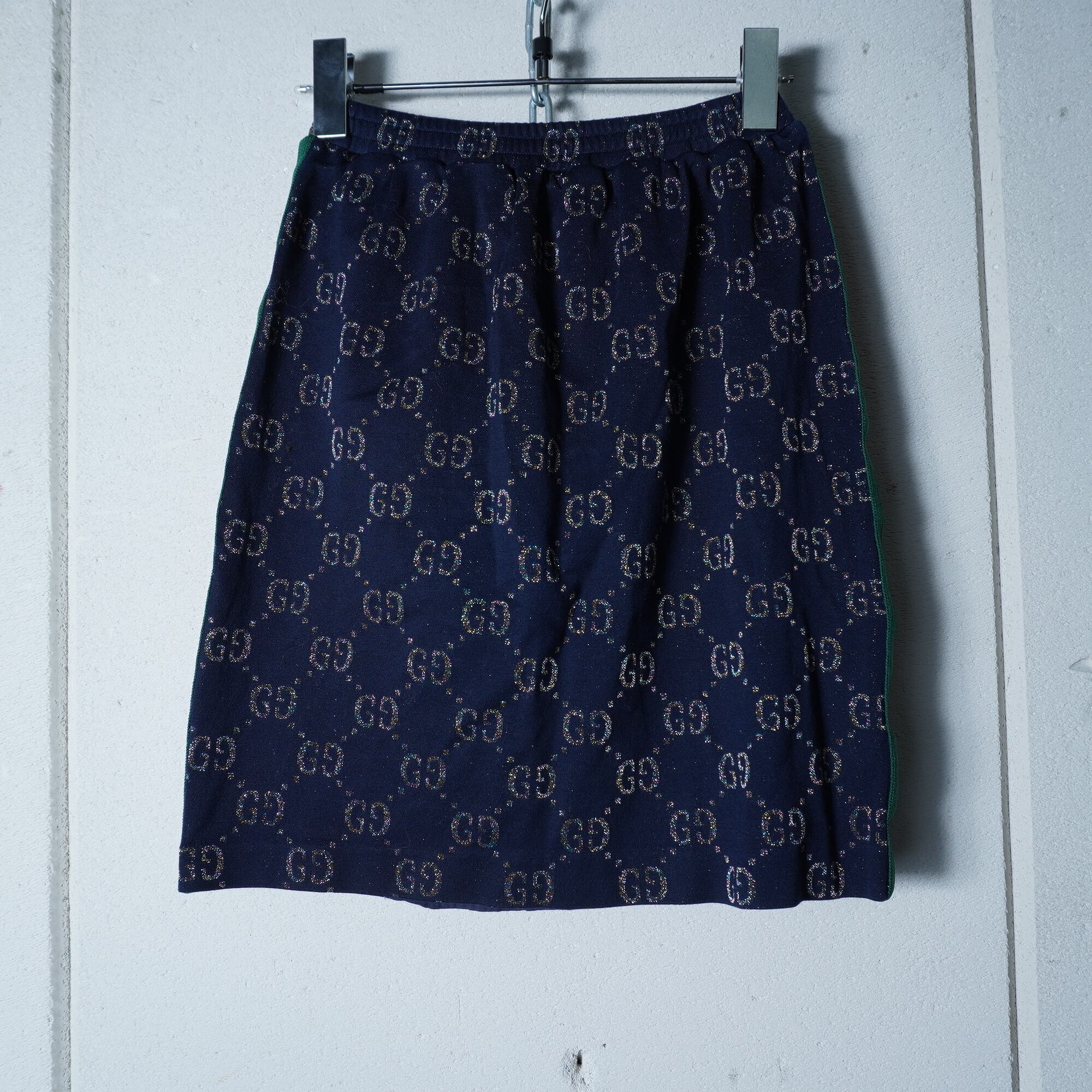 【GUCCI】グッチ "GG柄”ラメ入シェリーラインスカート navy