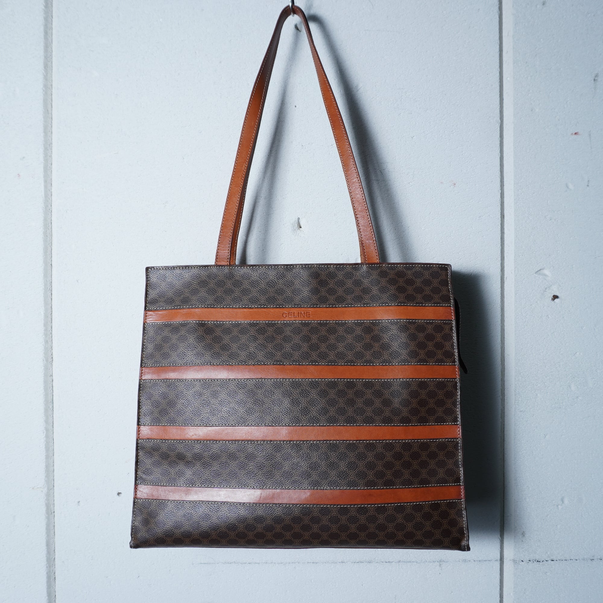 【CELINE】セリーヌ マカダム柄レザーライントートバッグ brown