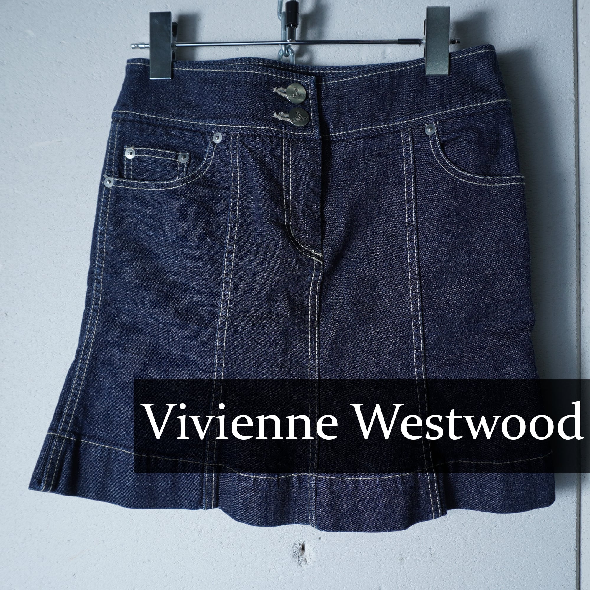 【Vivienne Westwood】ヴィヴィアンウエストウッド "オーブロゴボタン・パッチ”デニムタイトスカート