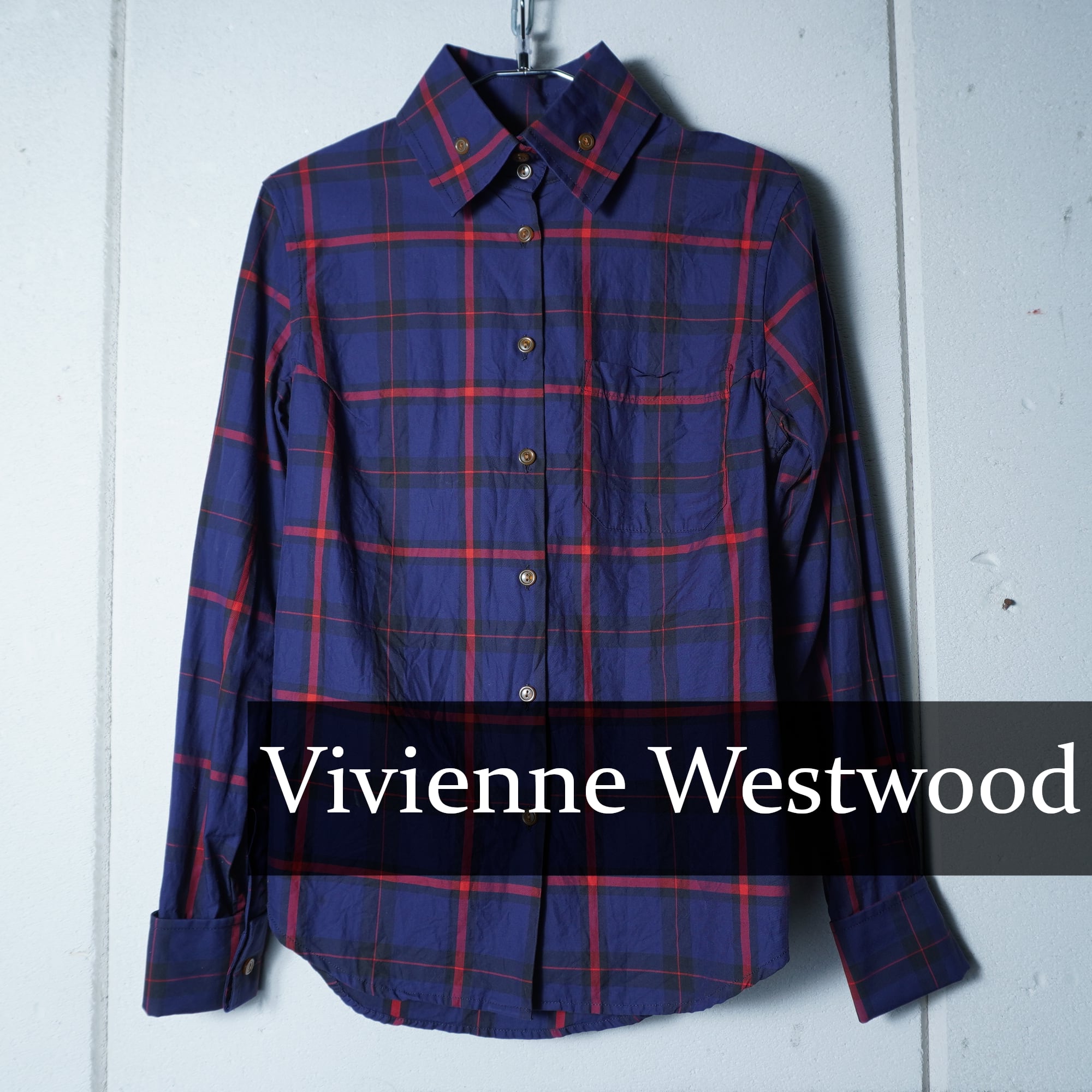 【Vivienne Westwood】ヴィヴィアンウエストウッド チェック柄ボタンダウンシャツ navy&red