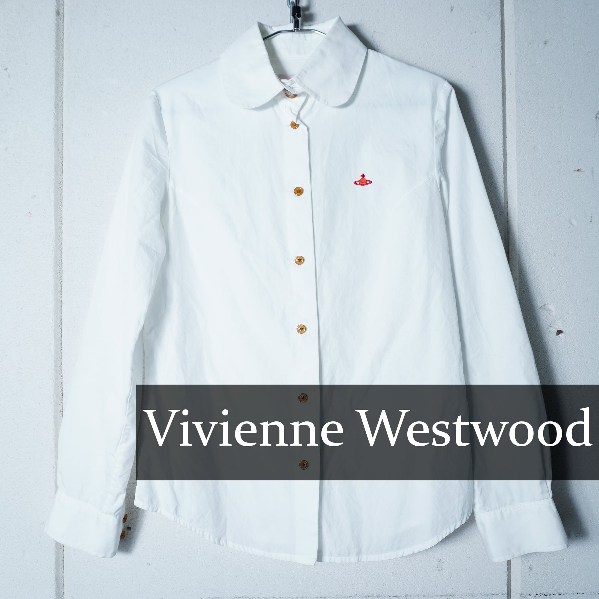 【Vivienne Westwood】ヴィヴィアンウエストウッド ”オーブロゴ刺繡・ボタン”丸襟ボタンダウンシャツ white