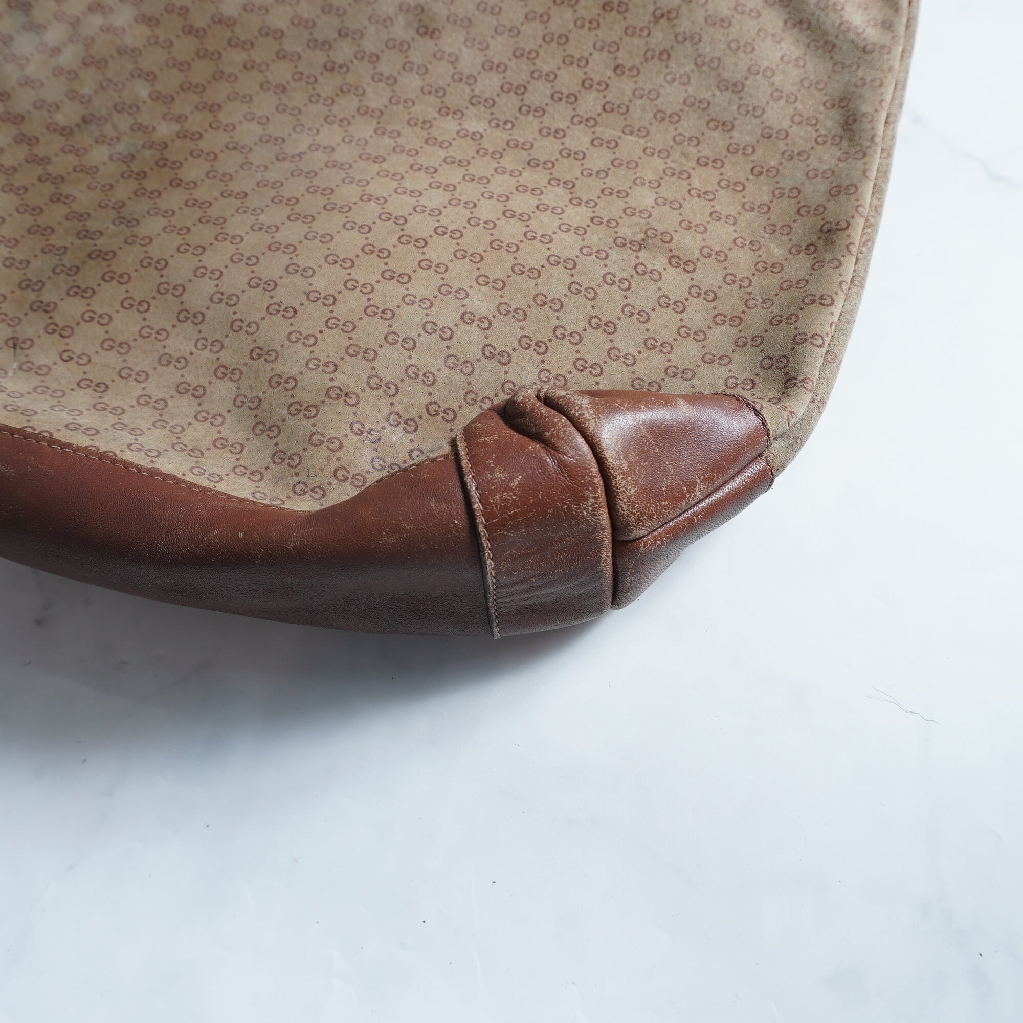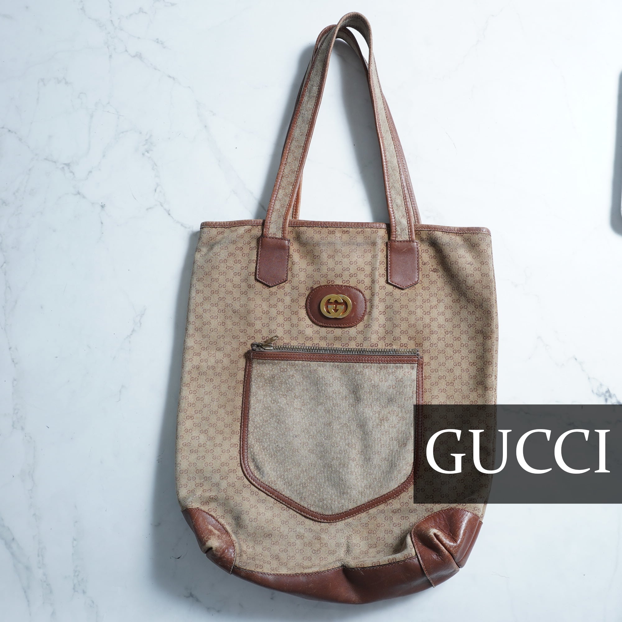 【GUCCI】グッチ"OLD GUCCI" マイクロGG レザートートバッグ ヴィンテージ begie