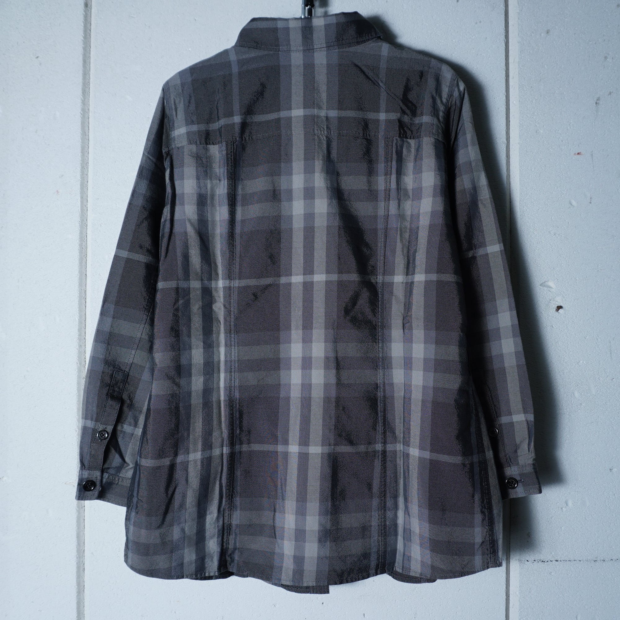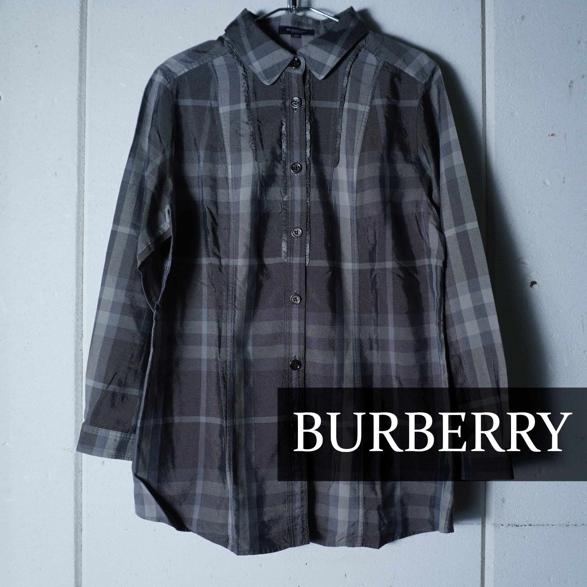 【BURBERRY】バーバリー ロゴメタルボタン フリルチェックシャツ gray
