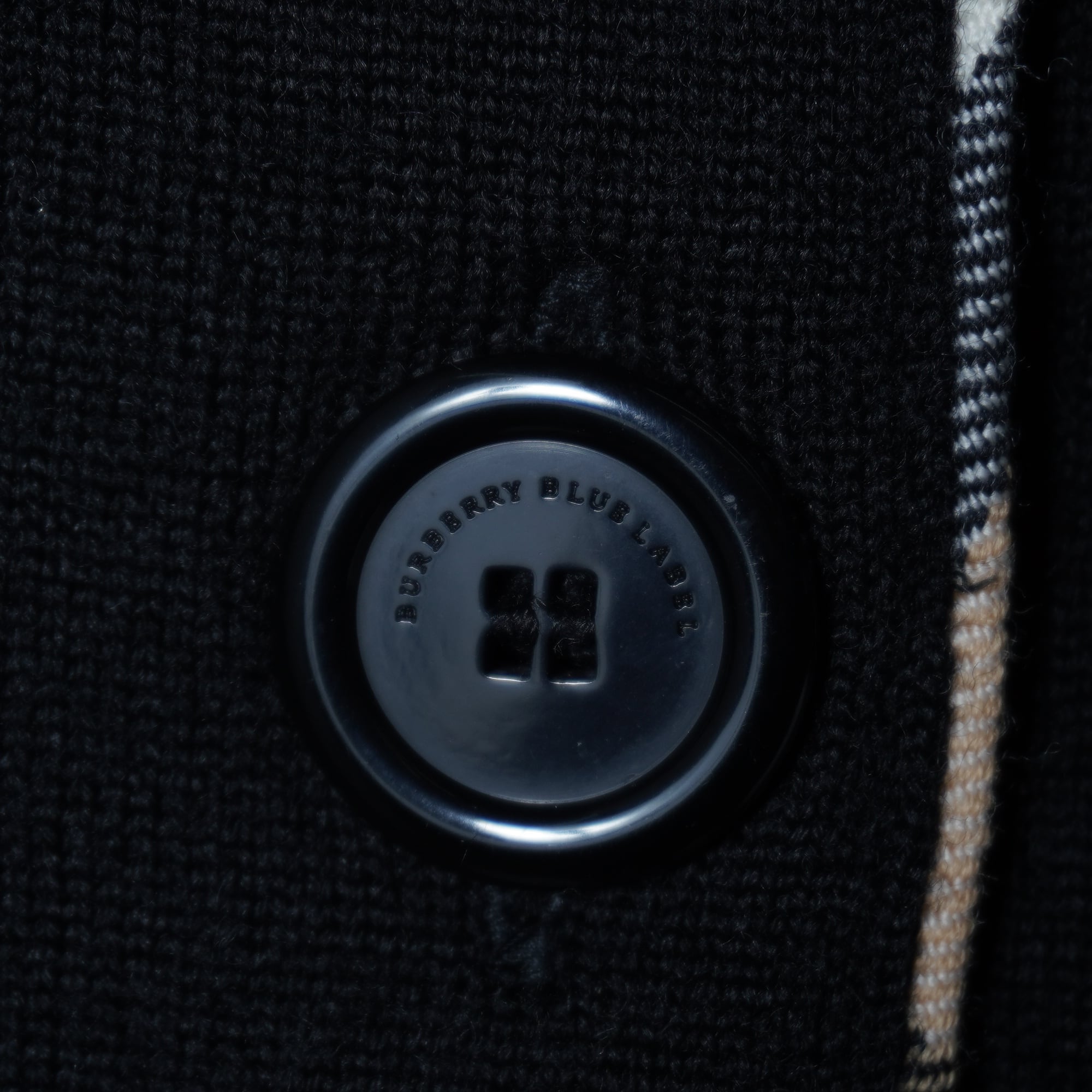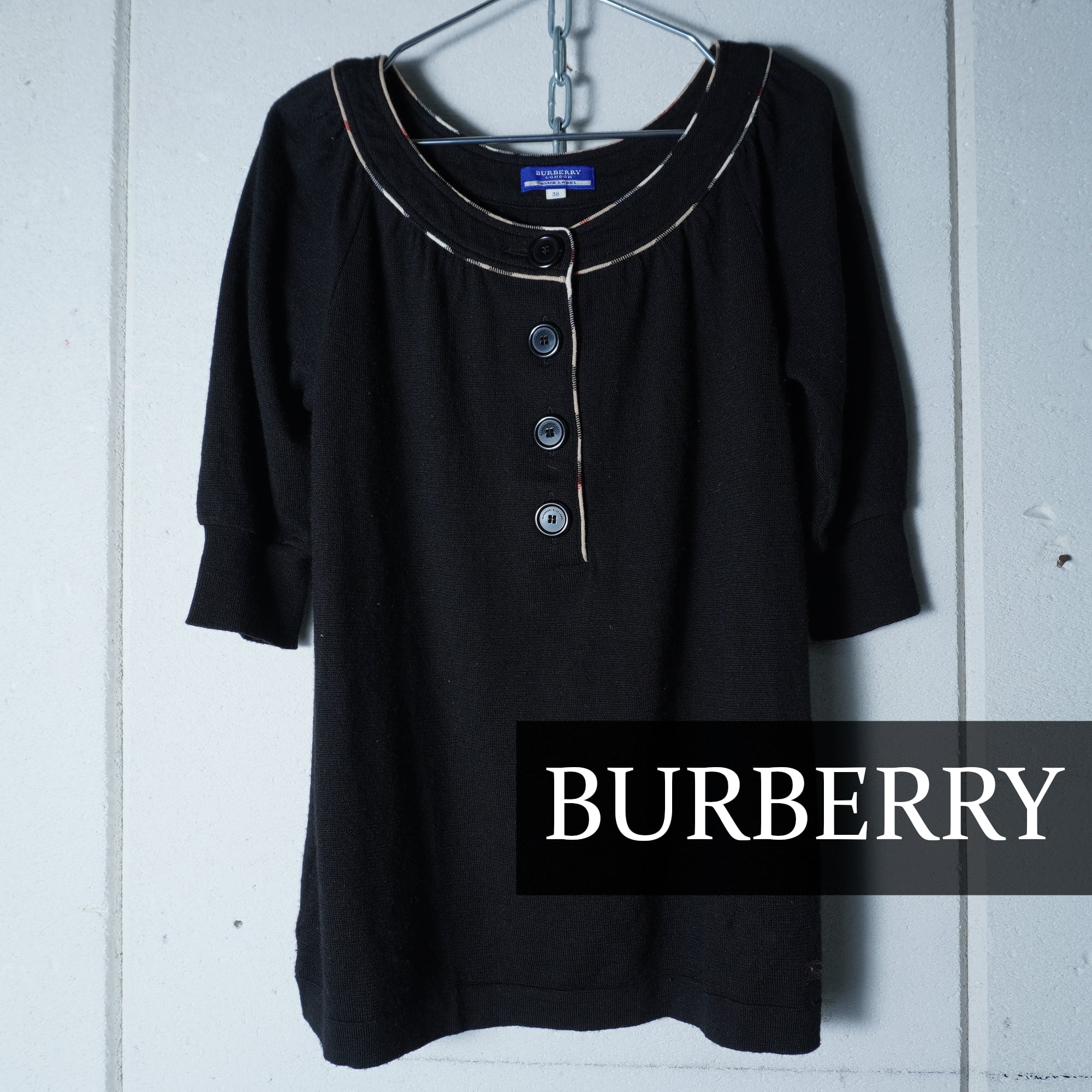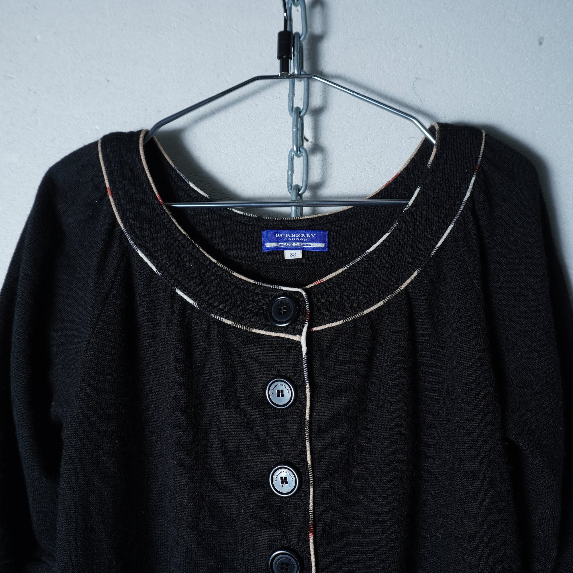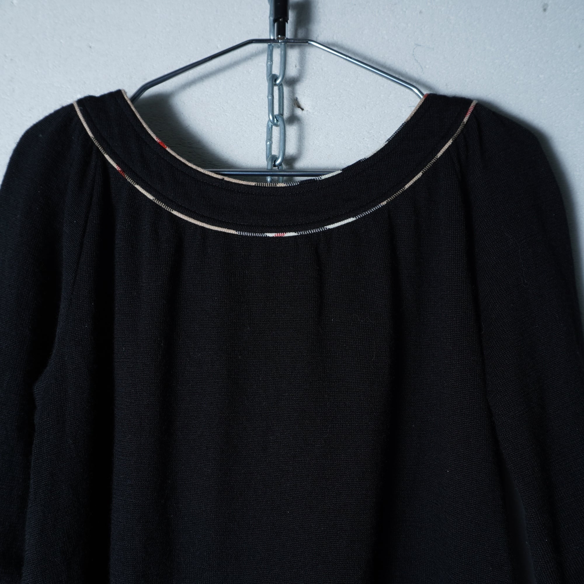【BURBERRY】バーバリー ロゴボタン ノバチェック パイピングウール100%ニット black