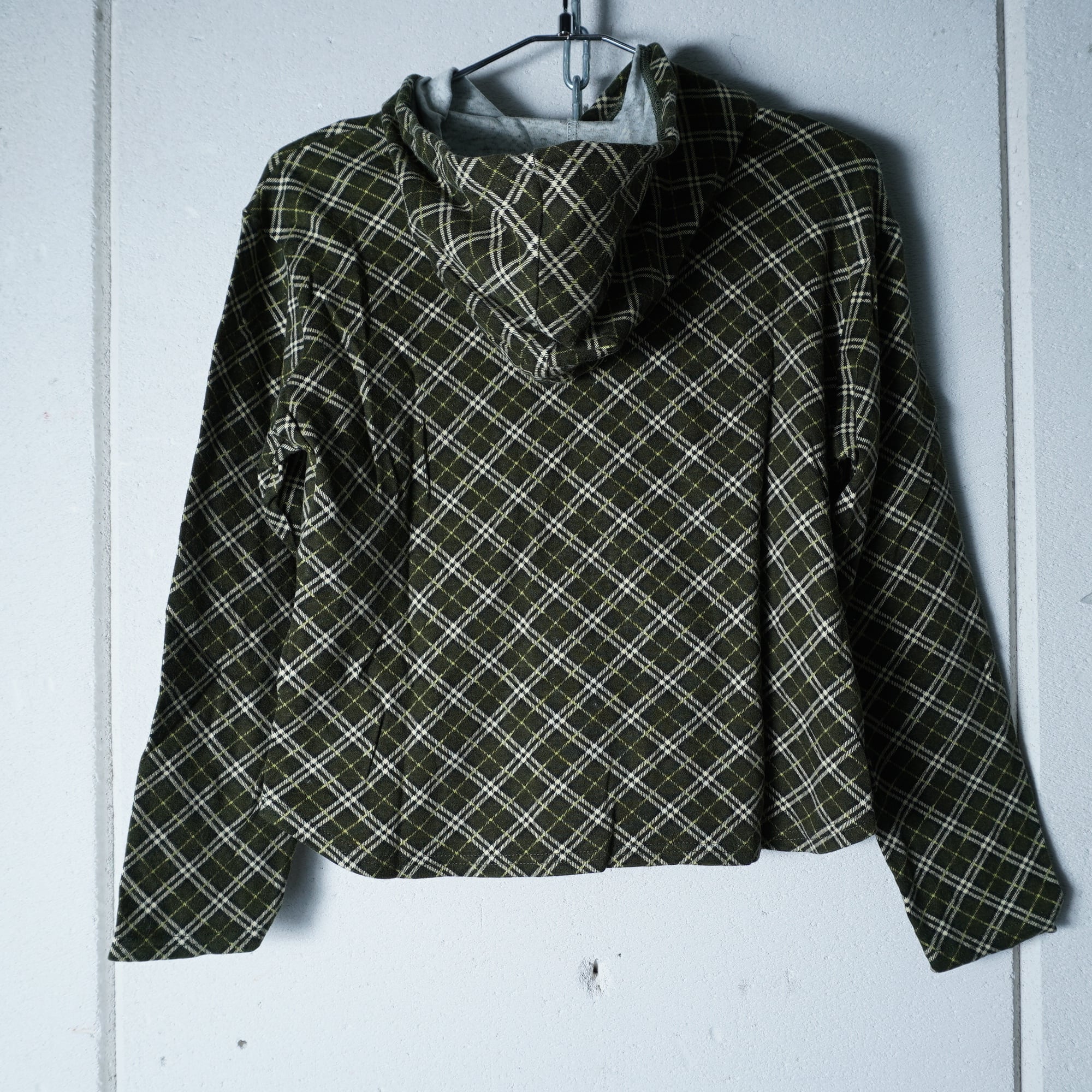 【BURBERRY】バーバリー ホースロゴ刺繡 クロスチェックフーデッドパーカー khaki