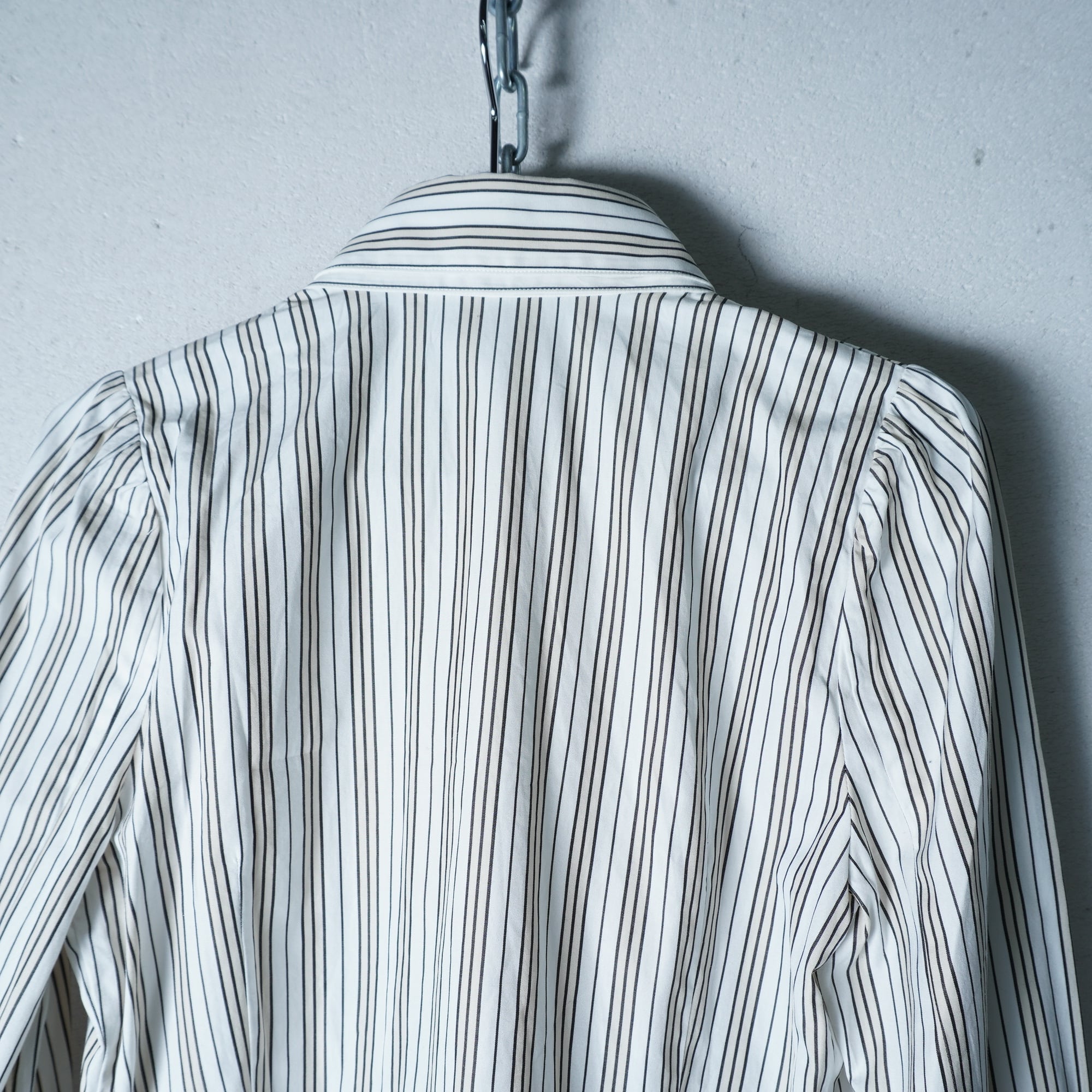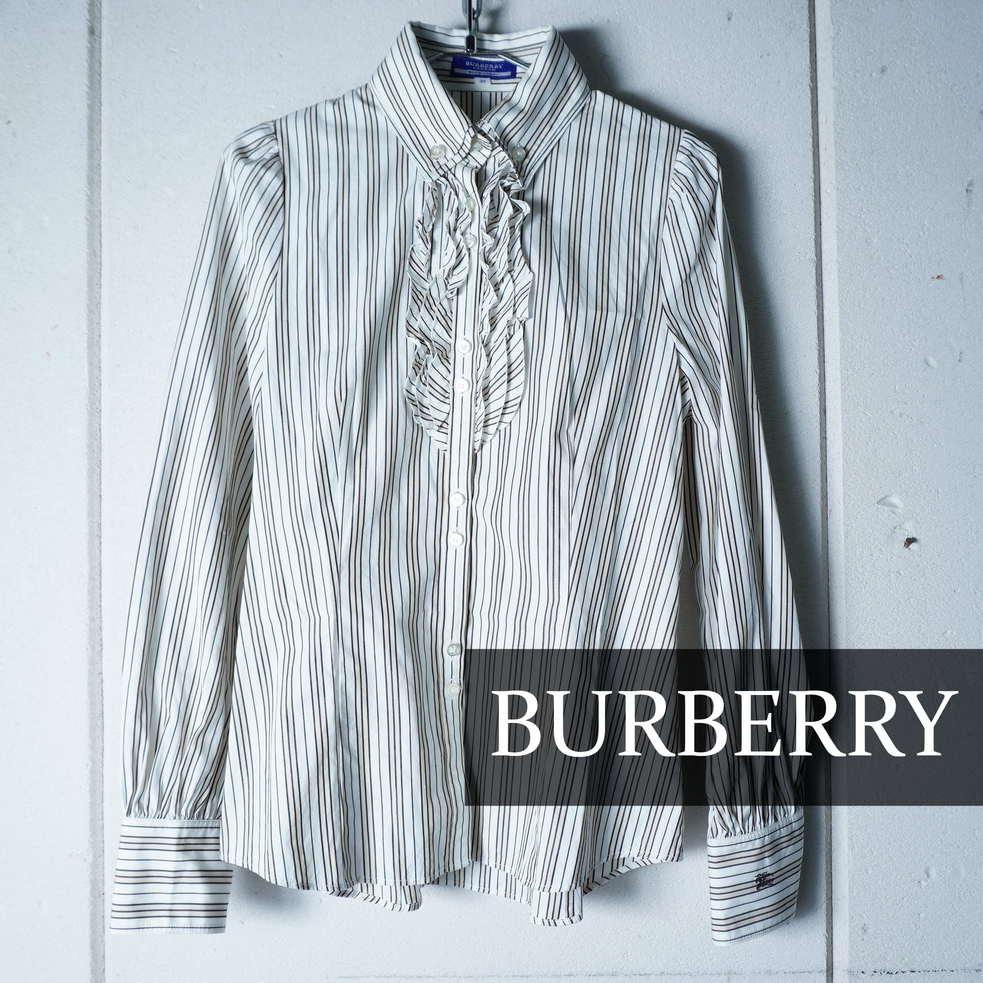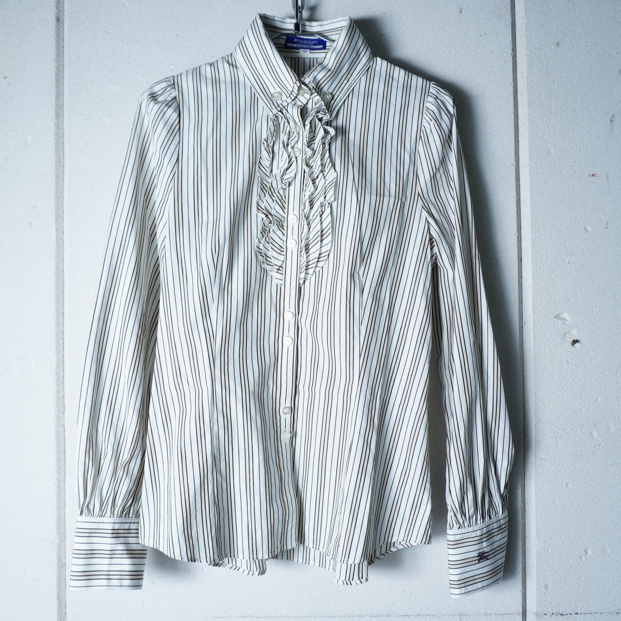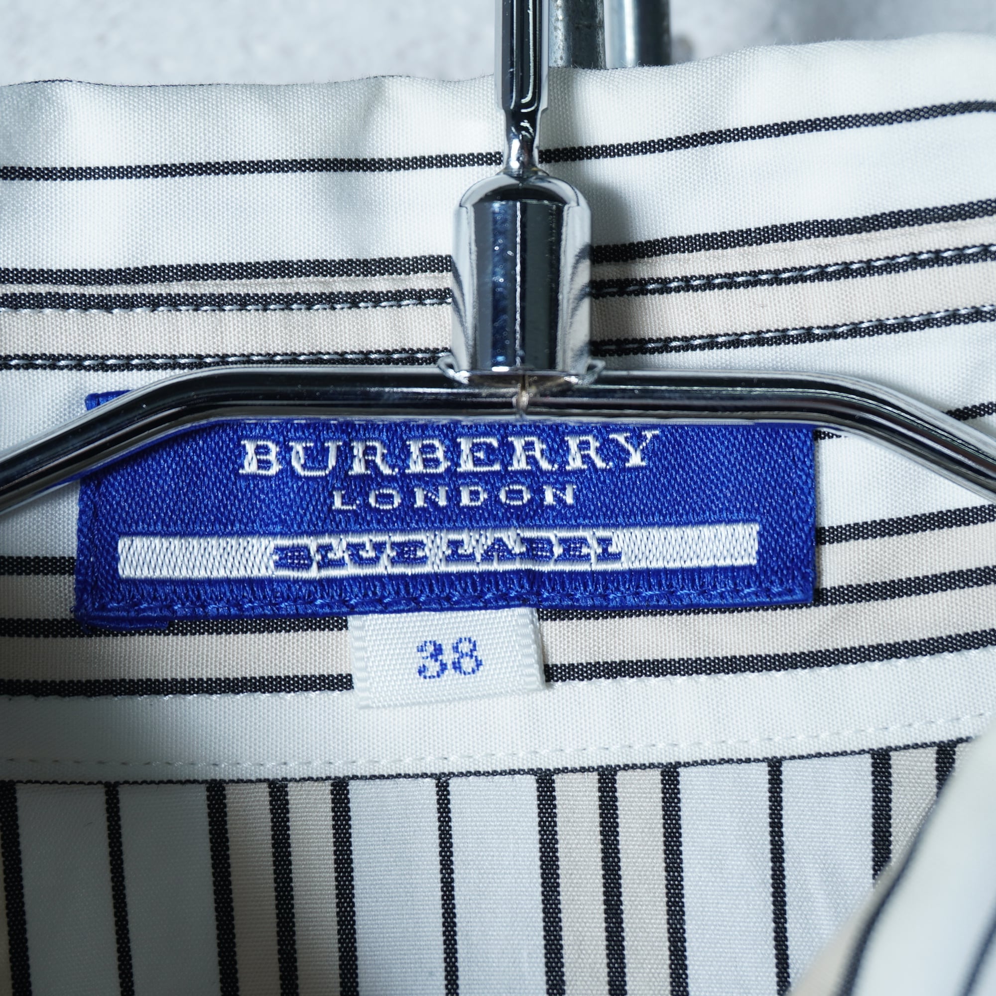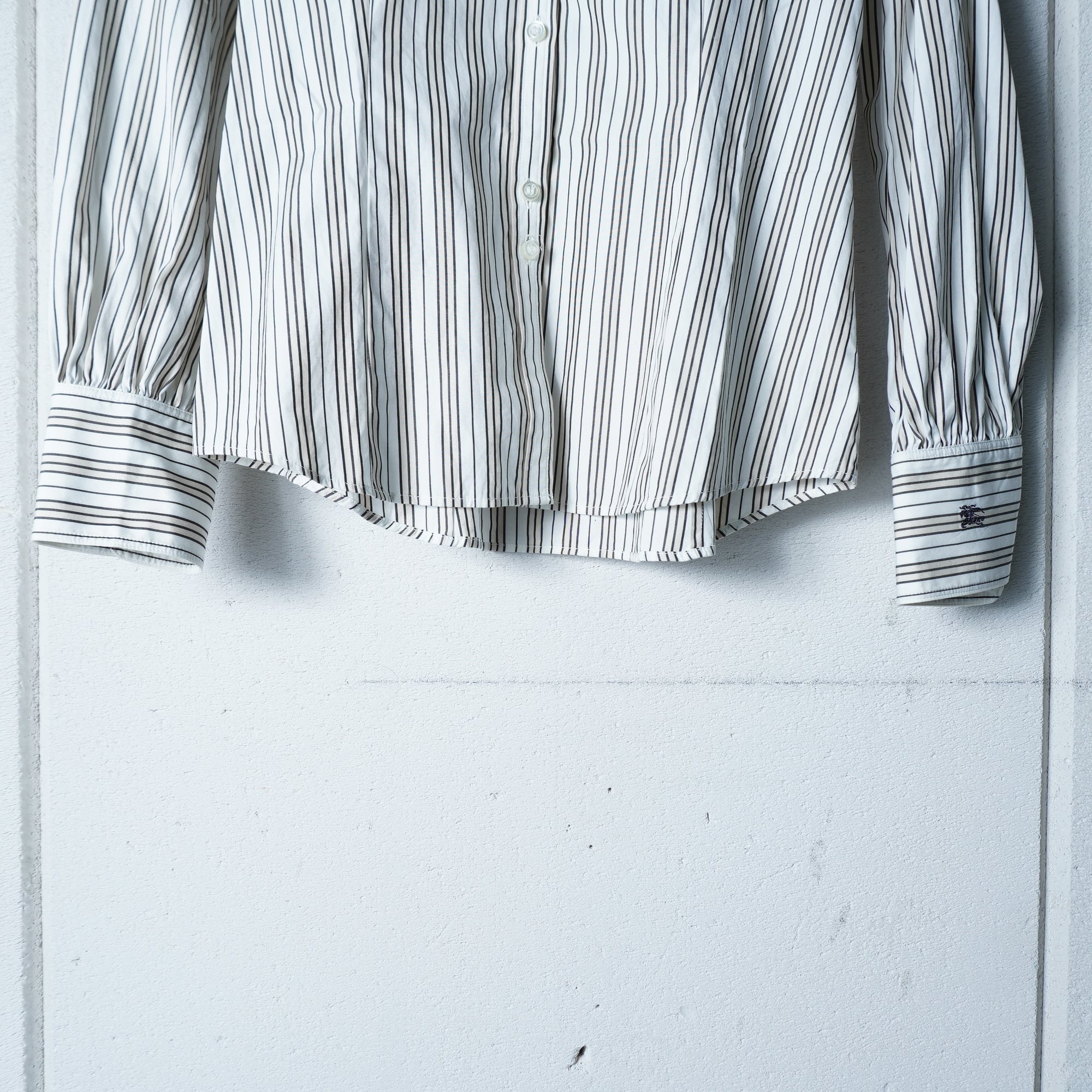 【BURBERRY】バーバリー ”ホースロゴ刺繍” ストライプボタンシャツ white&beige&black