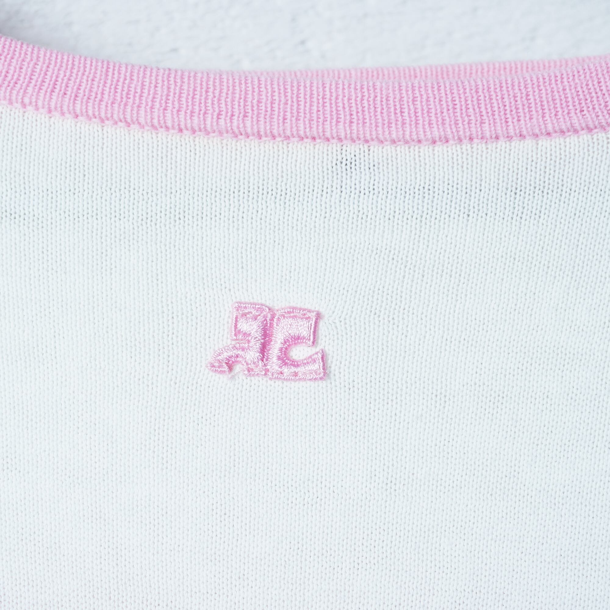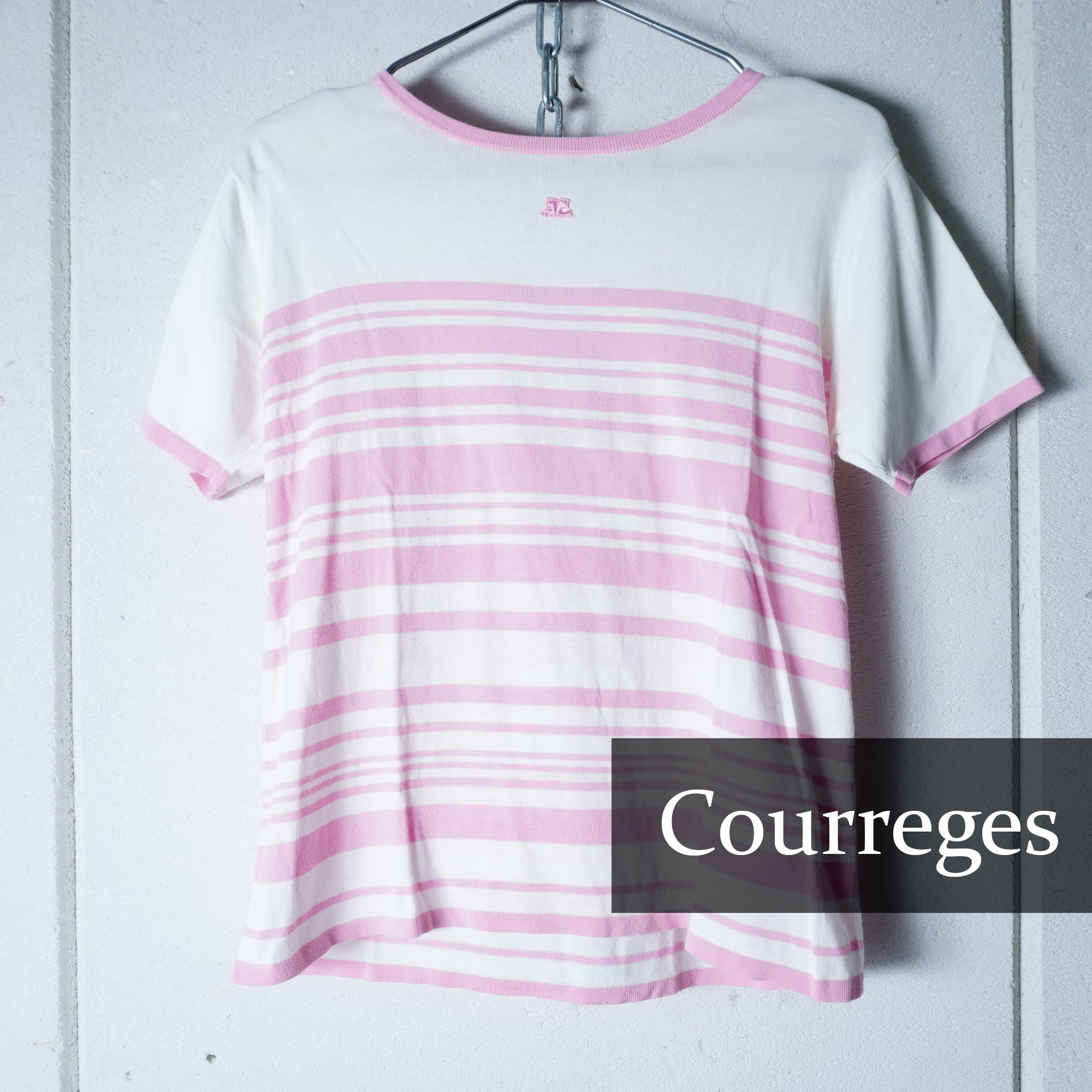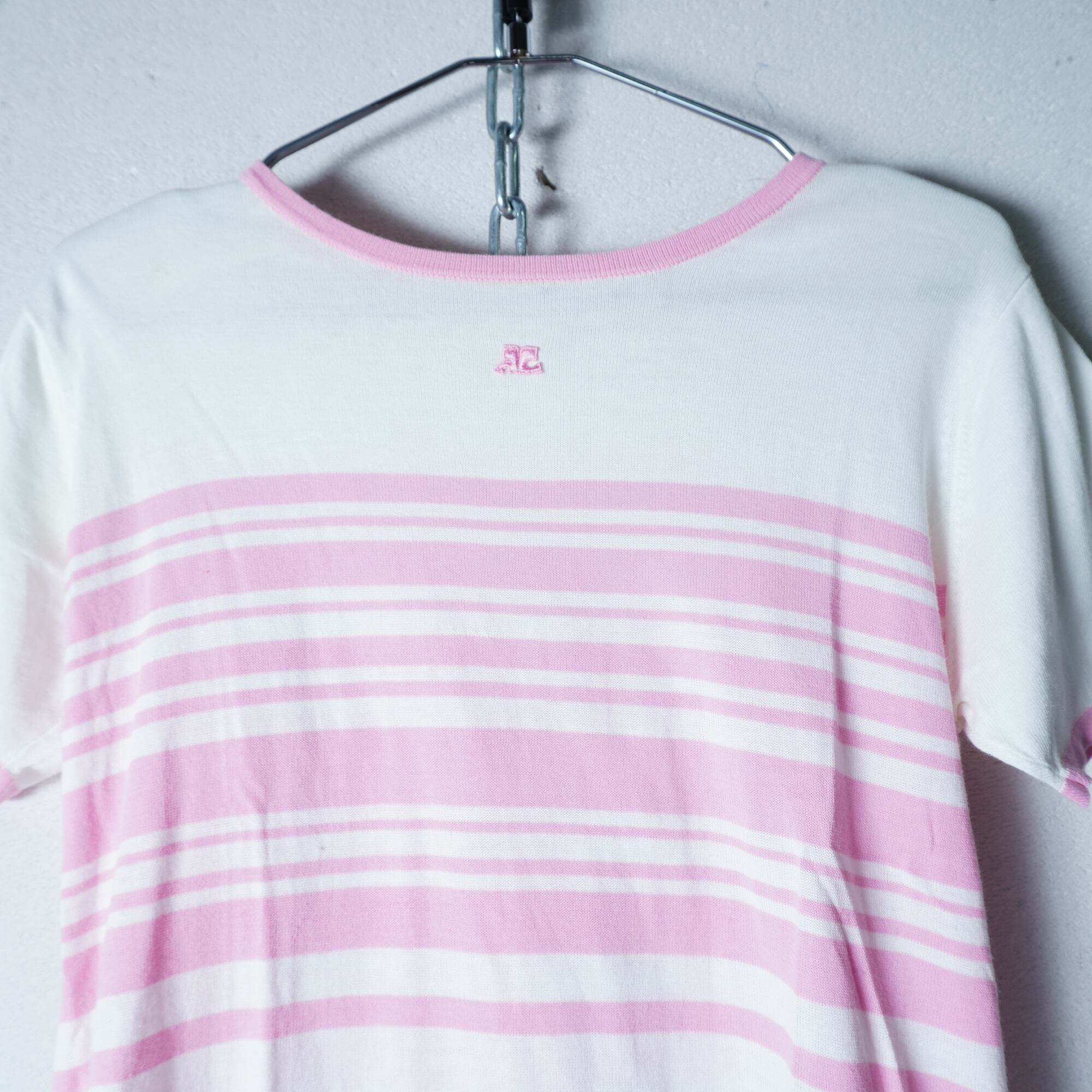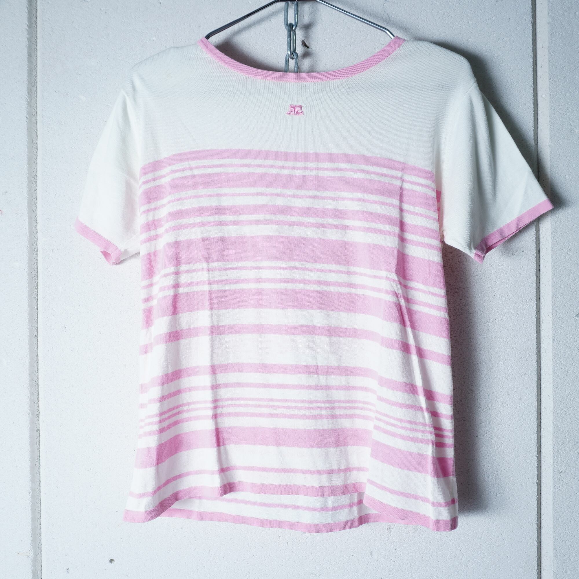 【Courrèges】クレージュ "ロゴ刺繡" ボーダー半袖ニット PINK&WHITE