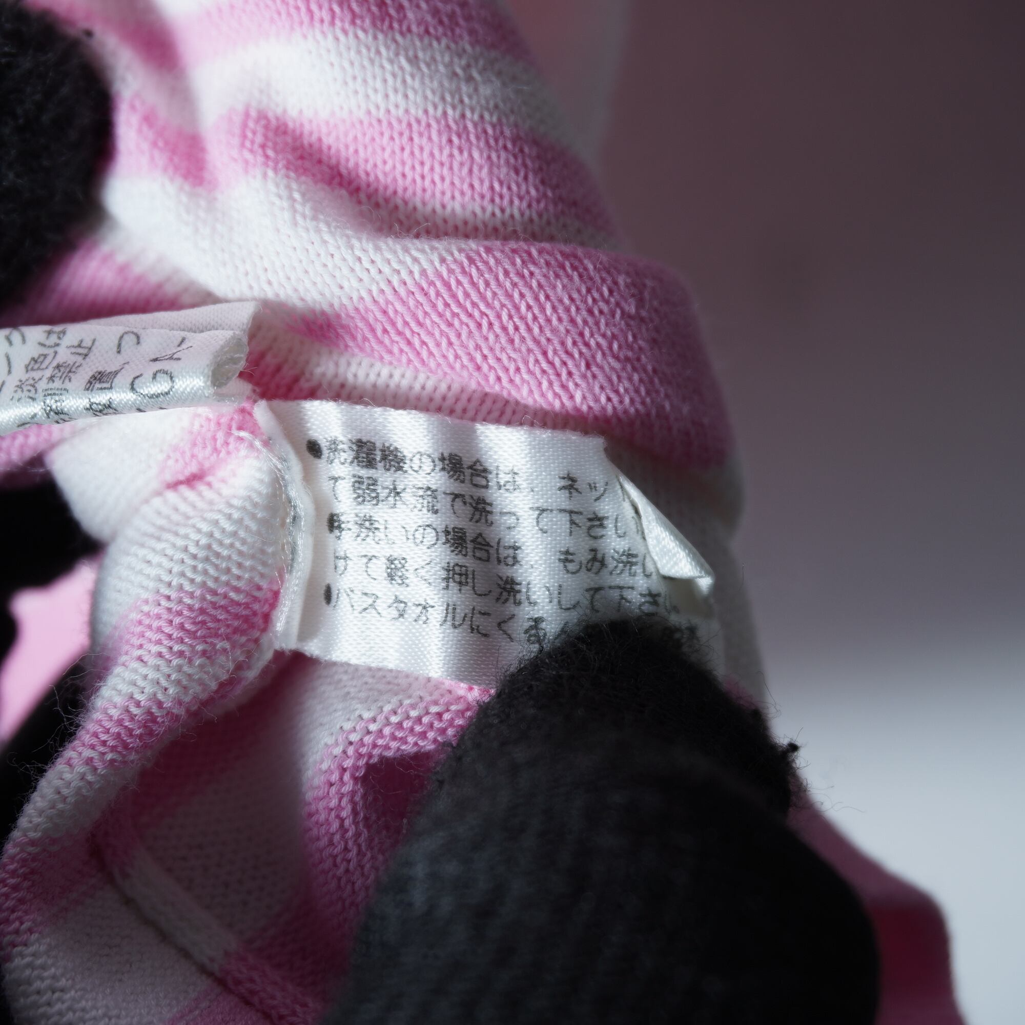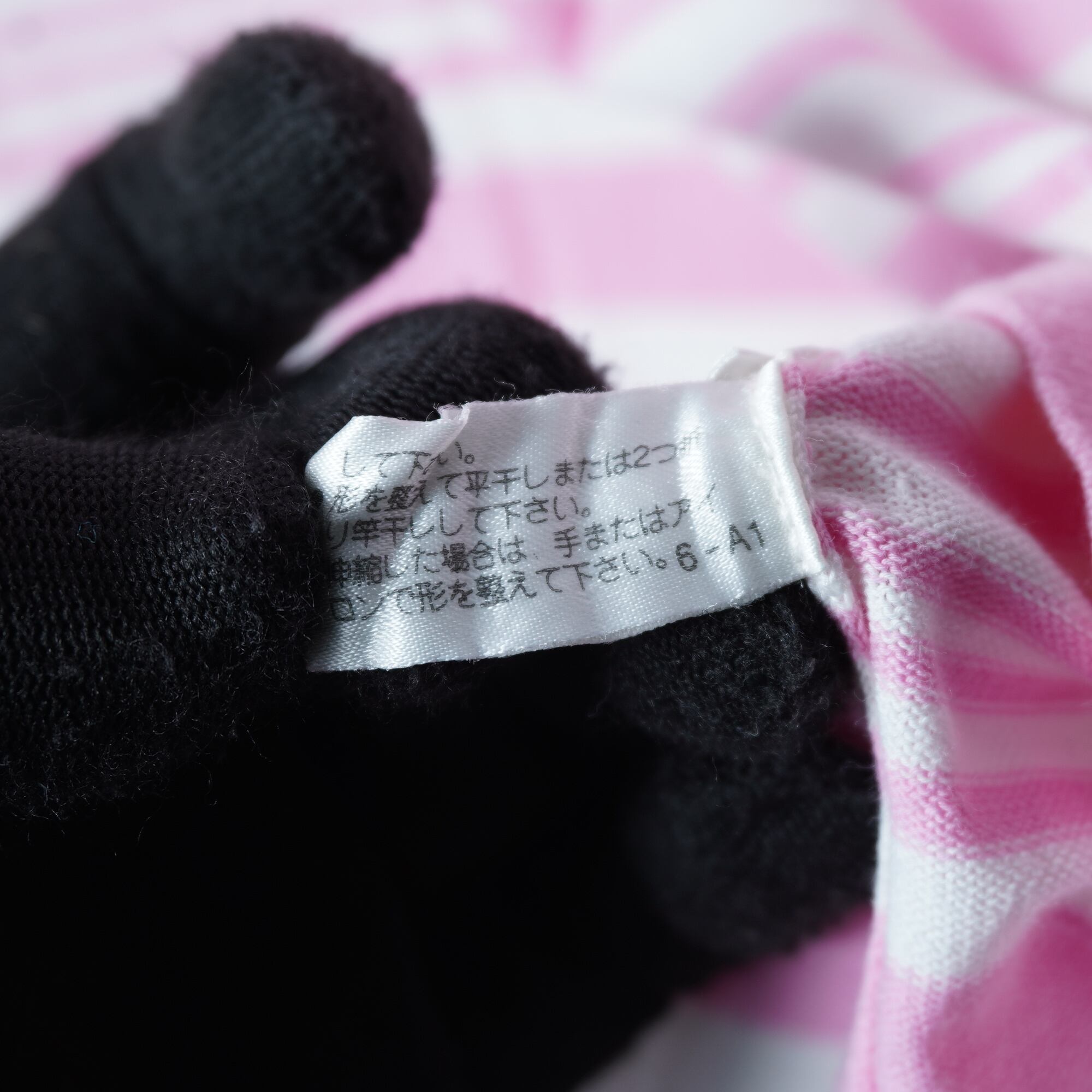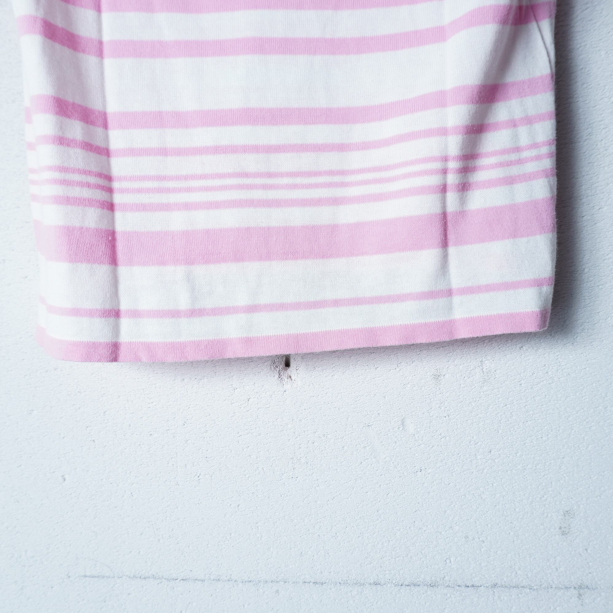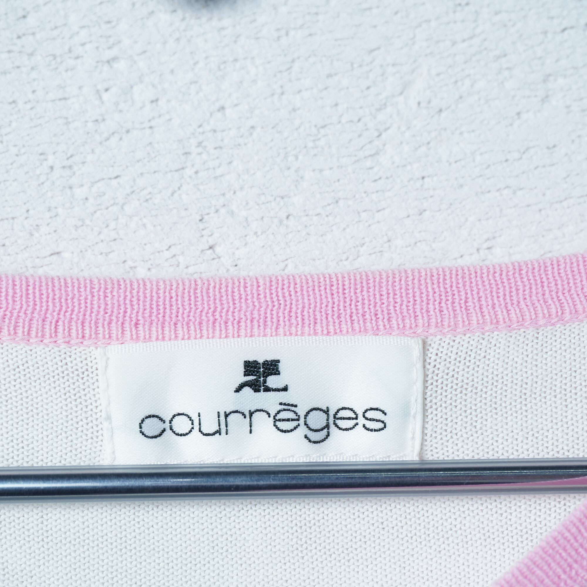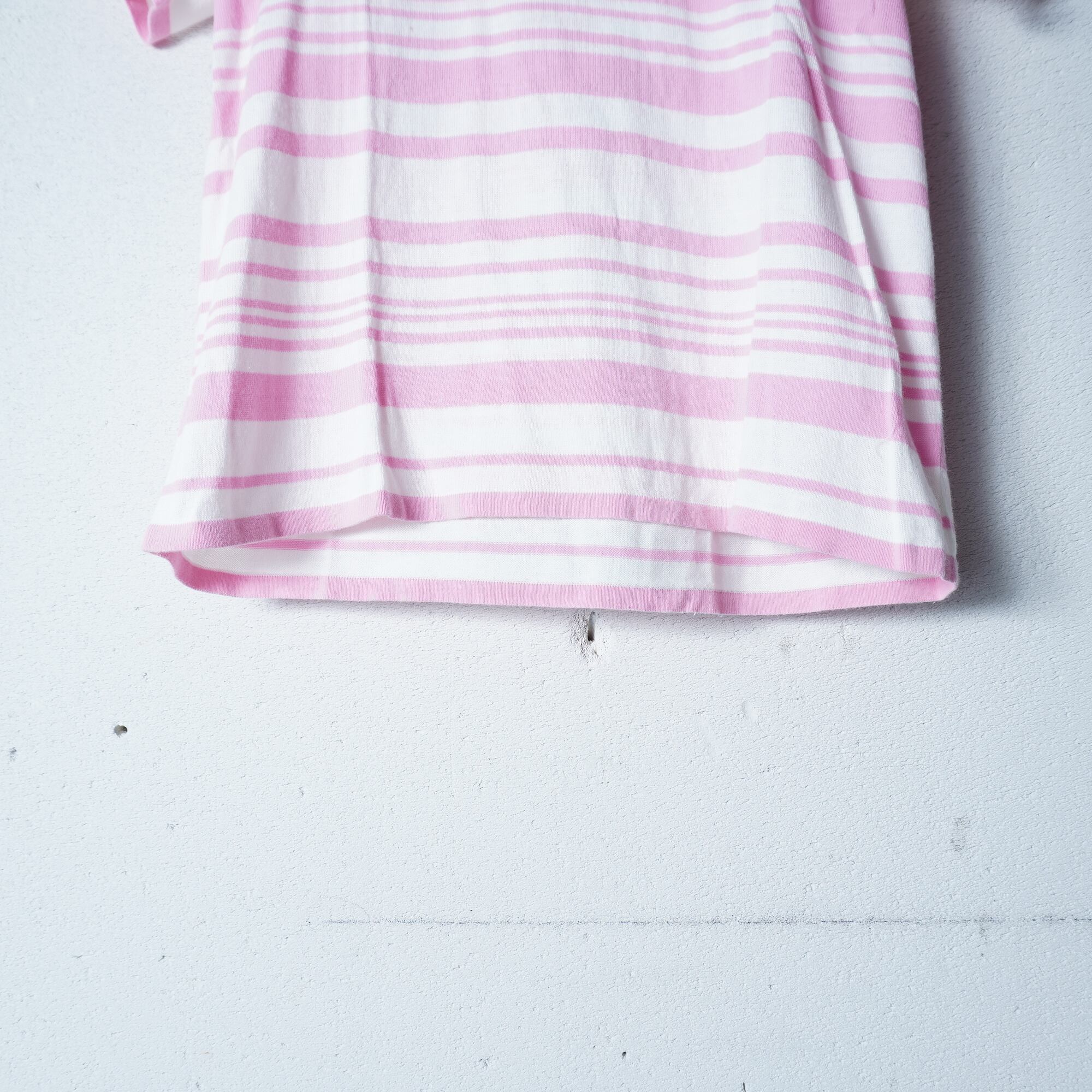 【Courrèges】クレージュ "ロゴ刺繡" ボーダー半袖ニット PINK&WHITE
