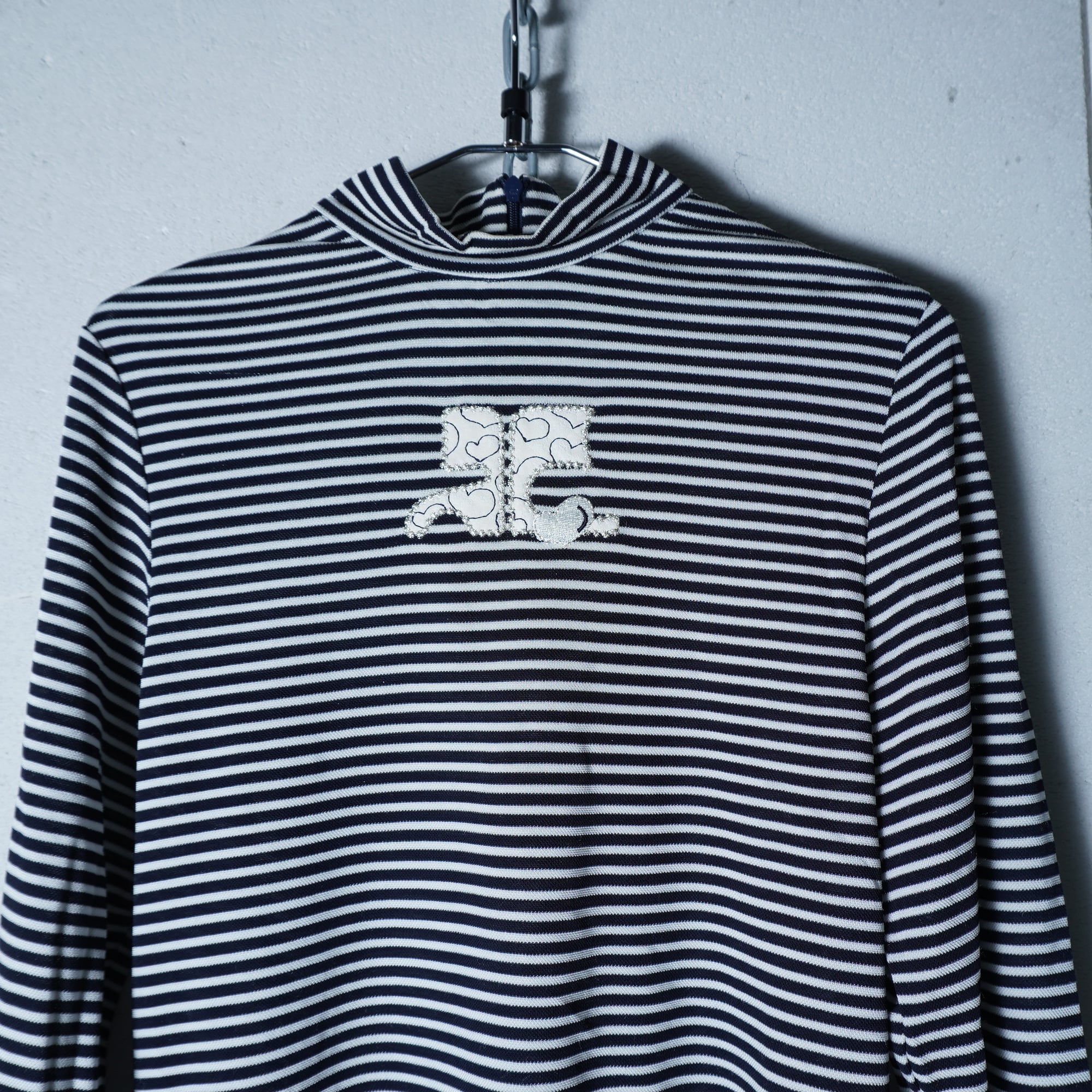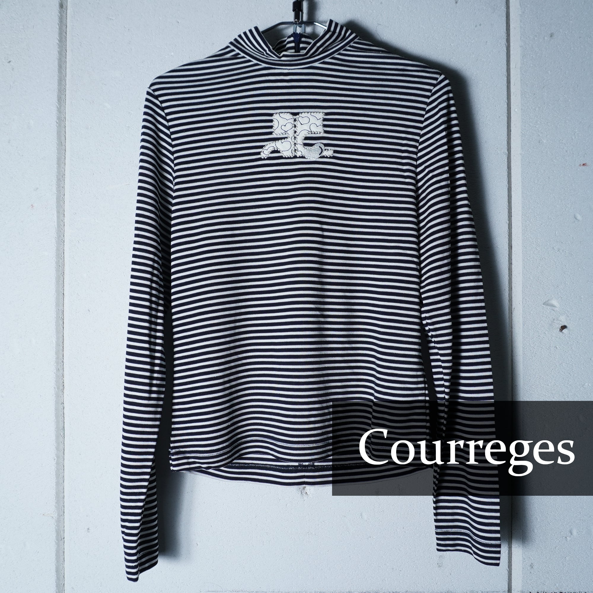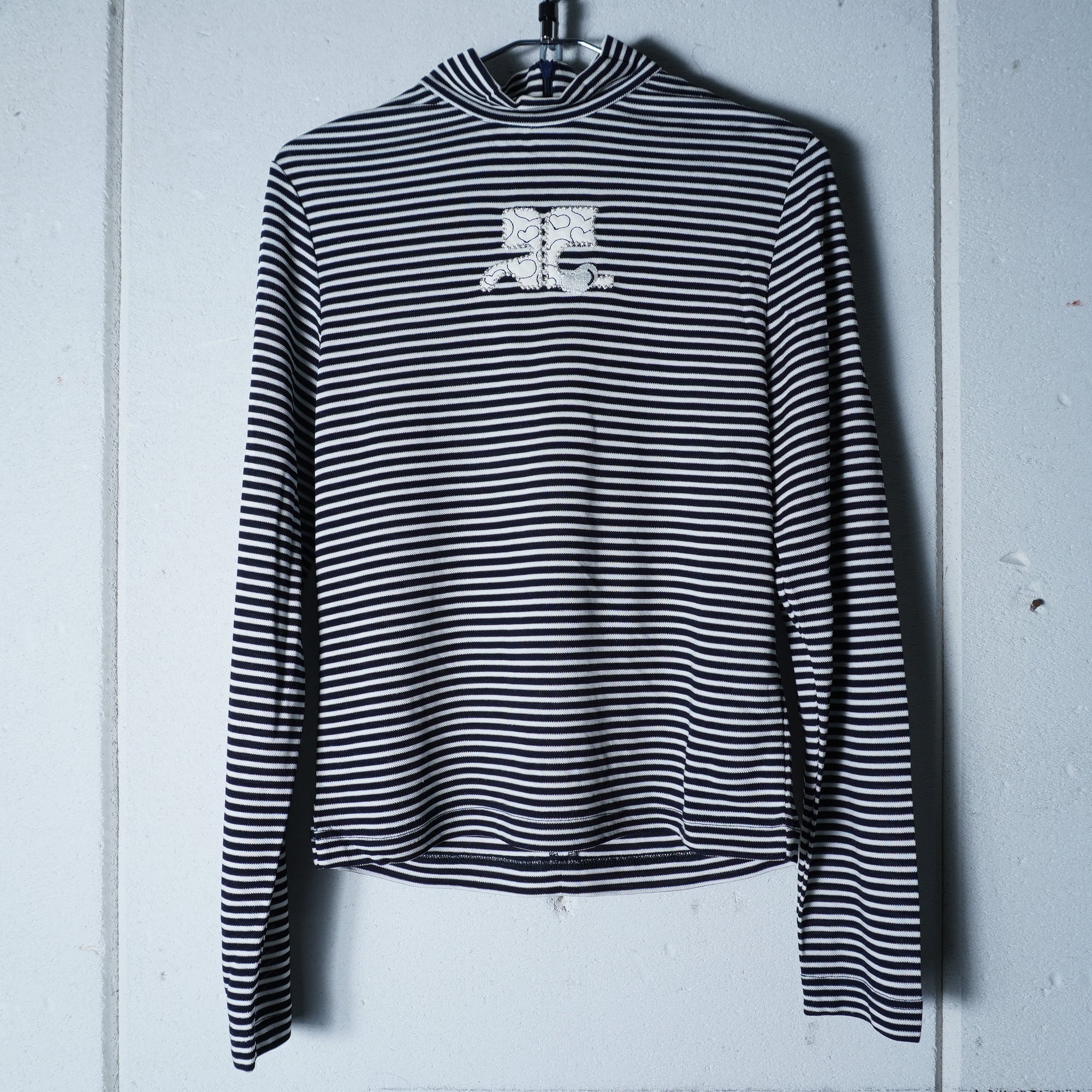 【Courrèges】クレージュ "ハートロゴ" ボーダーロングスリーブニット BLACK&WHITE