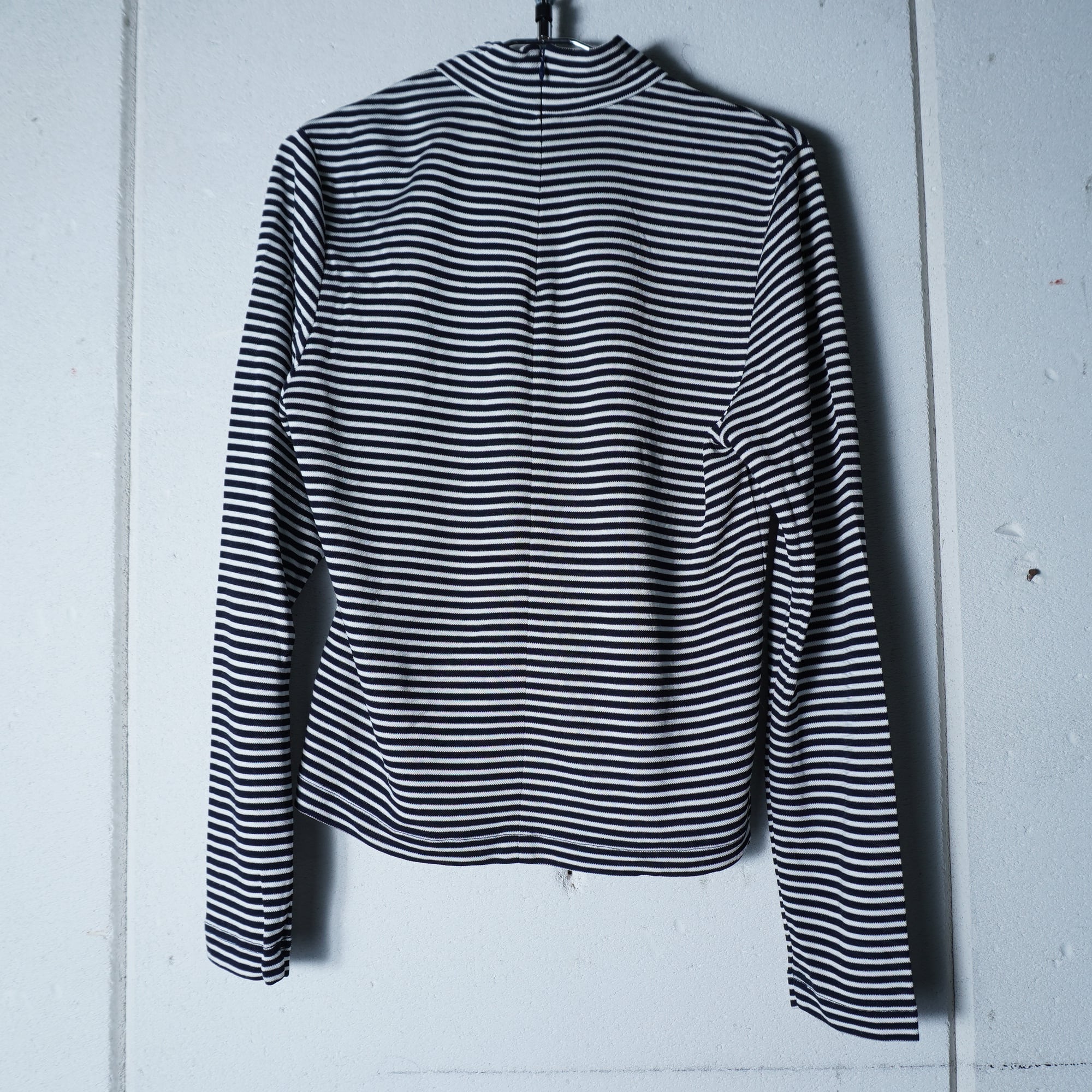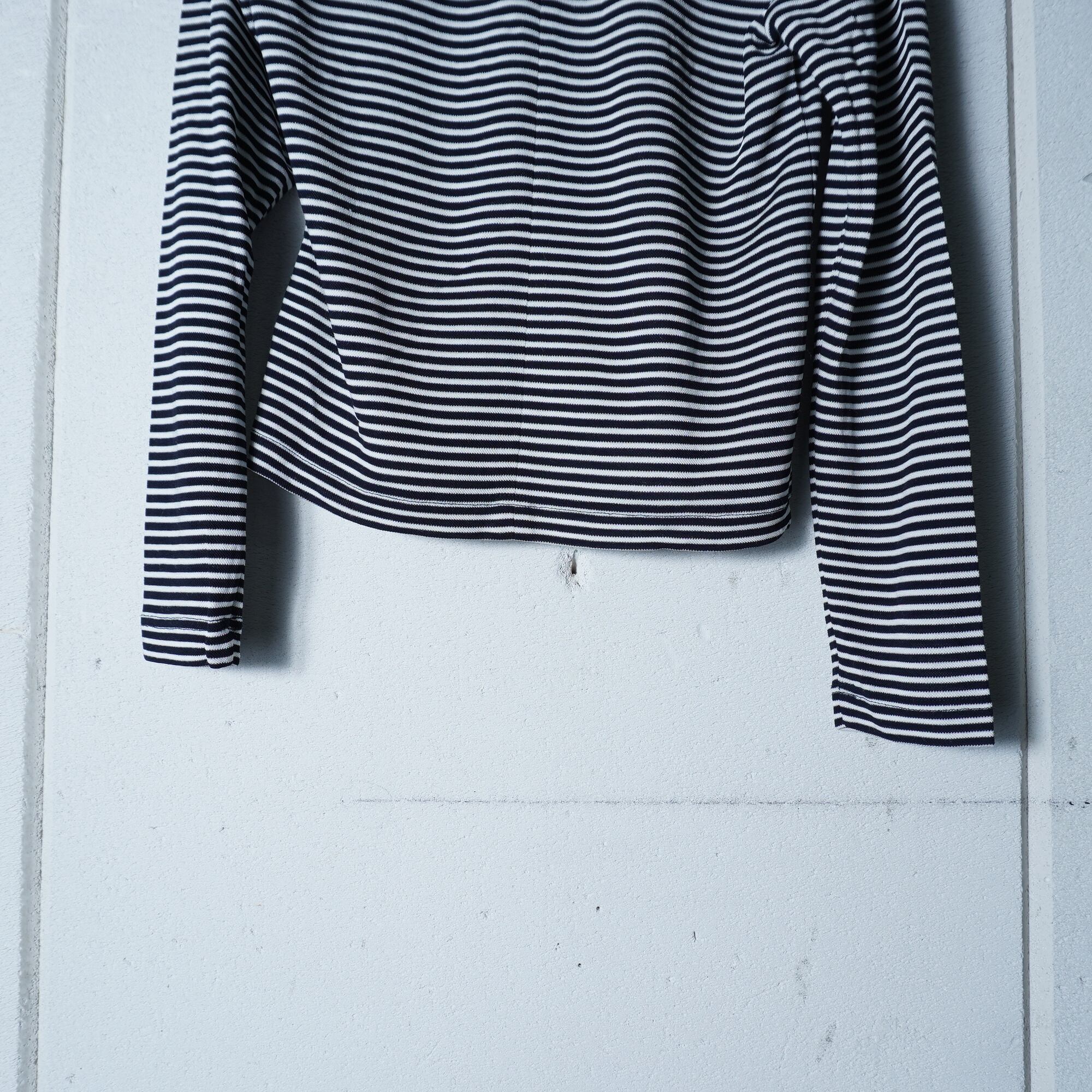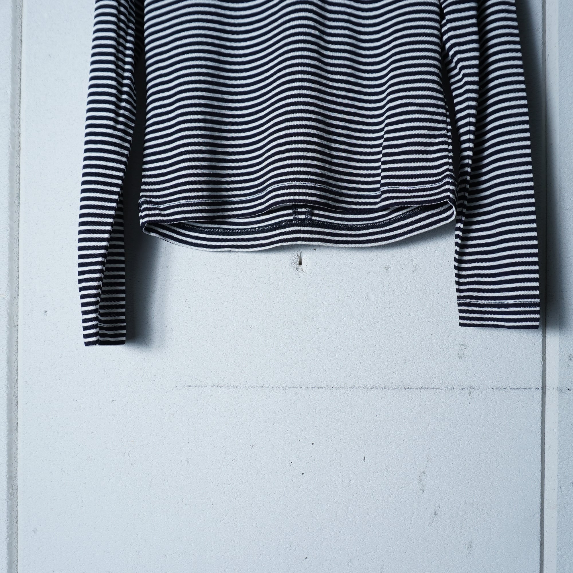 【Courrèges】クレージュ "ハートロゴ" ボーダーロングスリーブニット BLACK&WHITE