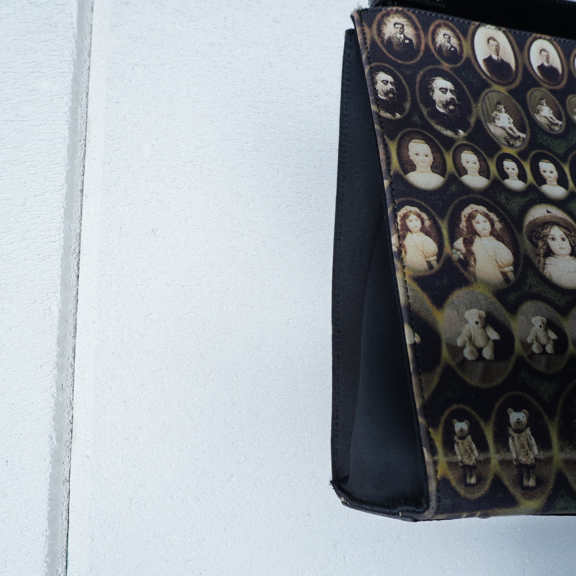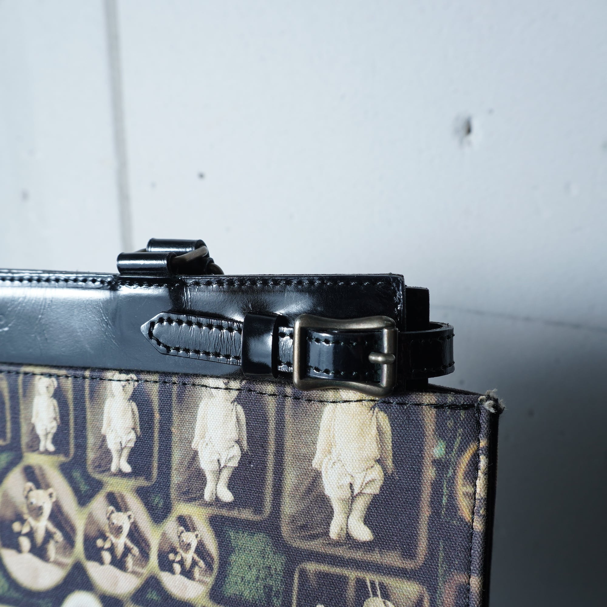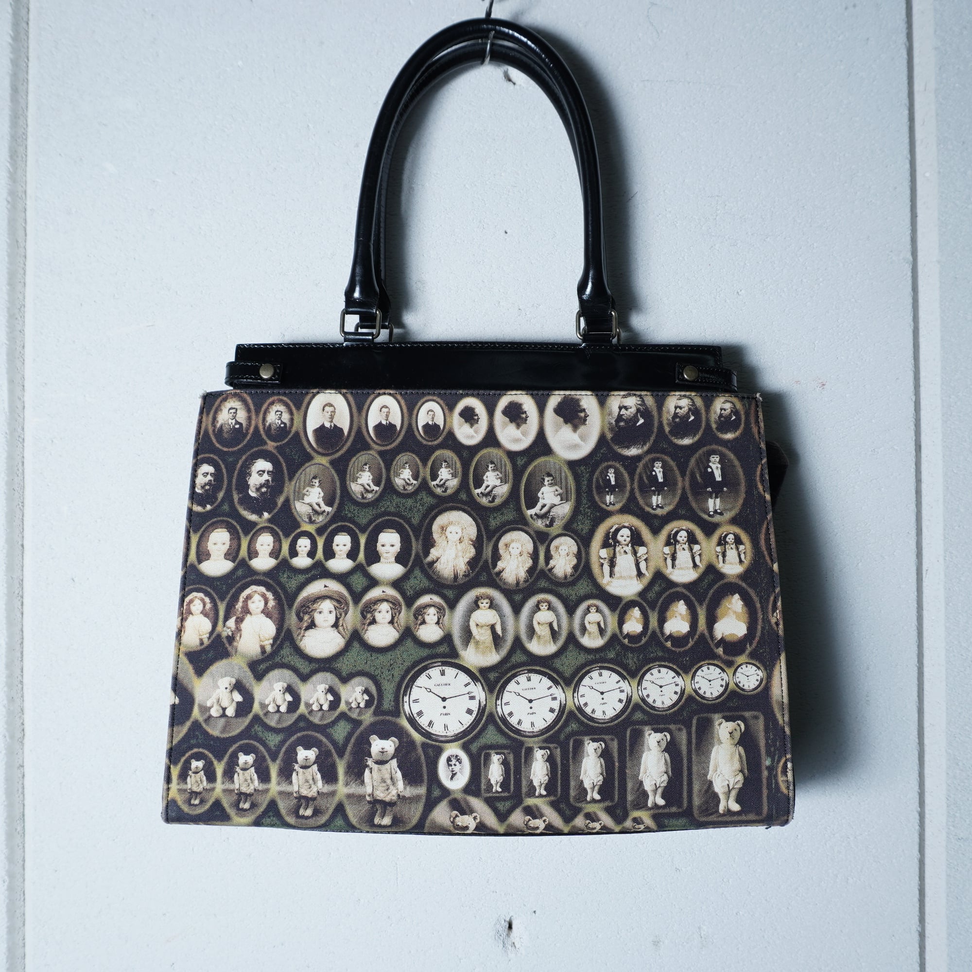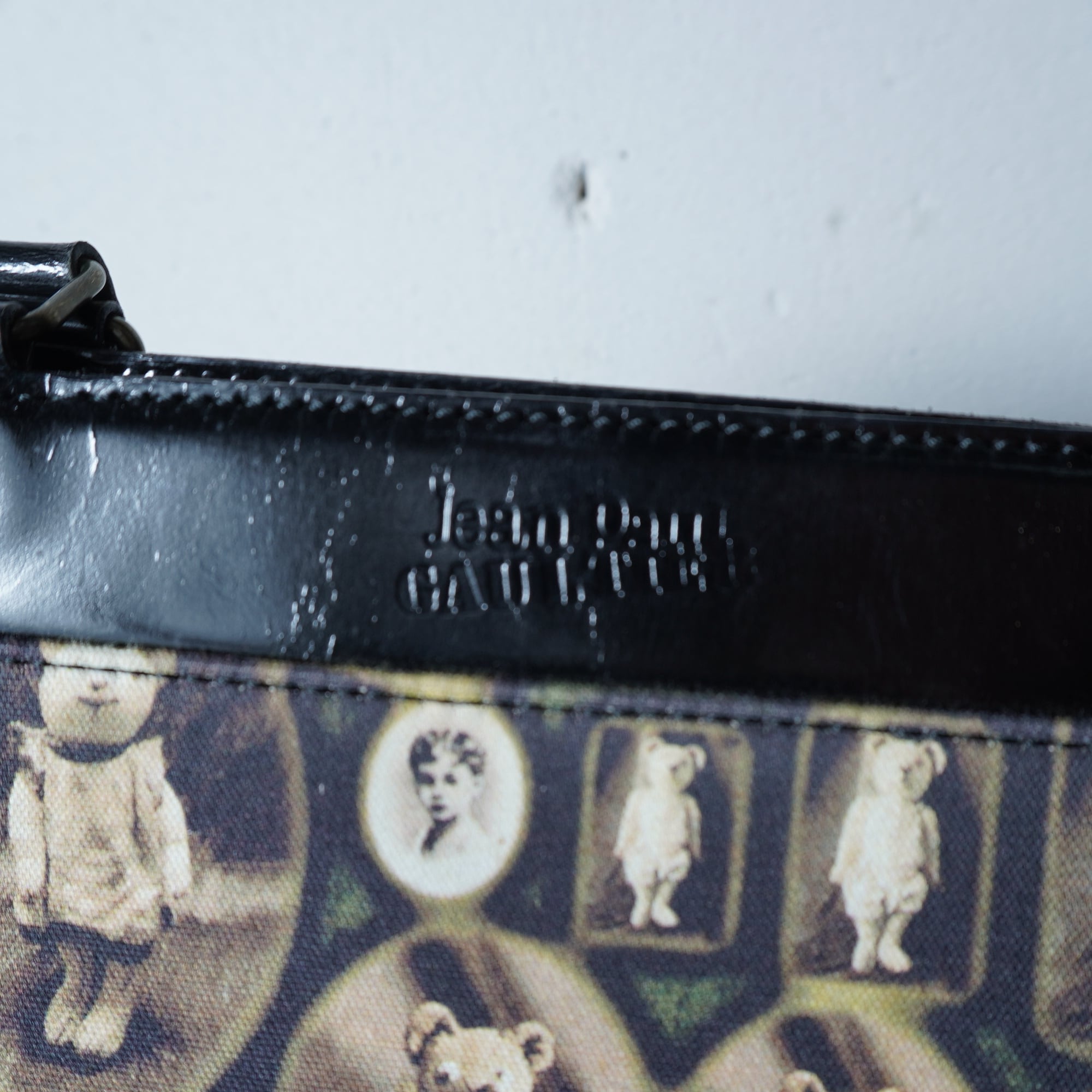 【Jean Paul GAULTIER】ジャンポールゴルチエ ”ロゴ入””ARCHIVE"ミニポーチ付アンティークドール&テディベア柄トートバッグ black&beige&red