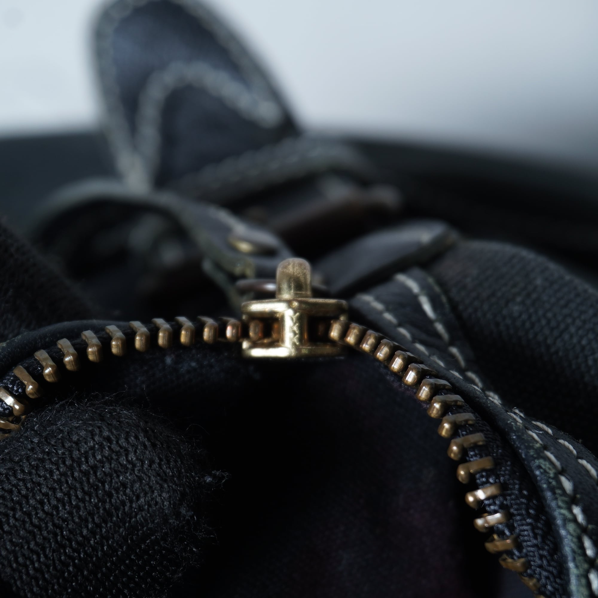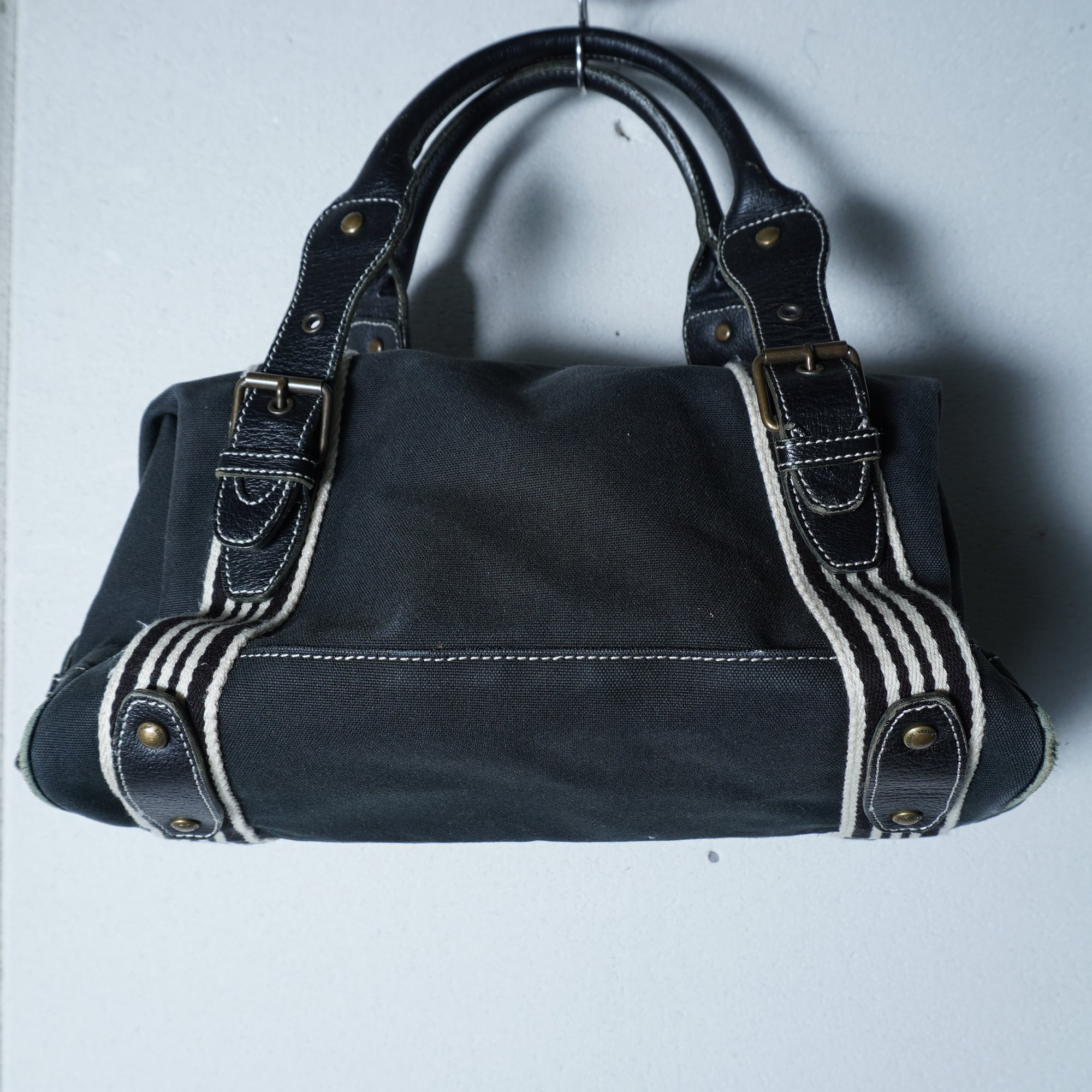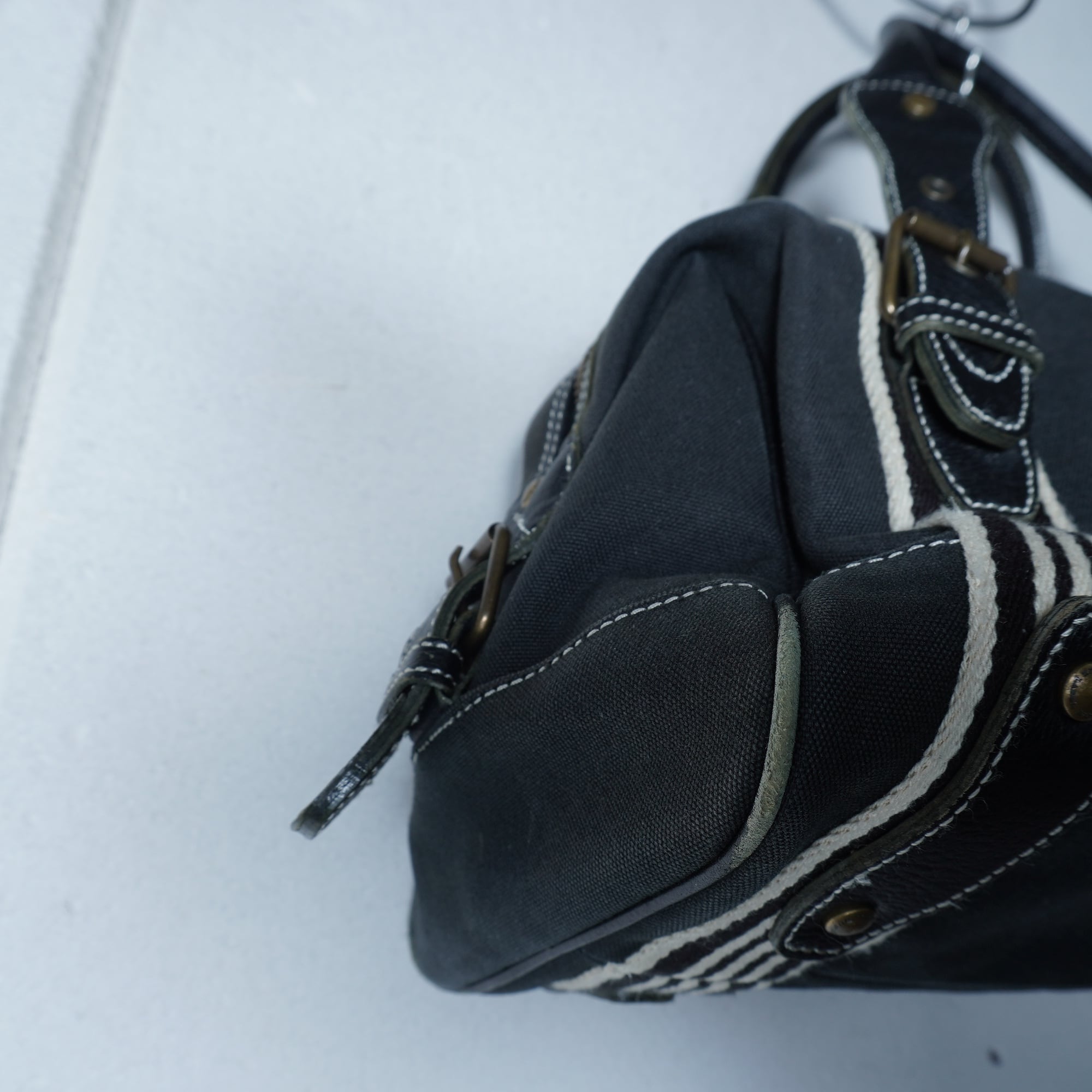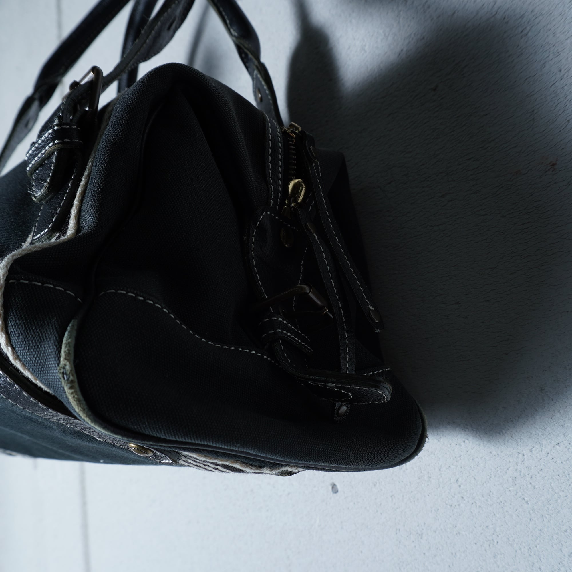 【BURBERRY】バーバリー ”ホースロゴ刺繡”レザー切替キャンバスボストンバッグ black