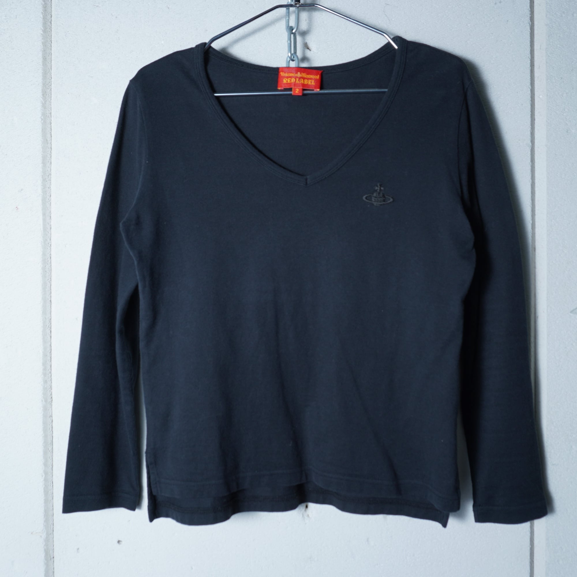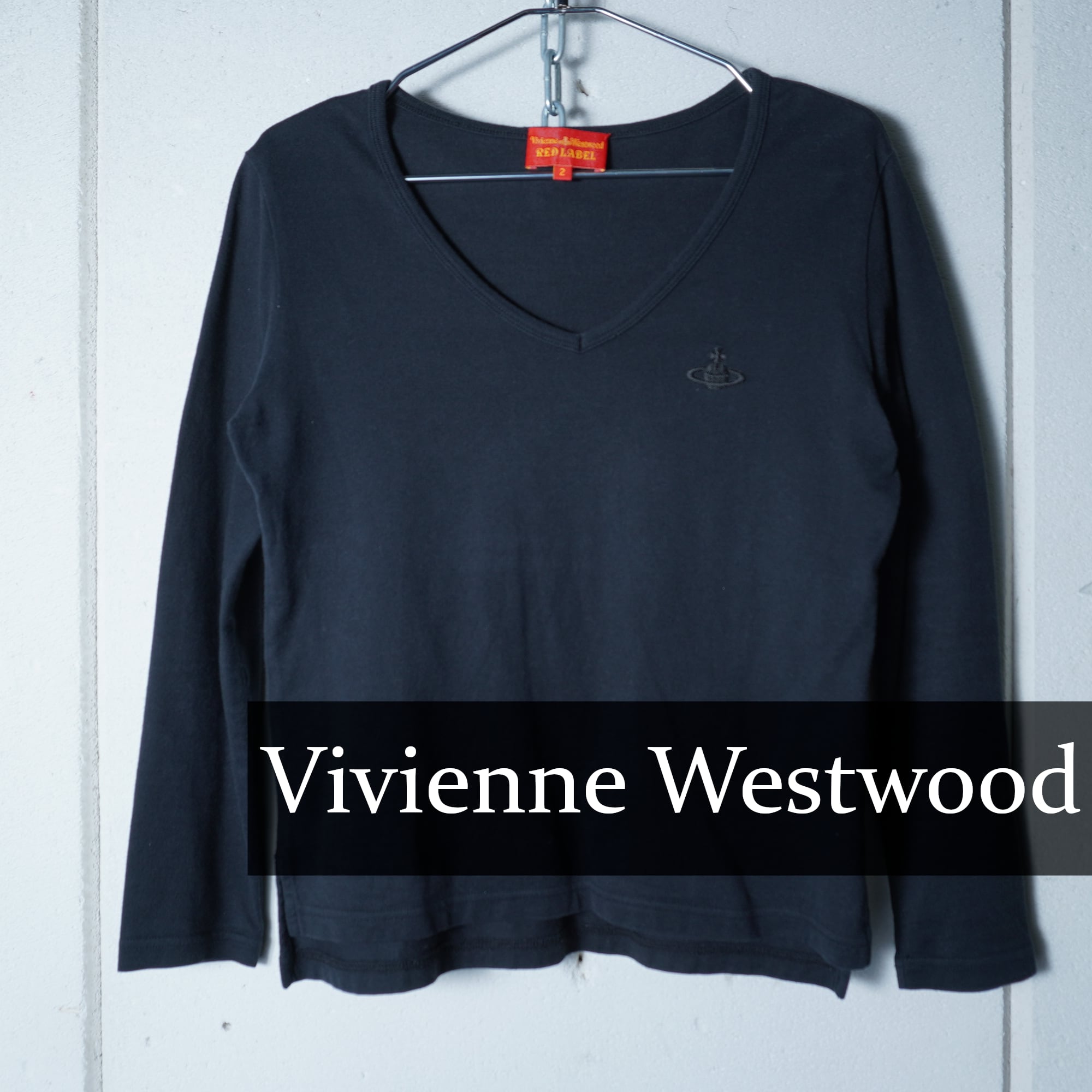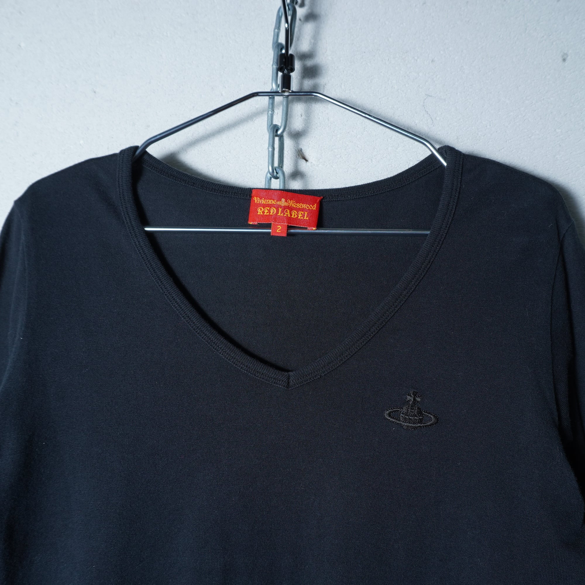 【Vivienne Westwood】ヴィヴィアンウエストウッド ”オーブロゴ刺繍” Vネックロングスリーブカットソー black