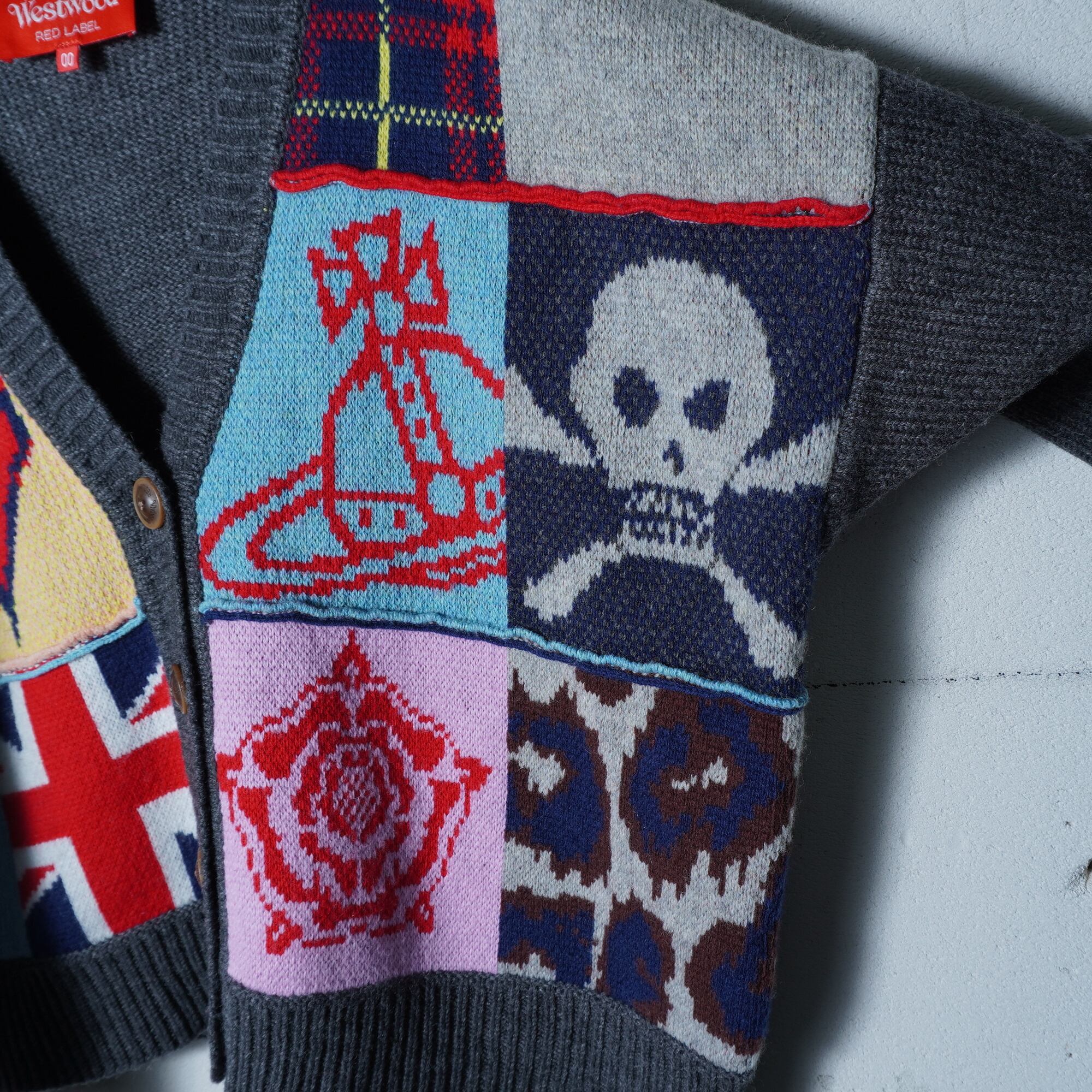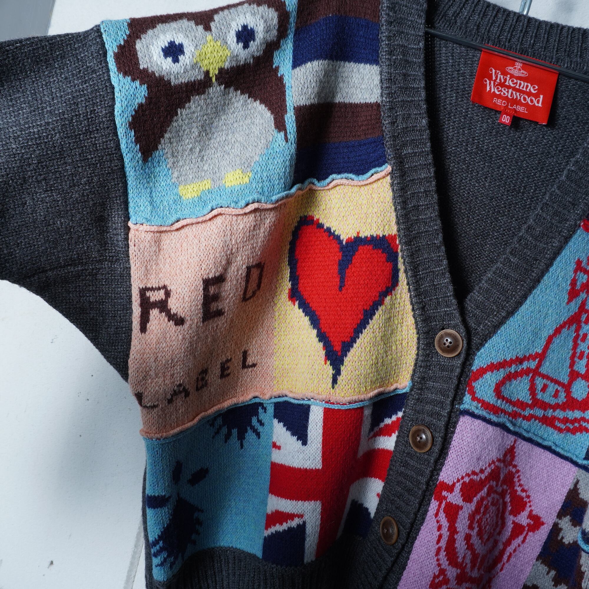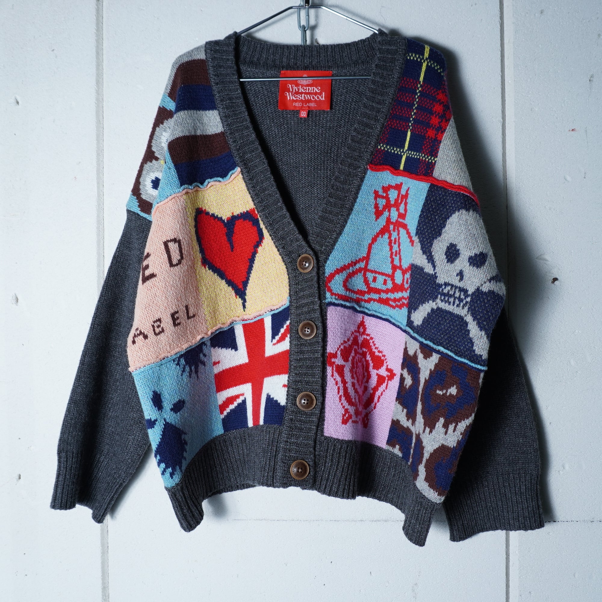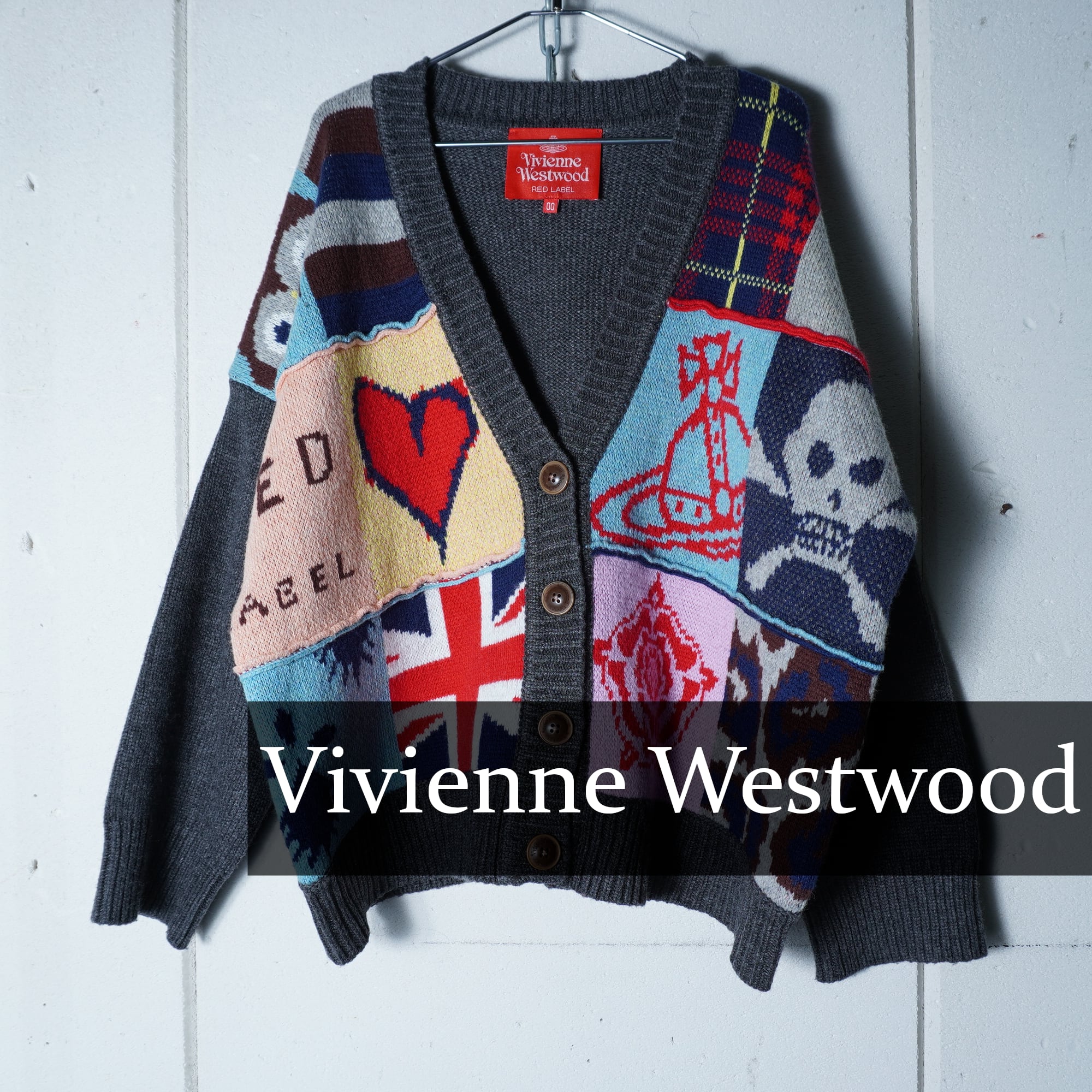 【Vivienne Westwood】ヴィヴィアンウエストウッド パッチワークデザインニットカーディガン gray