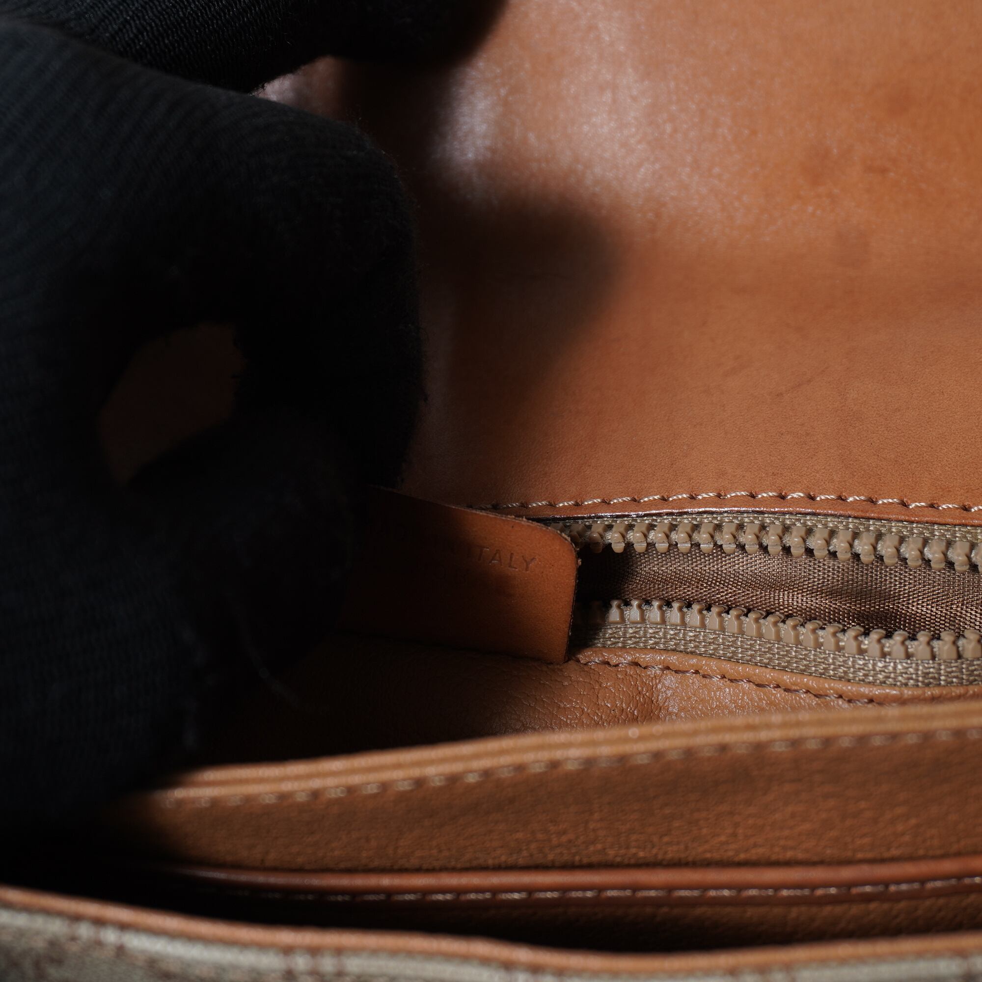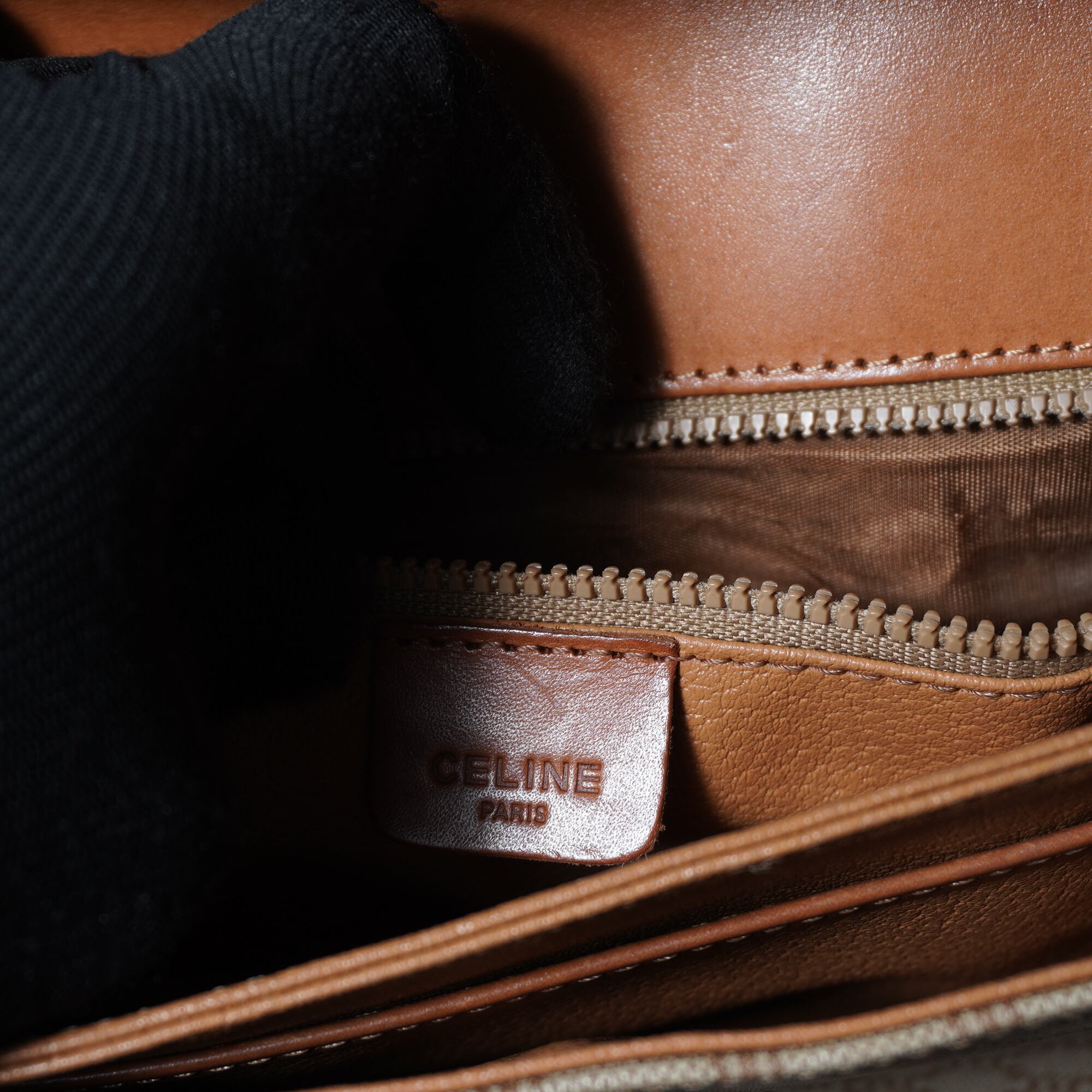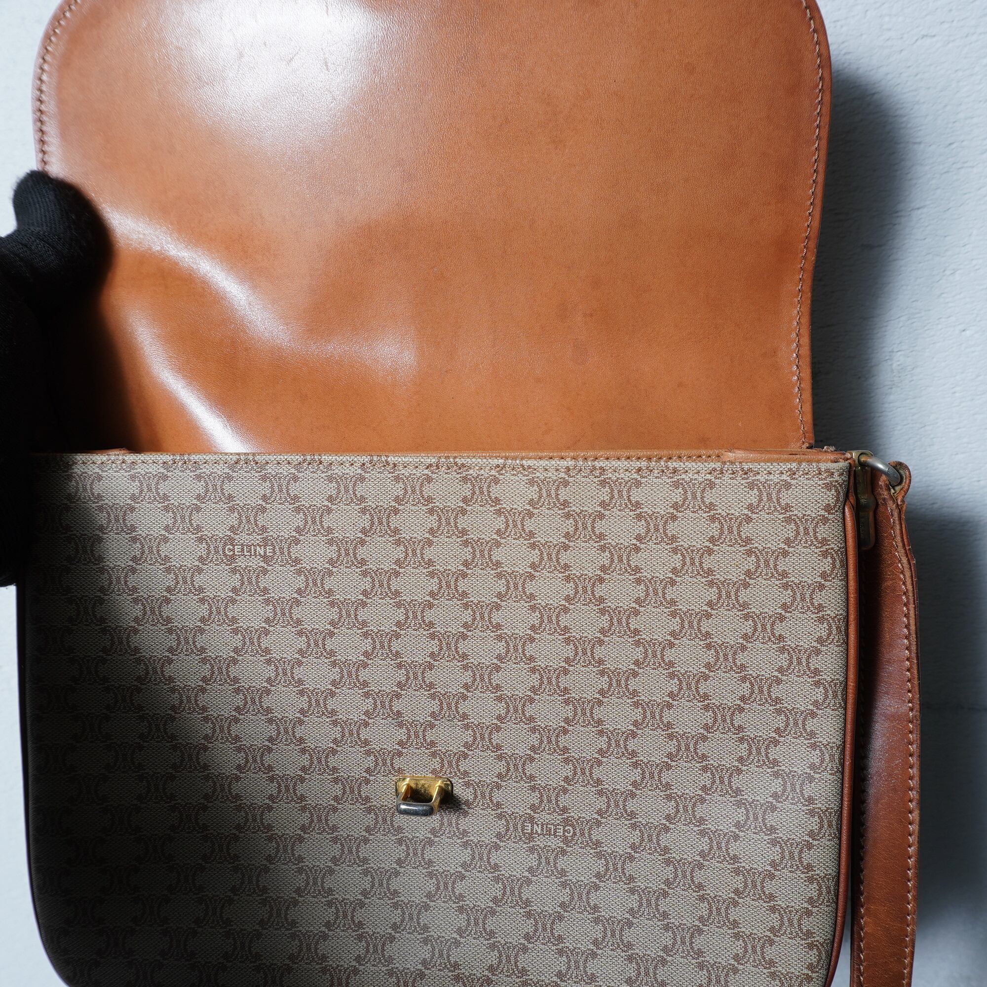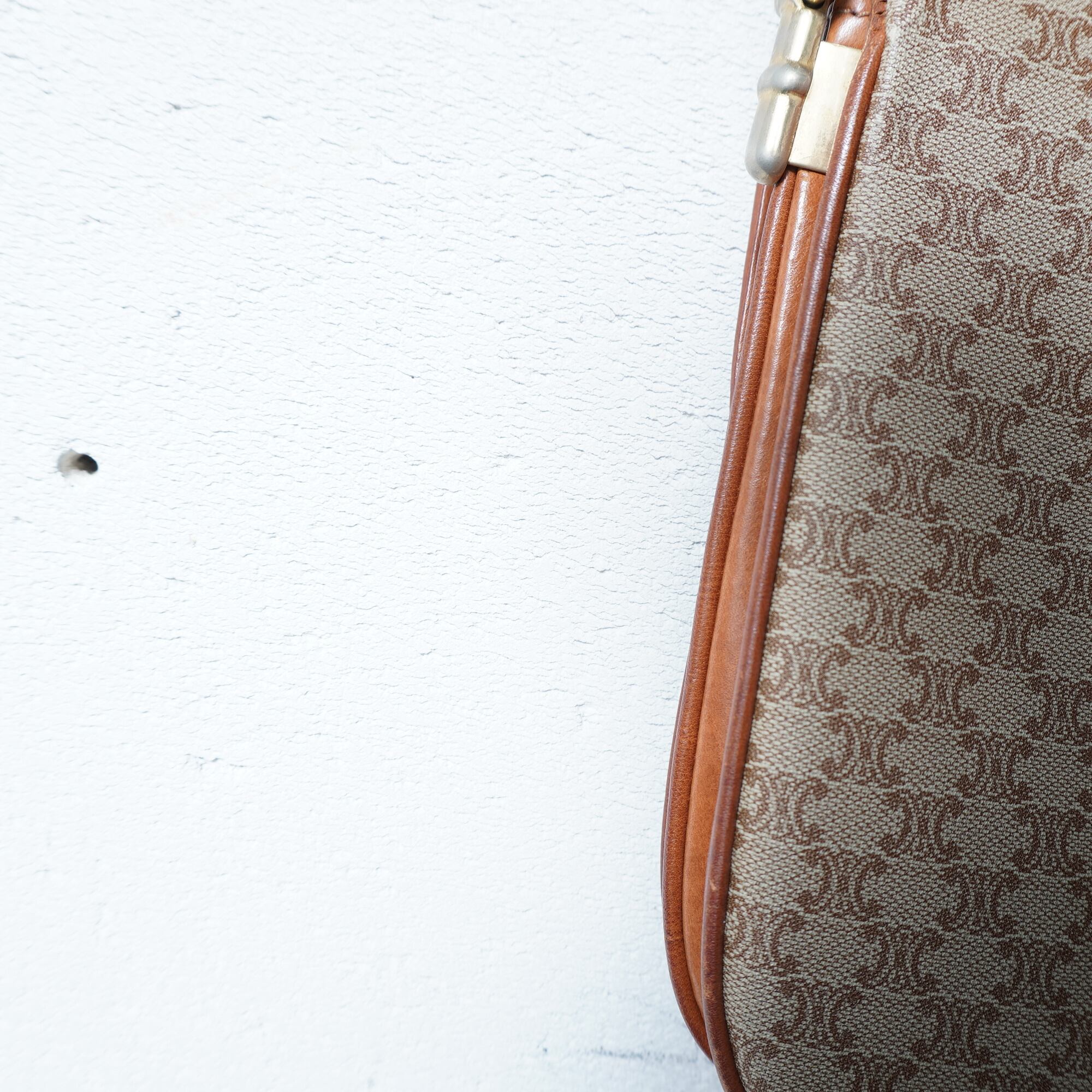 【CELINE】セリーヌ ”マカダム柄”レザーフラップショルダーバッグ beige & brown
