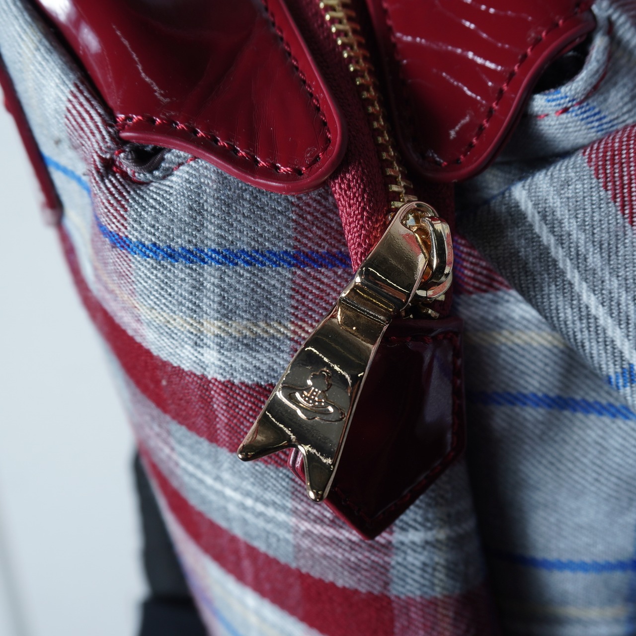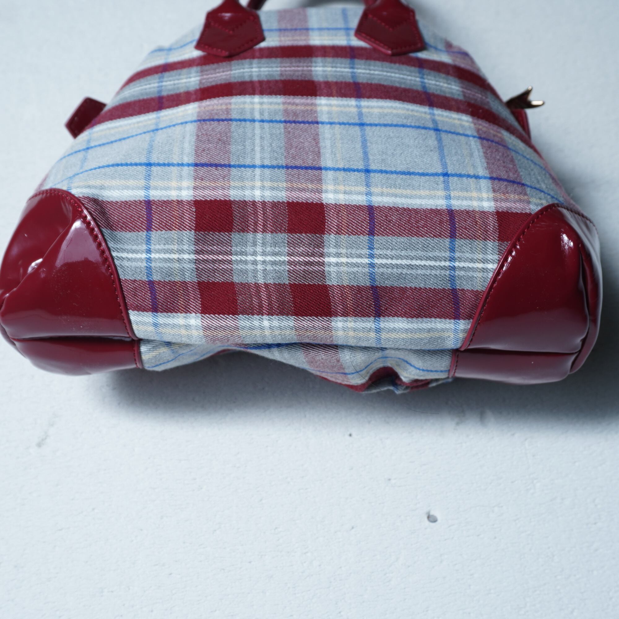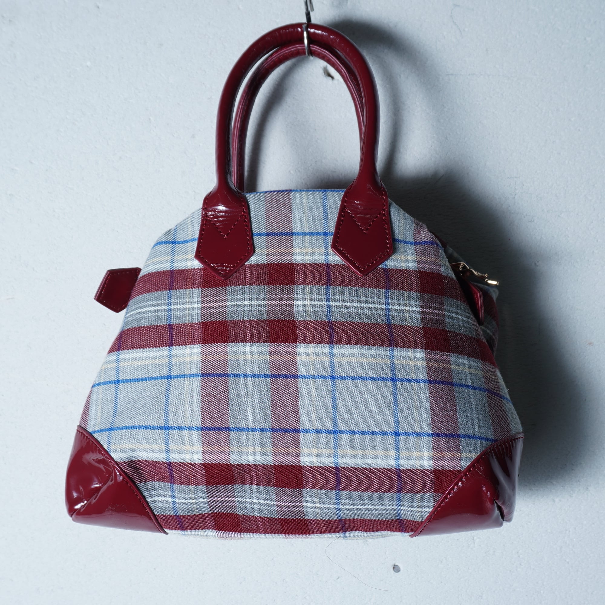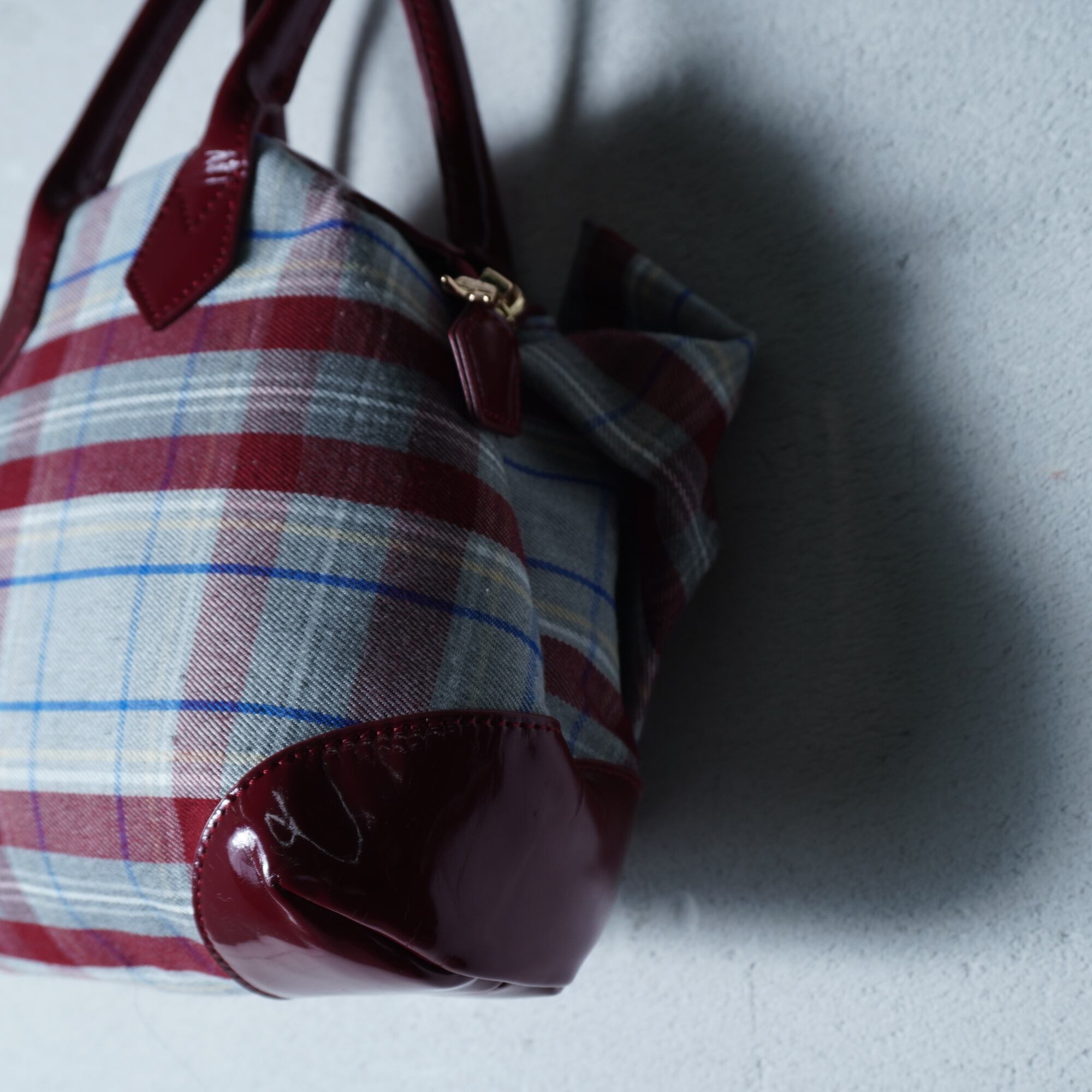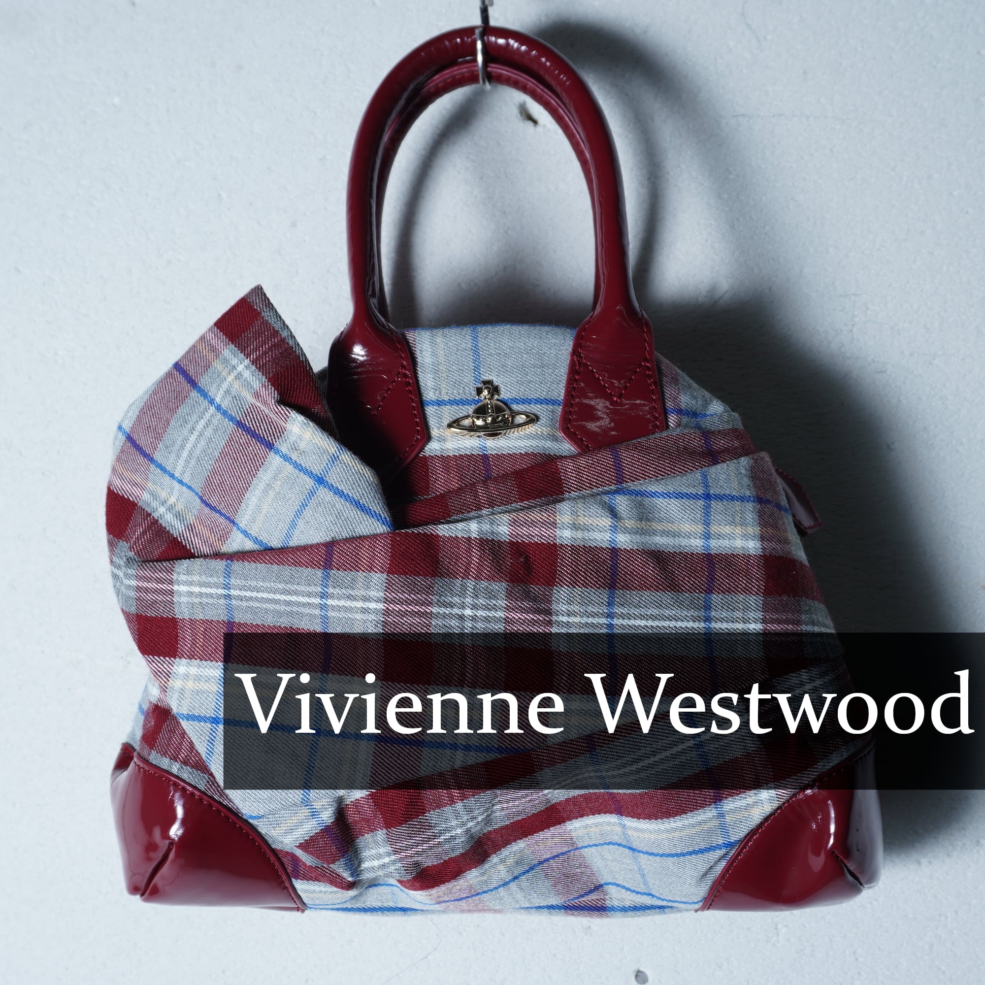 【Vivienne Westwood】ヴィヴィアンウエストウッド "オーブロゴ”タータンチェック変形ハンドバッグ wine red & gray & blue