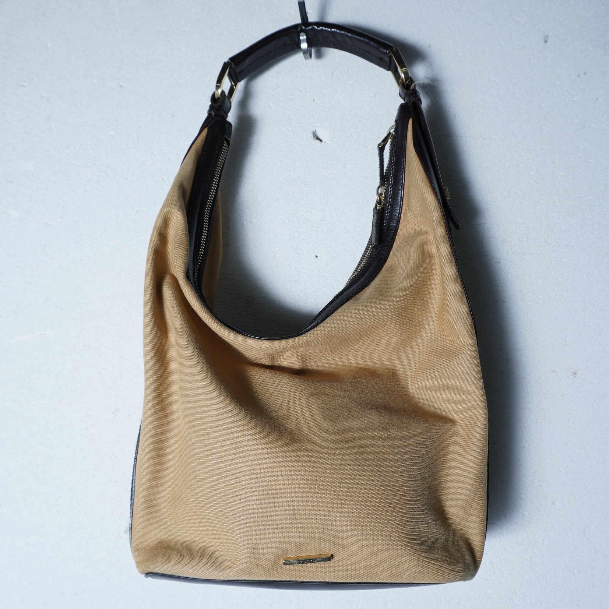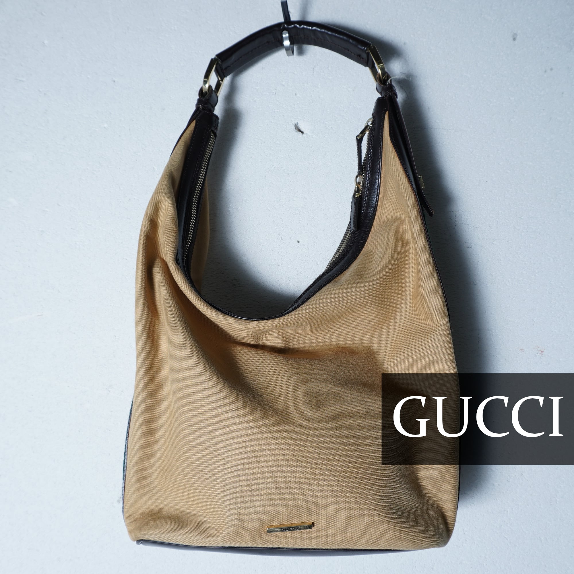 【GUCCI】グッチ ”ロゴ入” シェリーラインレザー切替ワンショルダーバッグ camel&black