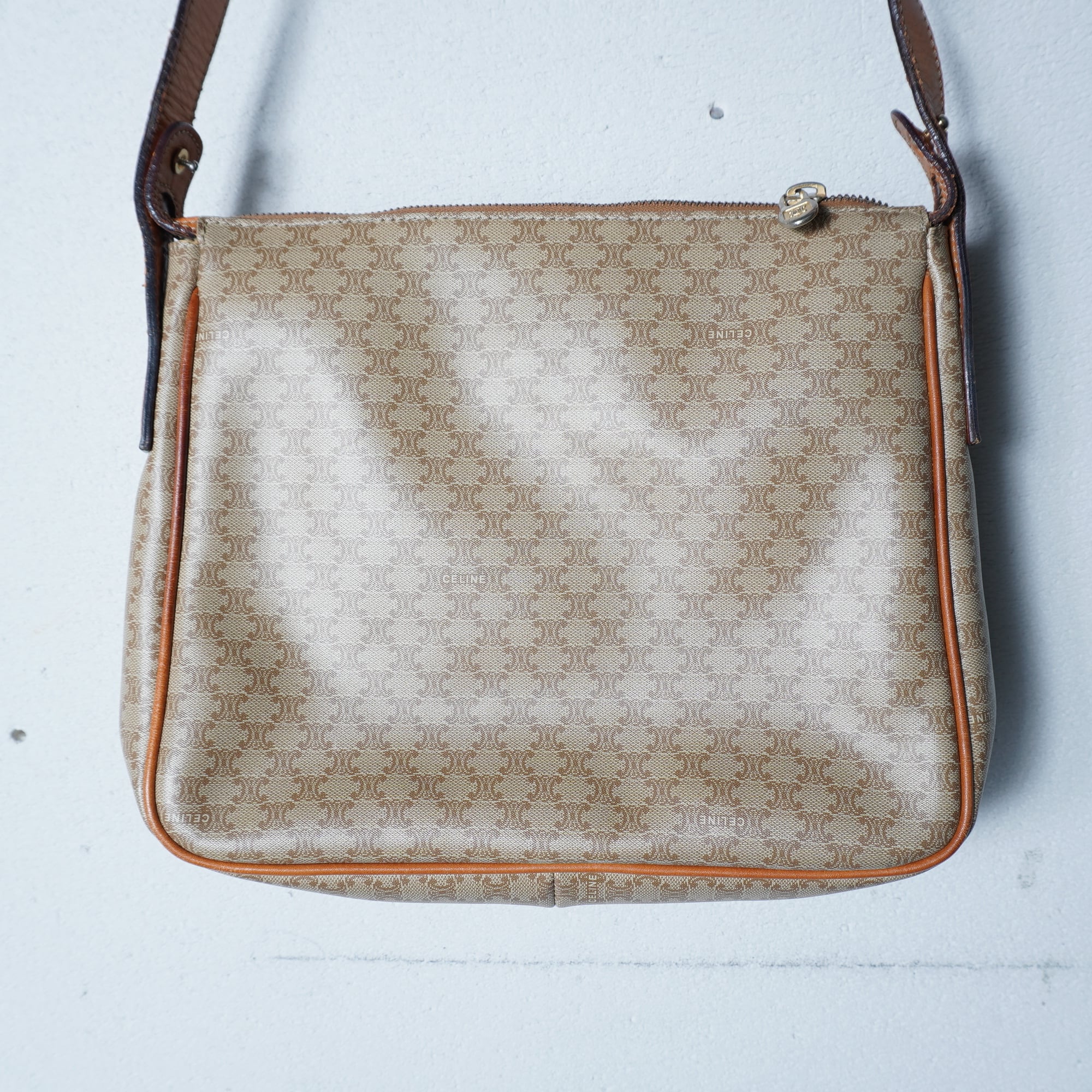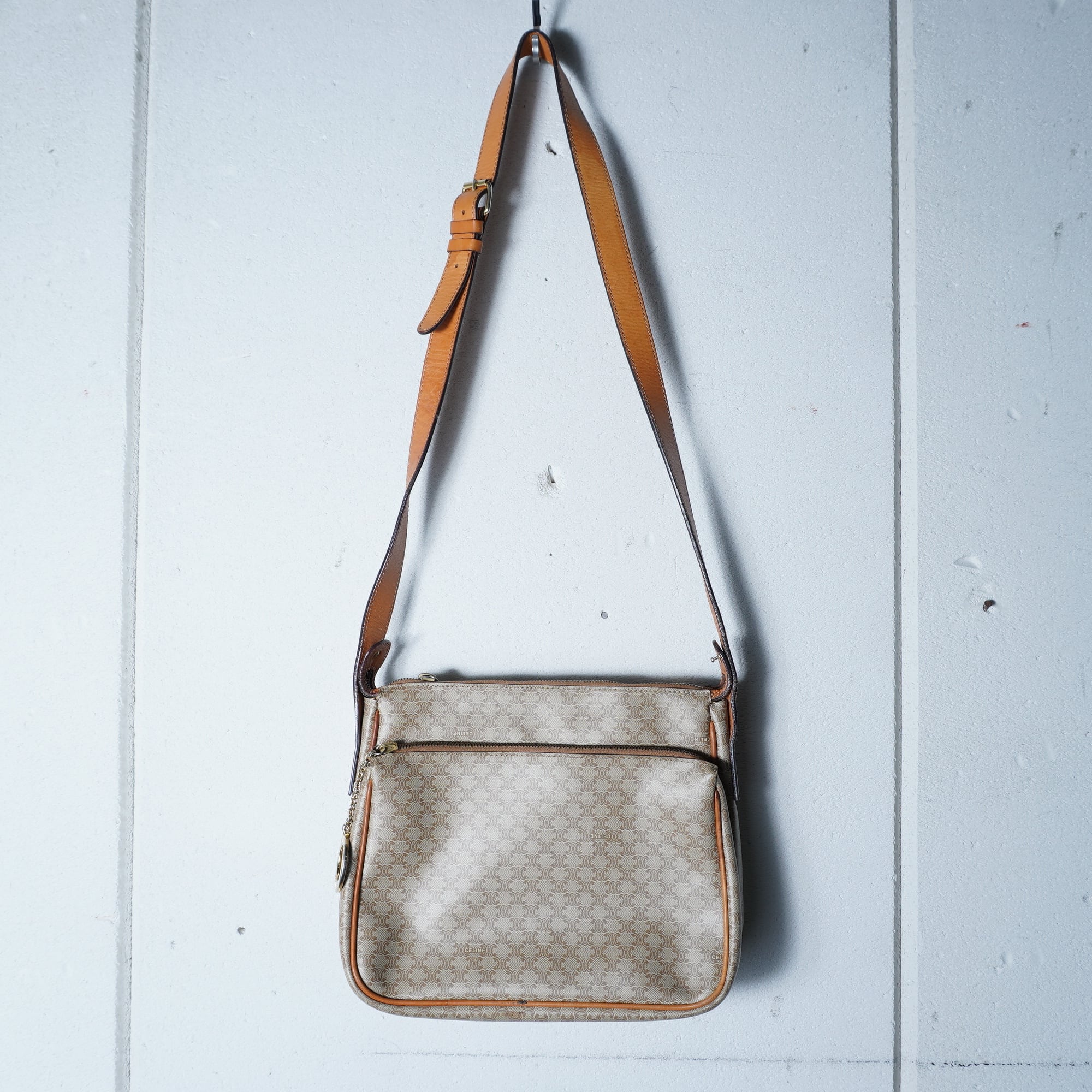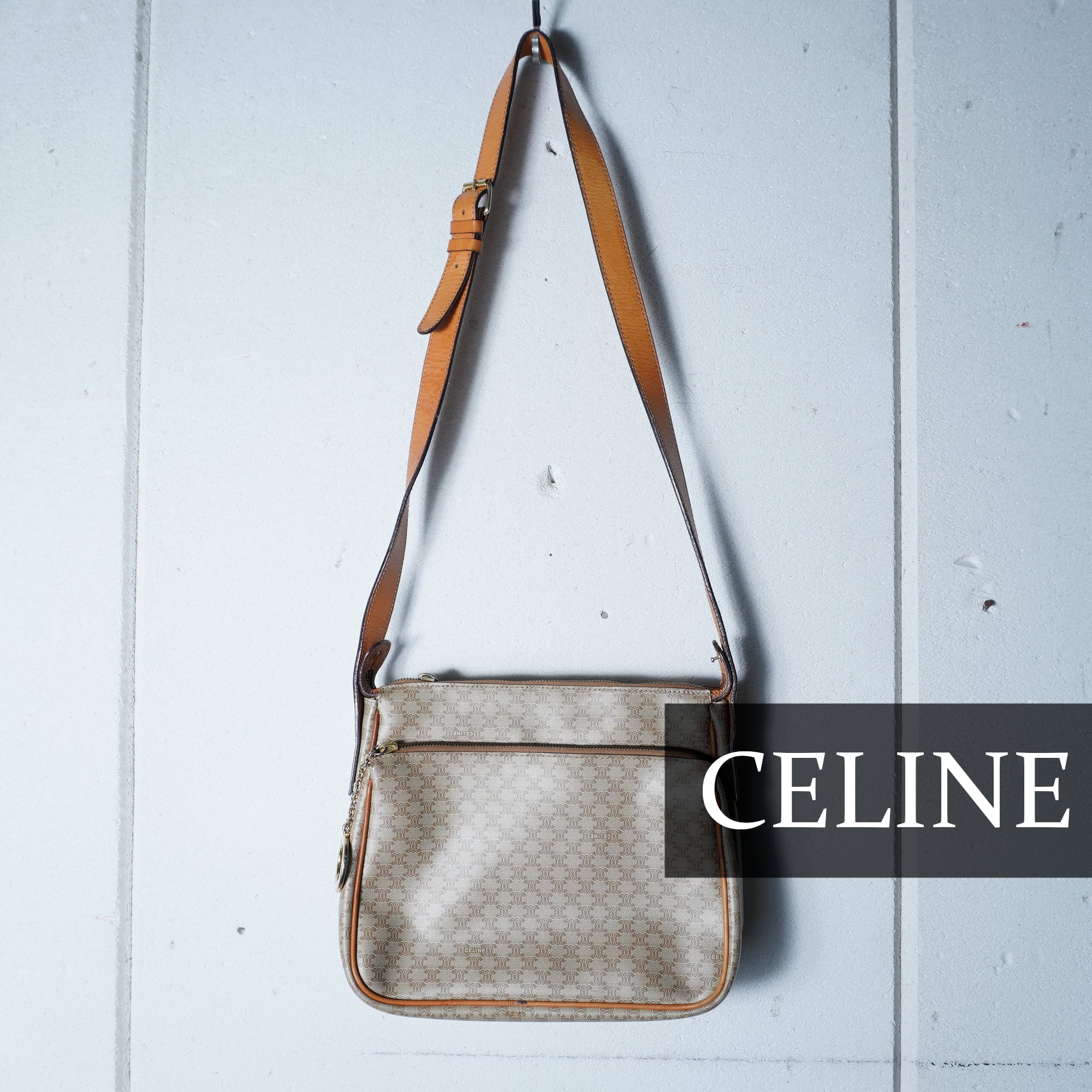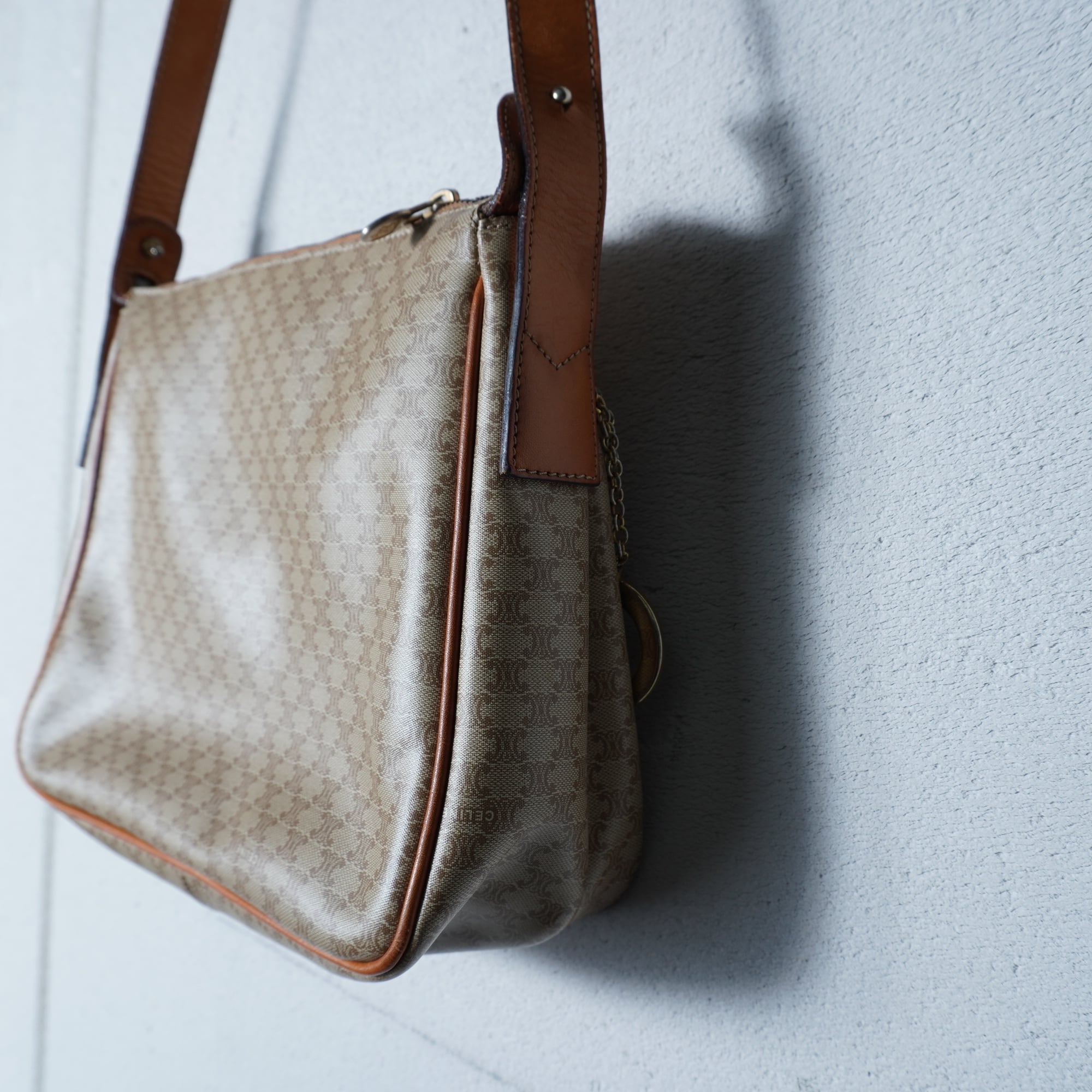 【CELINE】セリーヌ ”ロゴゴールドチャーム” マカダム柄レザーショルダーバッグ beige