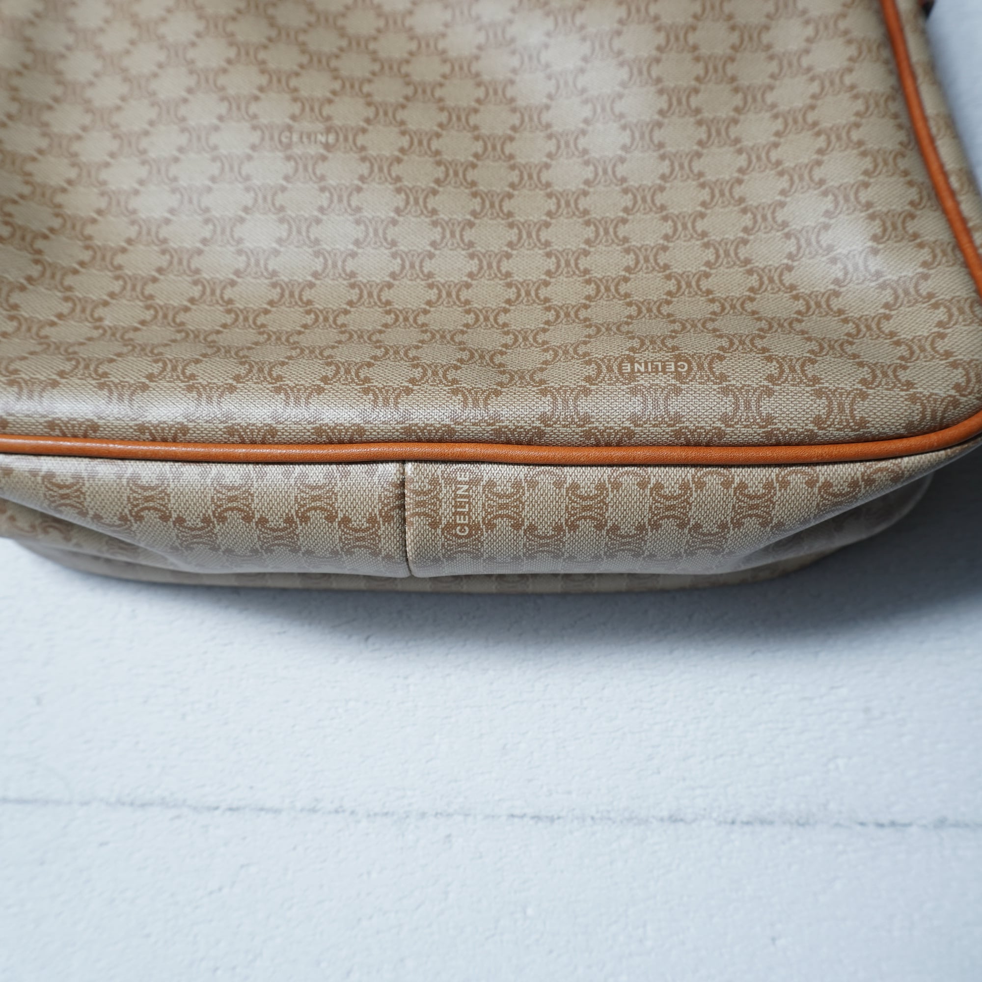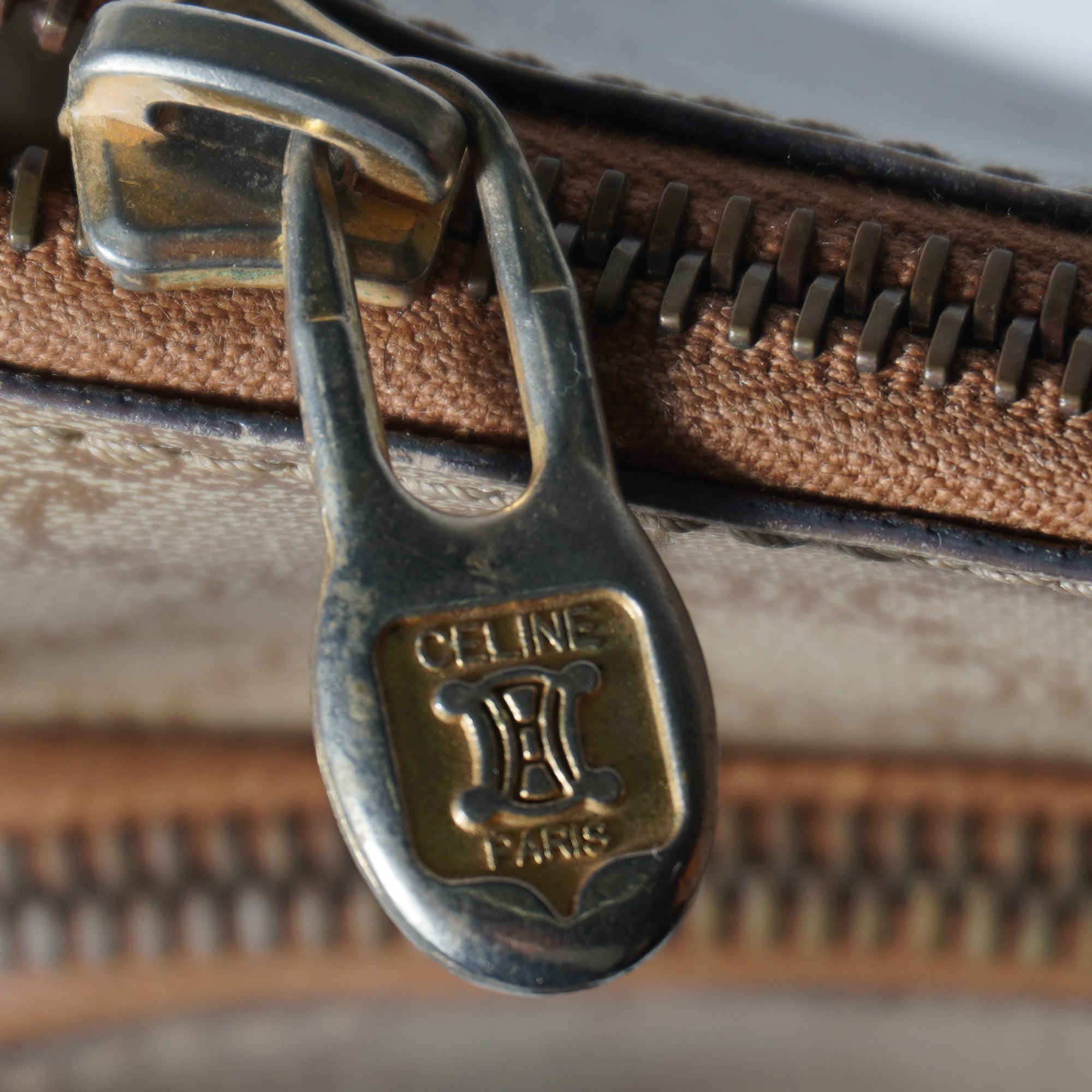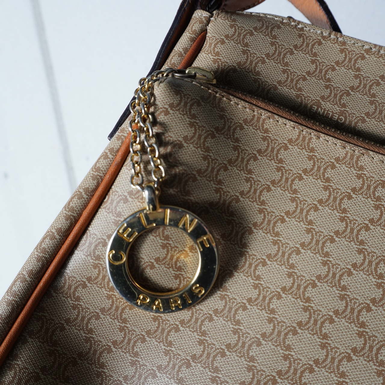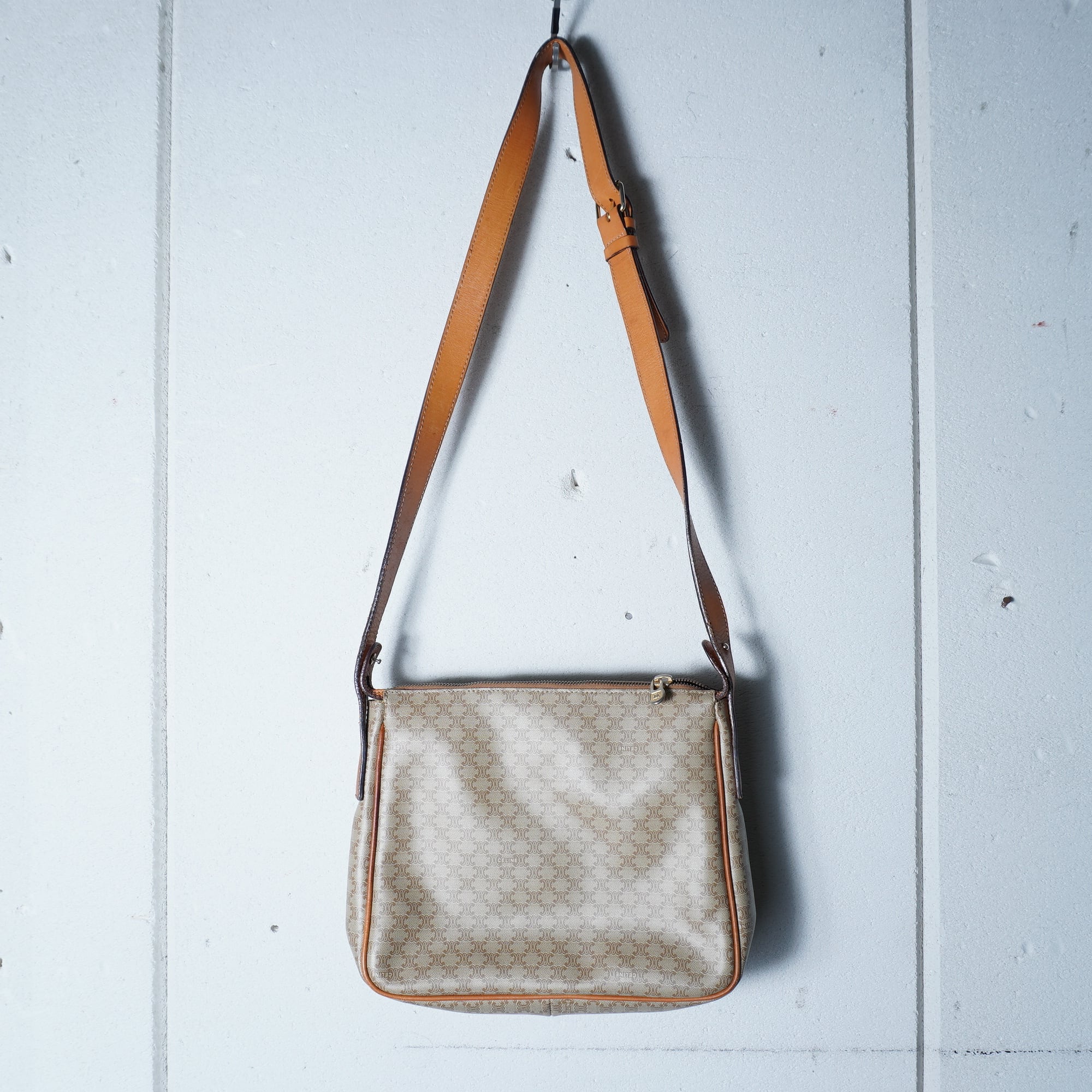 【CELINE】セリーヌ ”ロゴゴールドチャーム” マカダム柄レザーショルダーバッグ beige