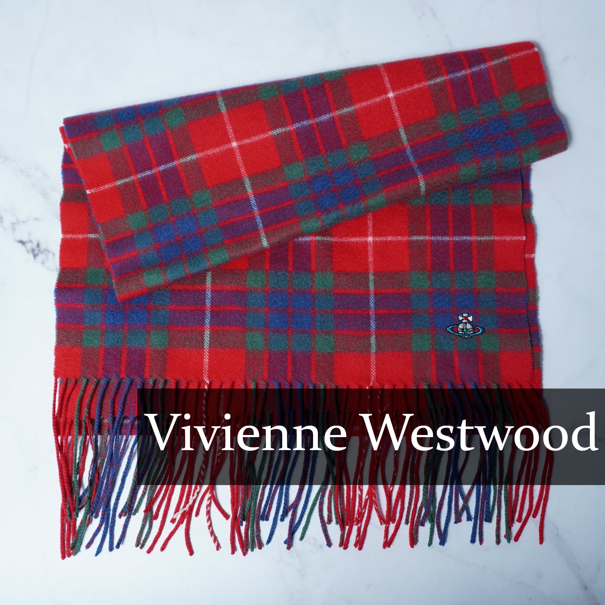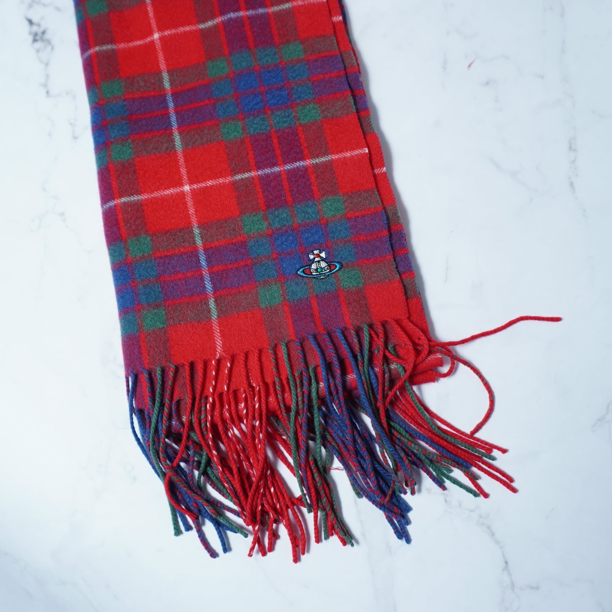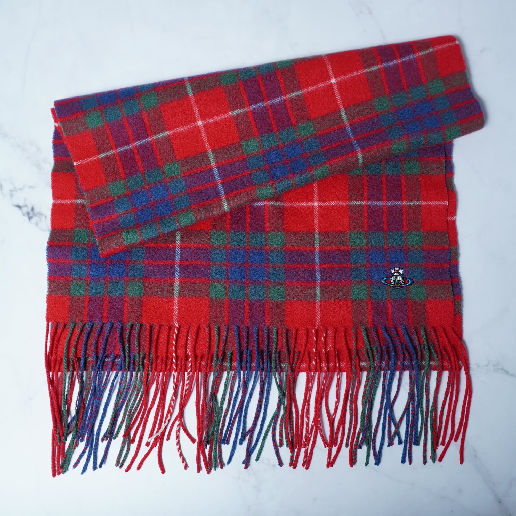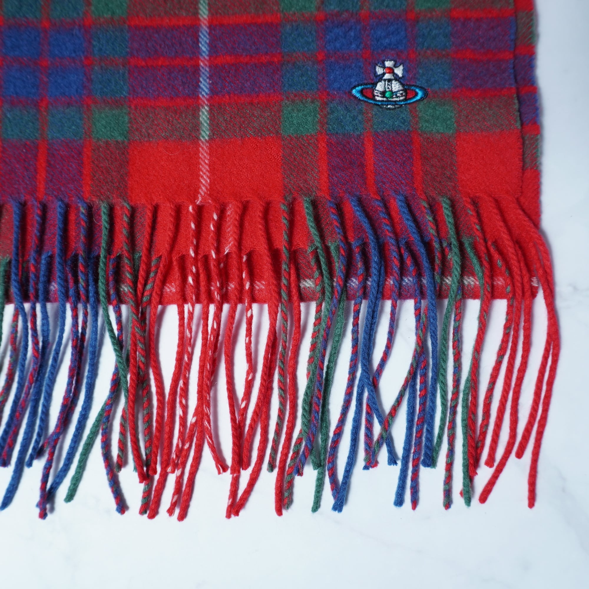 【Vivienne Westwood】ヴィヴィアンウエストウッド ”オーブロゴ刺繡” カシミヤフリンジマフラー red&green&blue