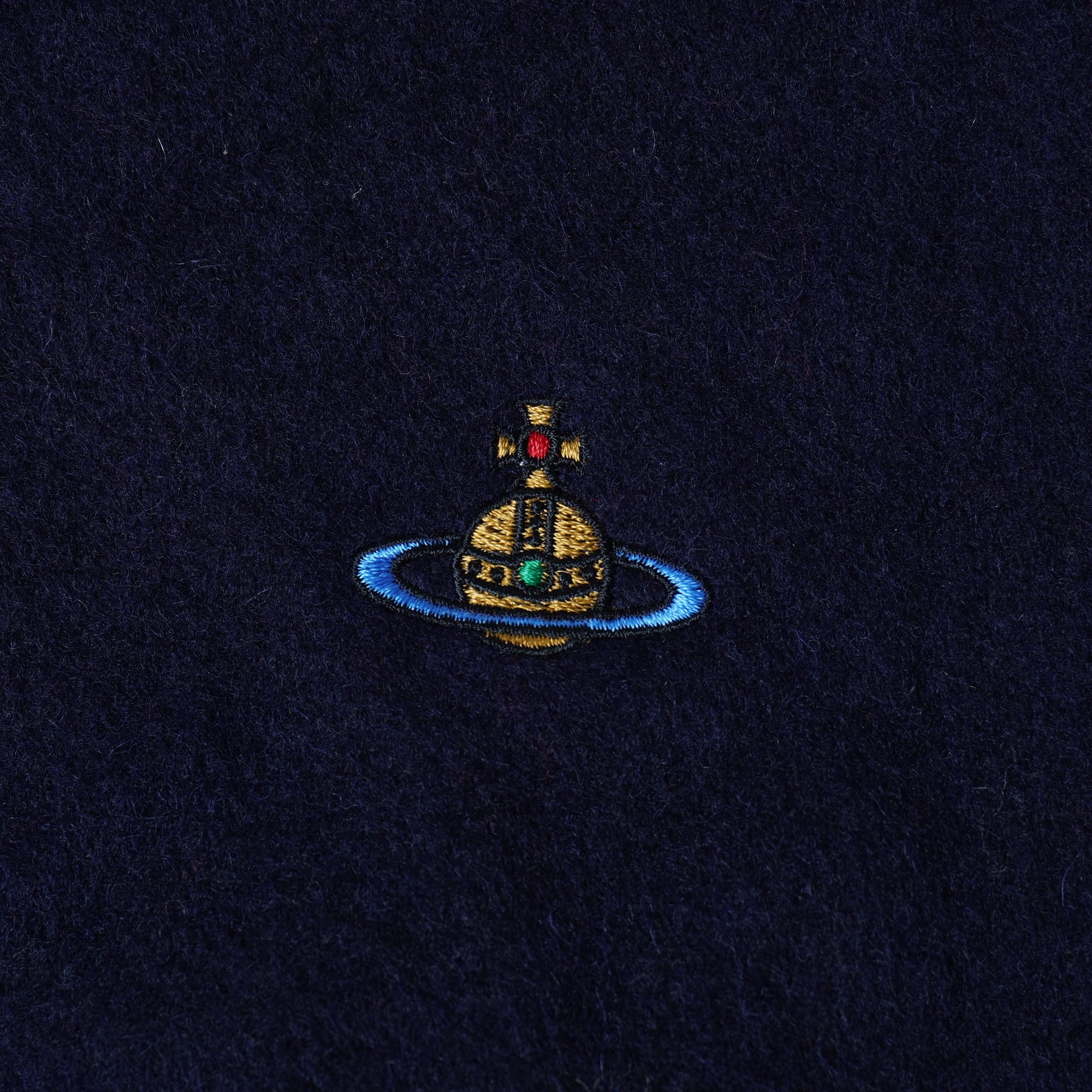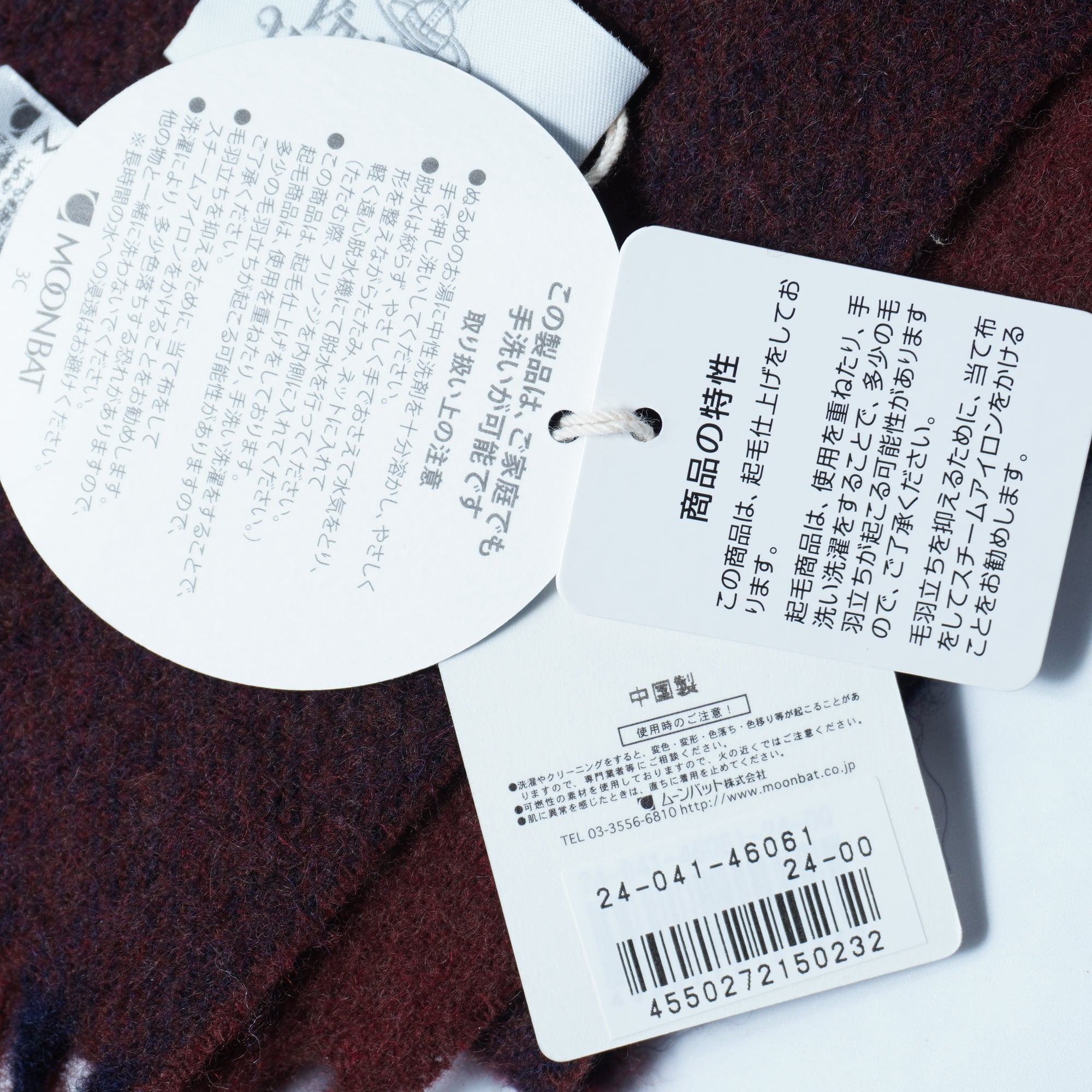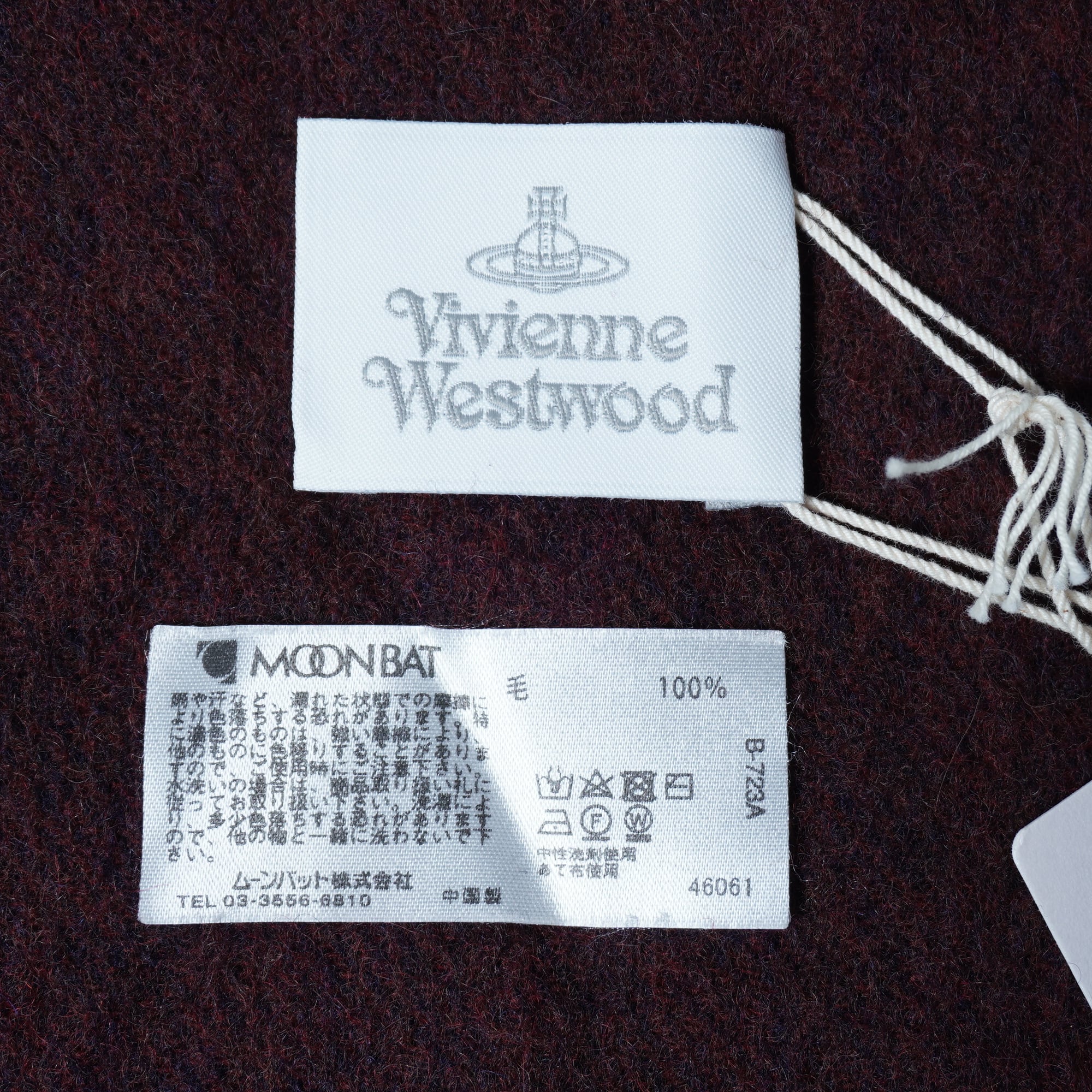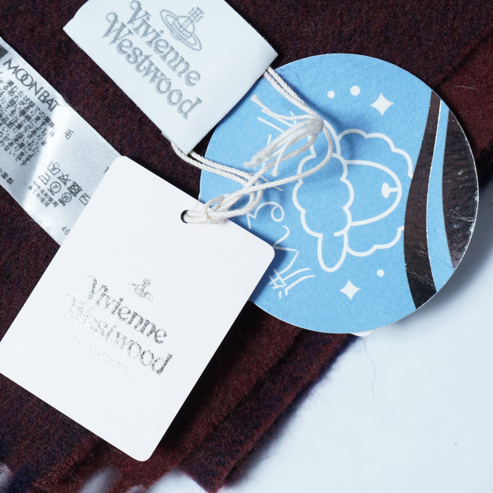 【Vivienne Westwood】ヴィヴィアンウエストウッド ”オーブロゴ刺繍” タグ付WOOL100%チェック柄ショールマフラー navy&brown