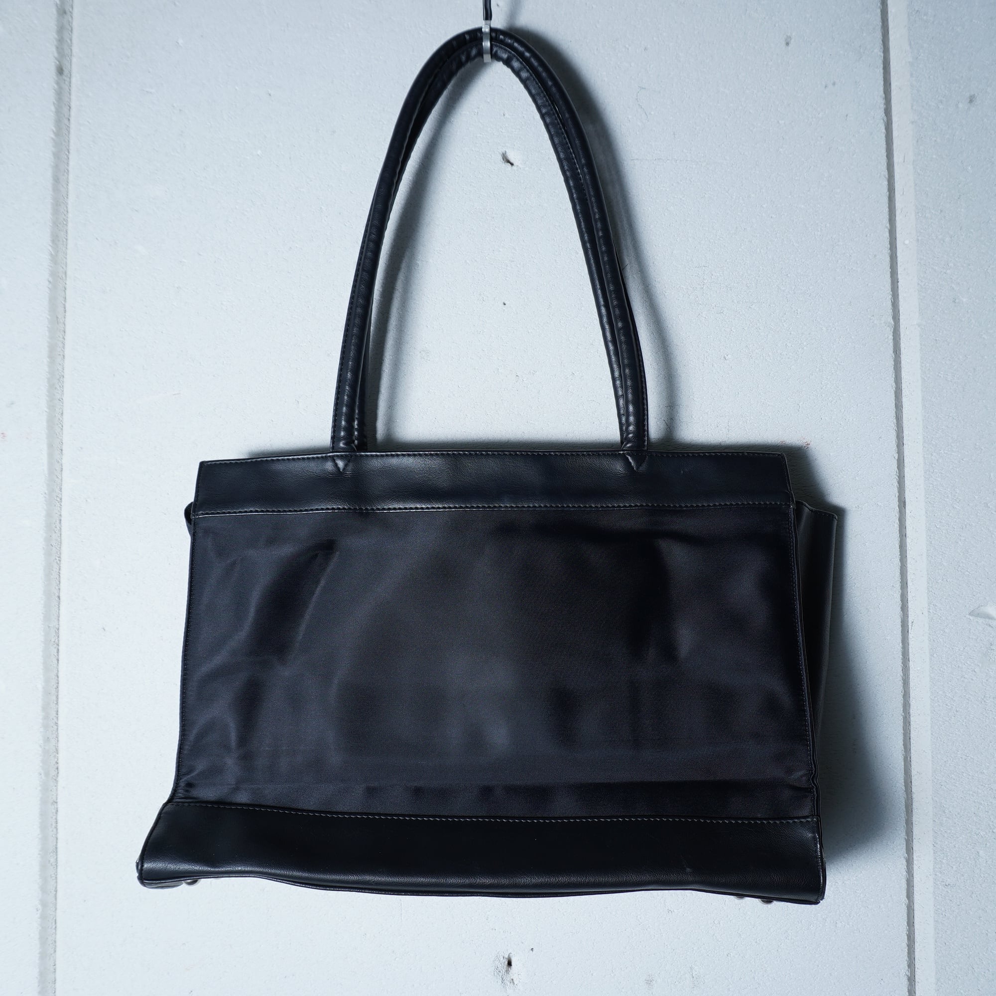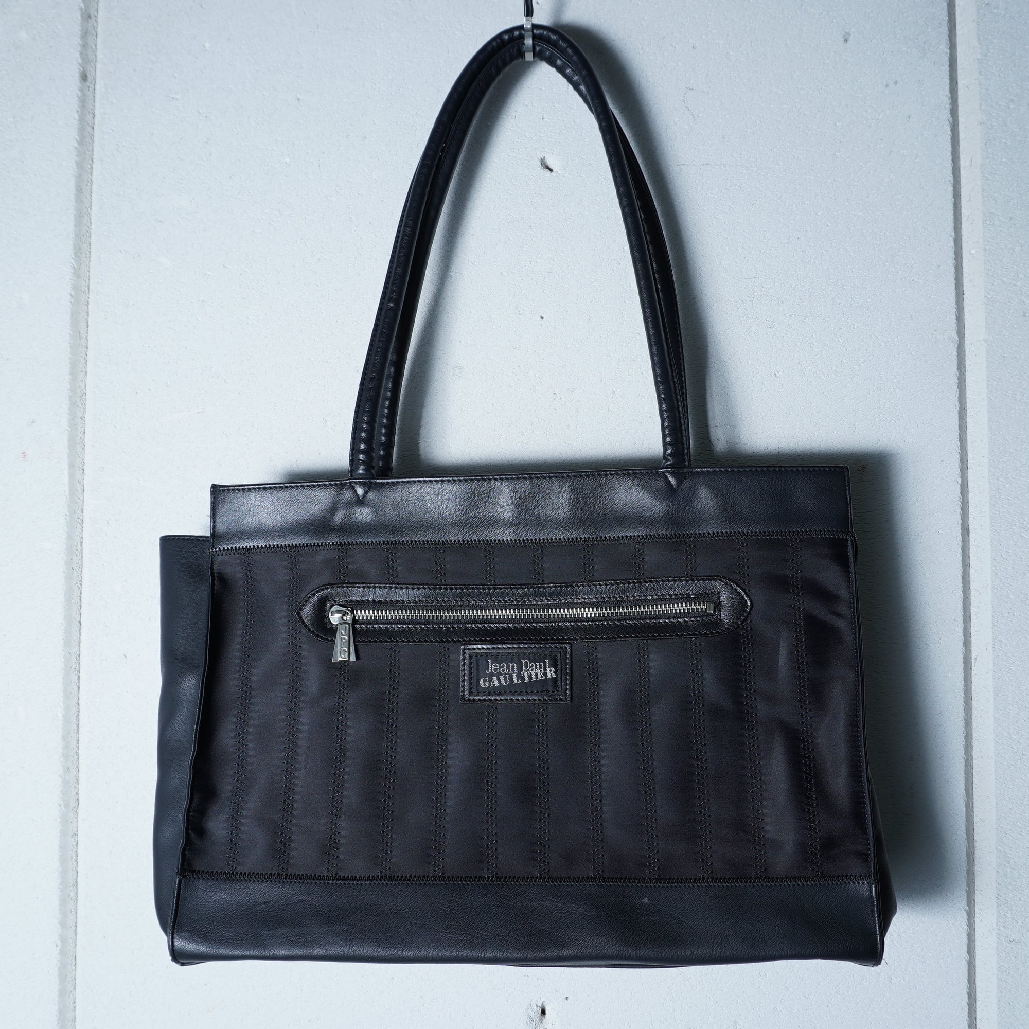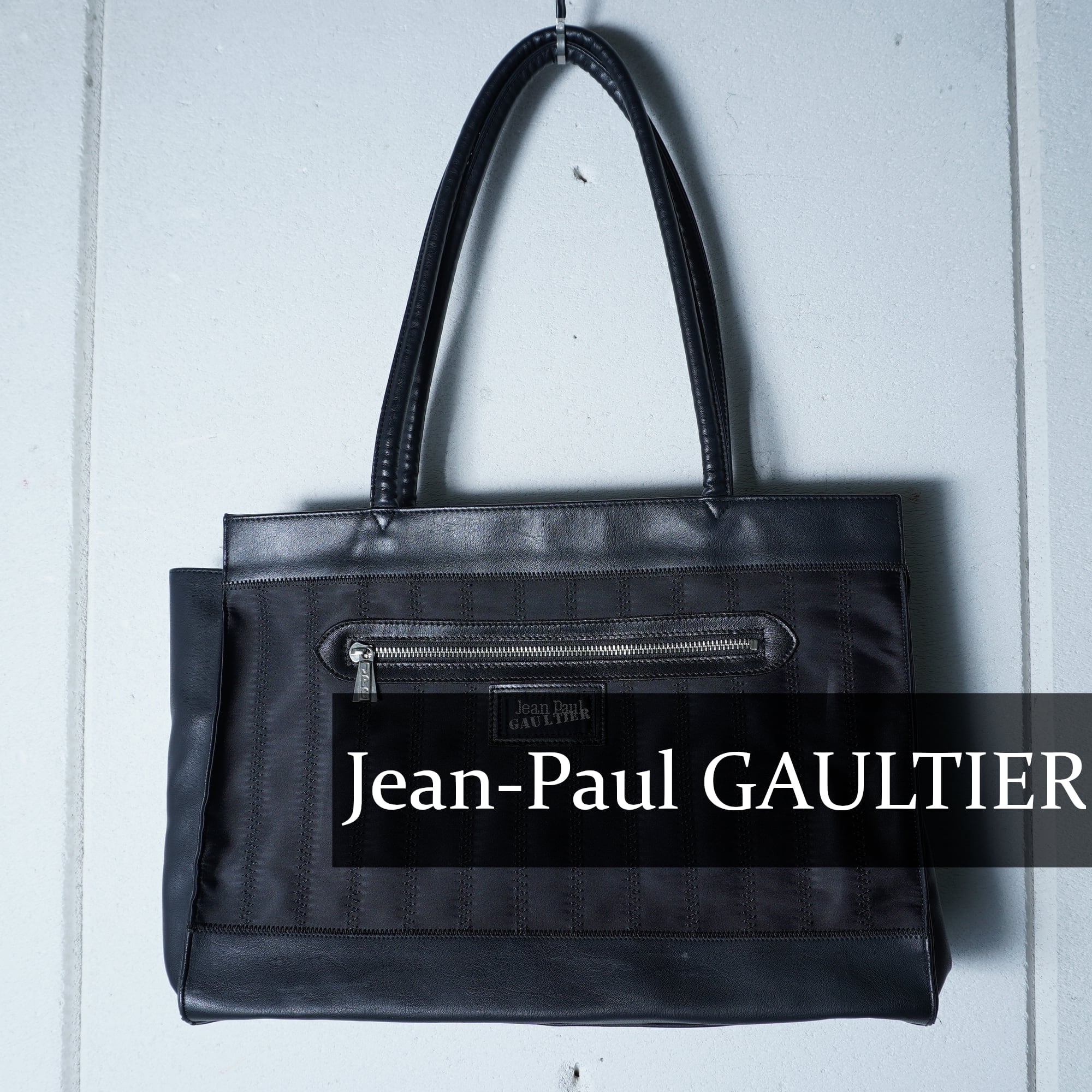 【Jean Paul GAULTIER】ジャンポールゴルチエ "ロゴ入” レザー切替ナイロントートバッグ black