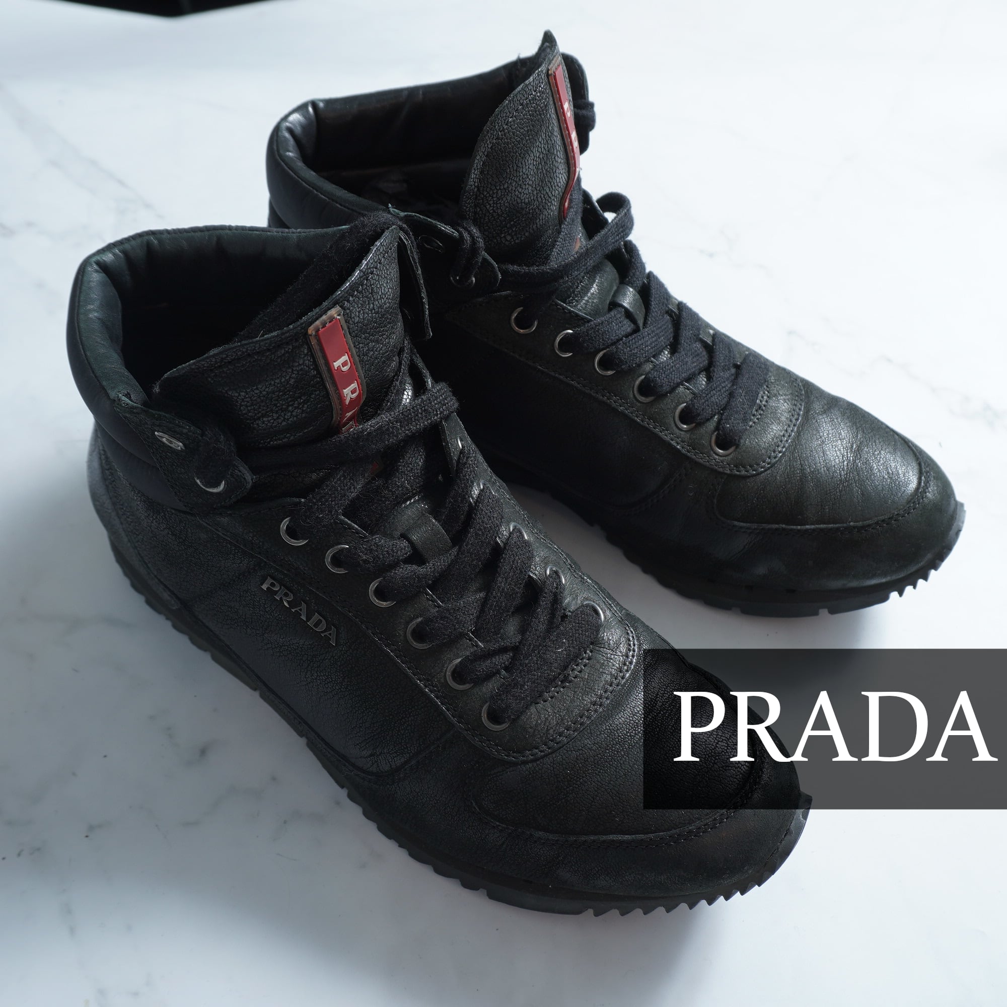 【PRADA】プラダ スポーツ レザーハイカットスニーカー size7 black