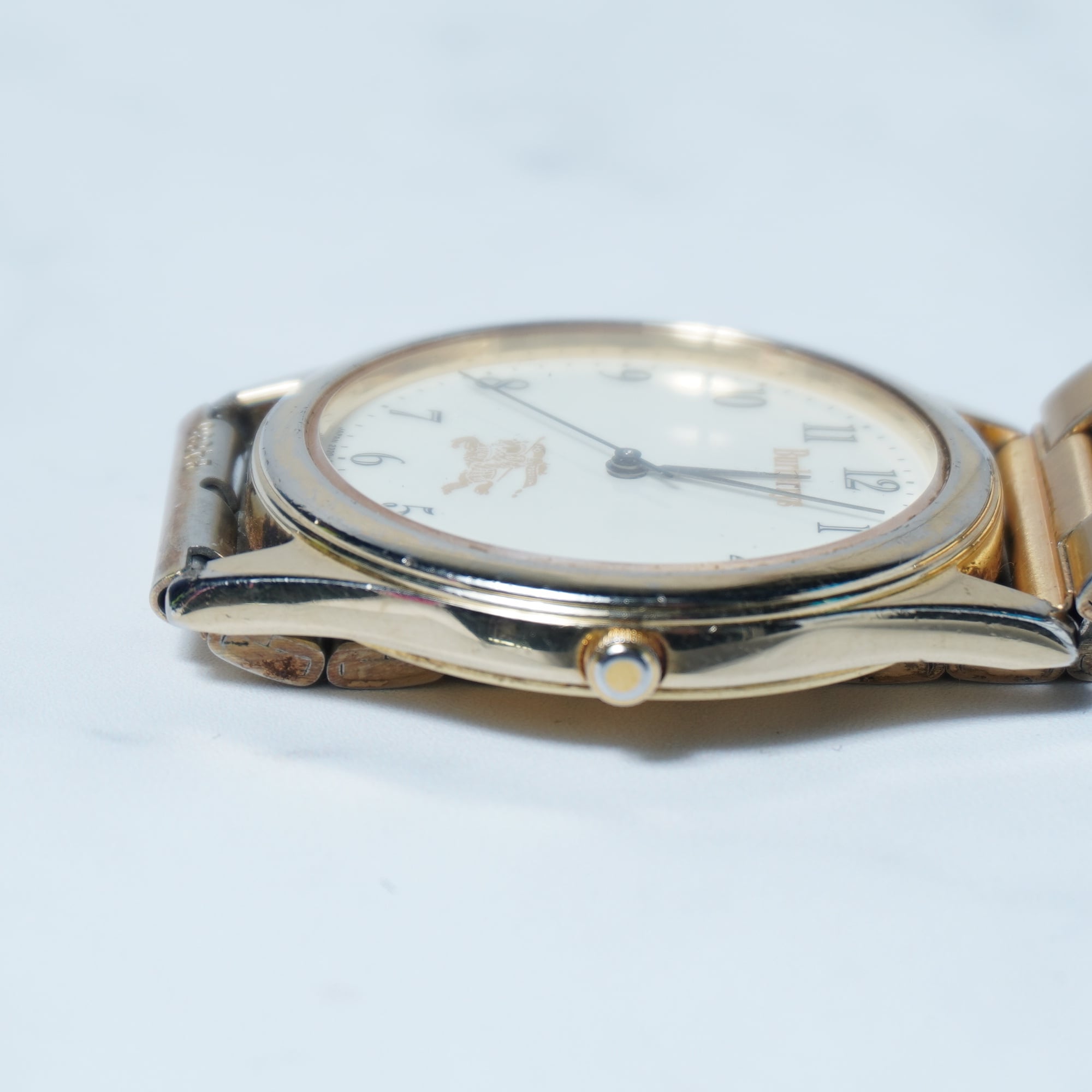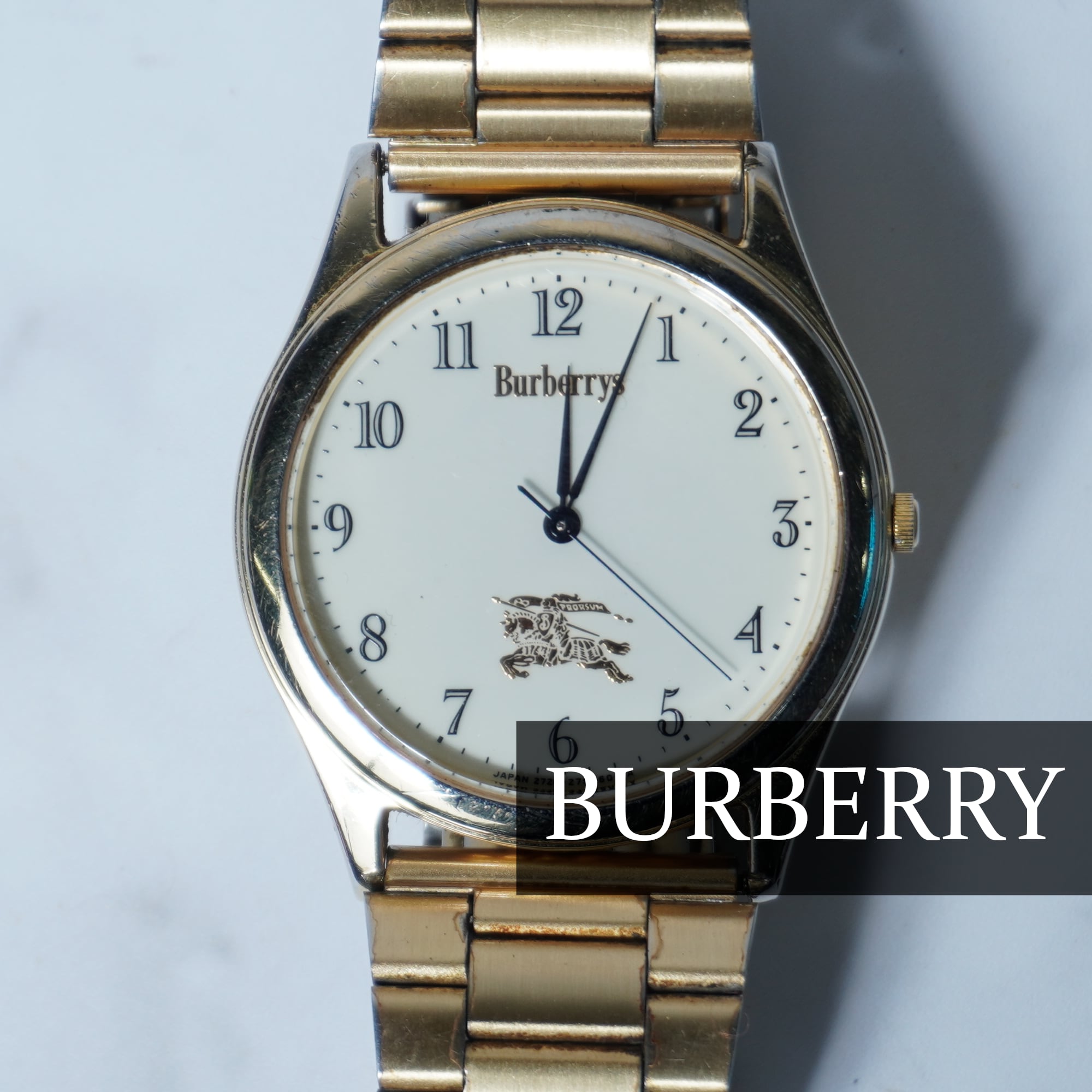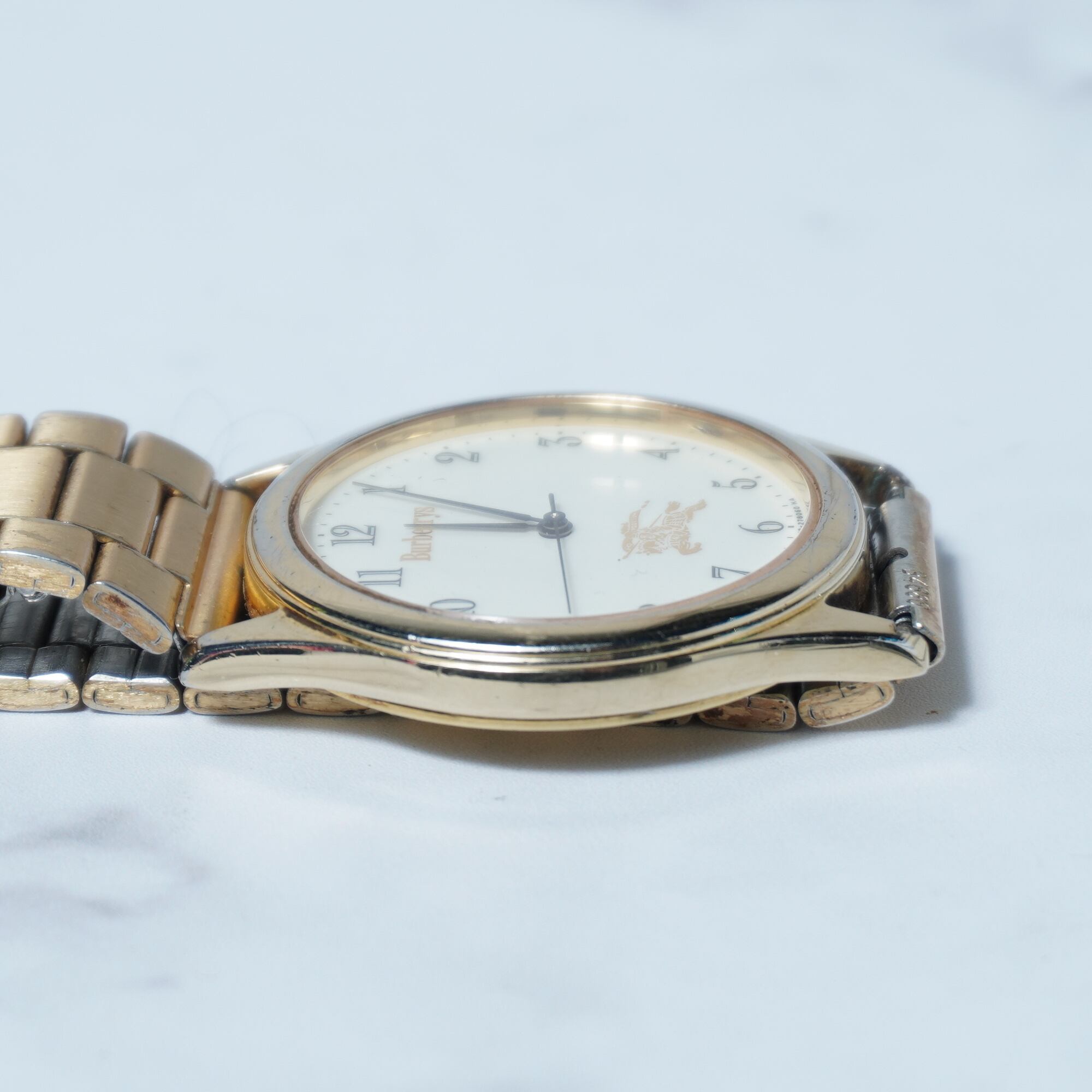 【BURBERRY】バーバリー"稼働品” ”ホースロゴ”ホワイトフェイスクォーツウォッチ gold