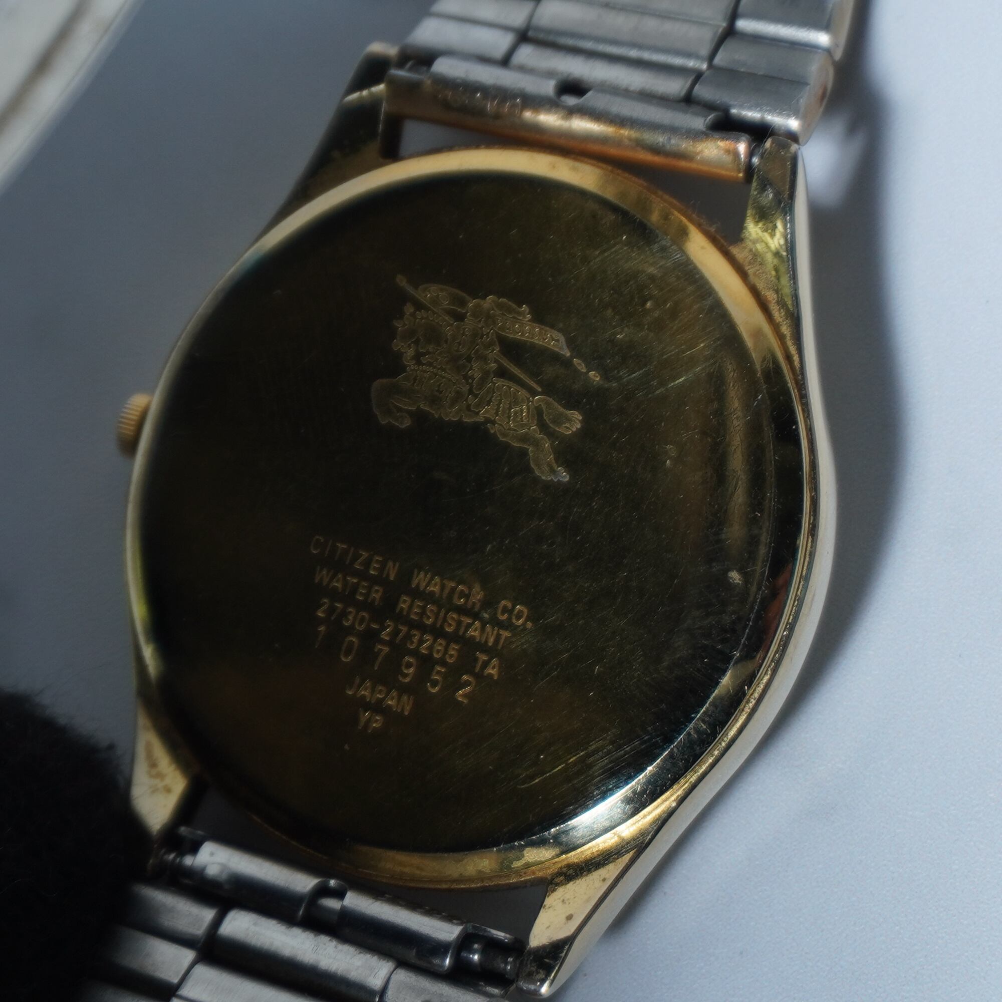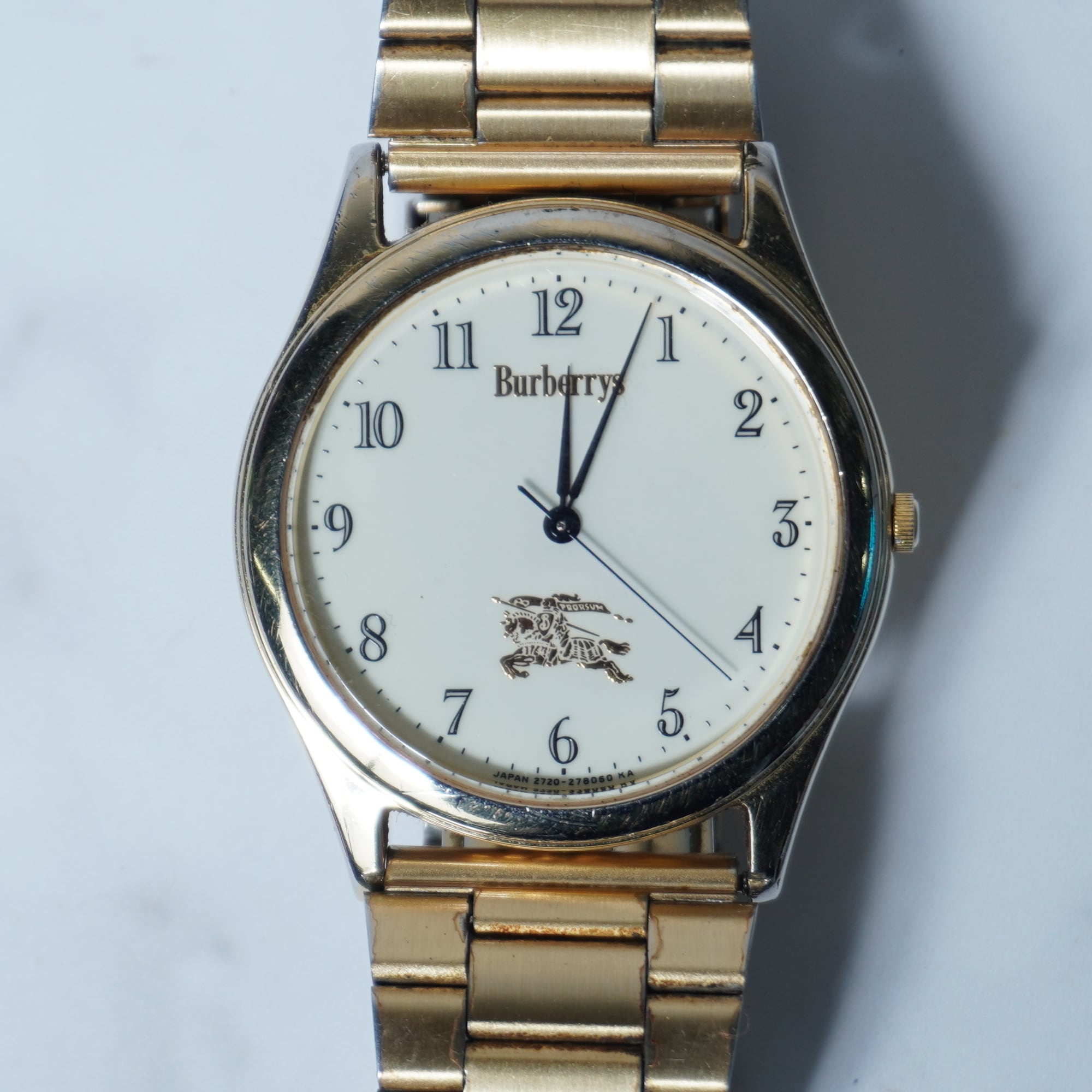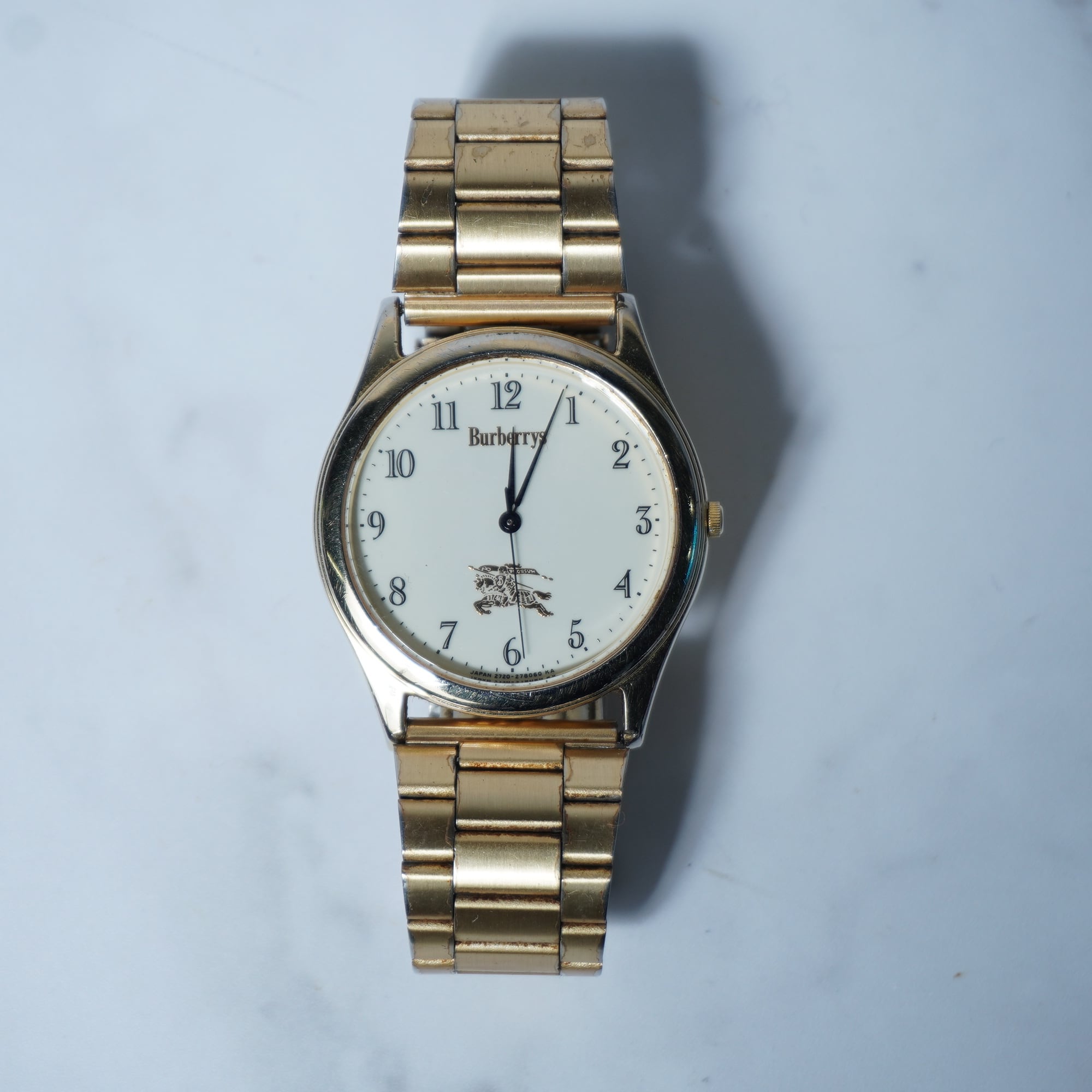 【BURBERRY】バーバリー"稼働品” ”ホースロゴ”ホワイトフェイスクォーツウォッチ gold