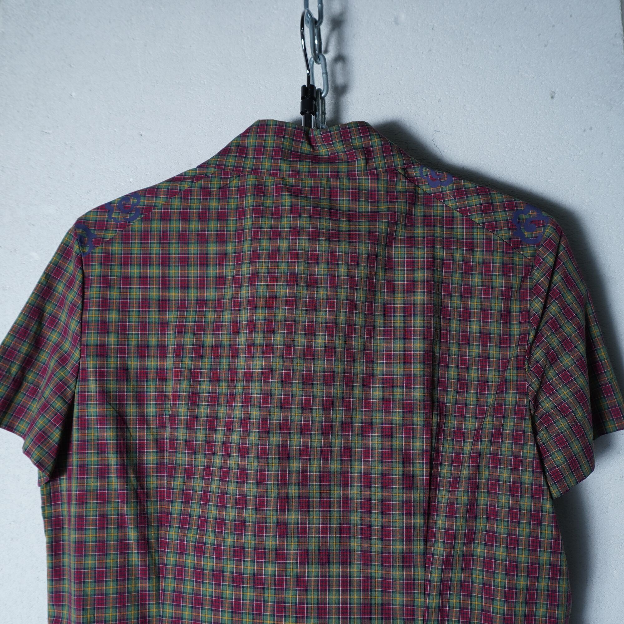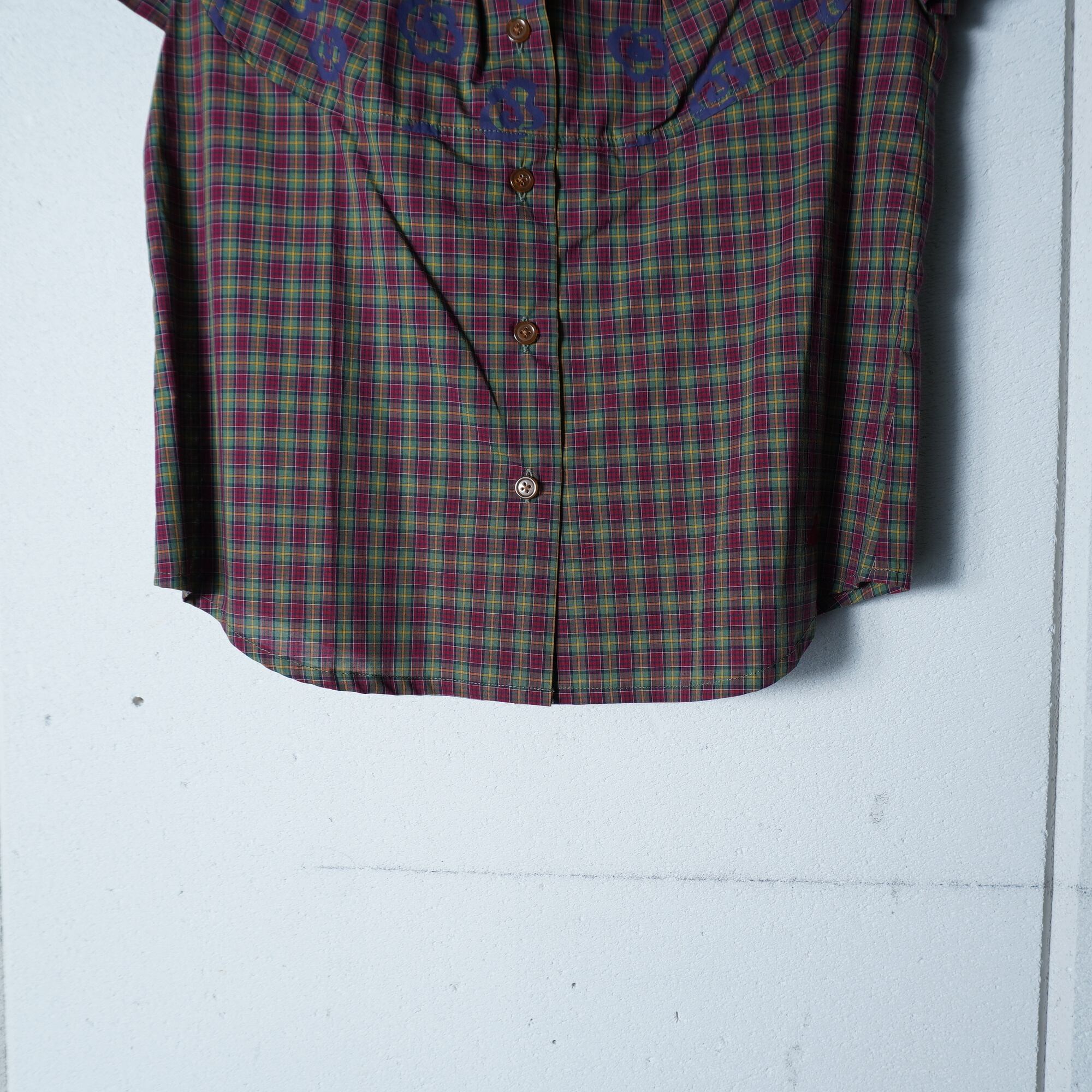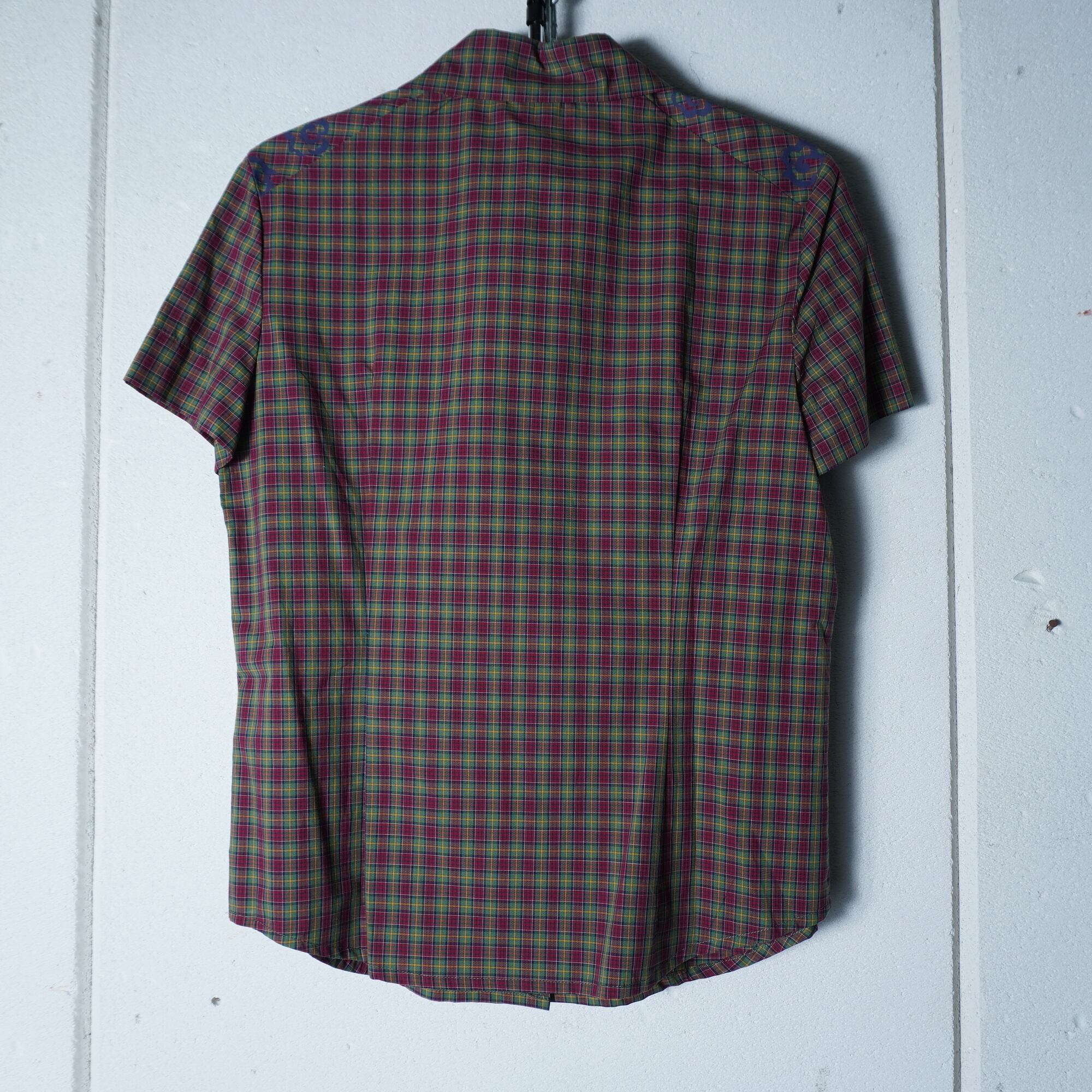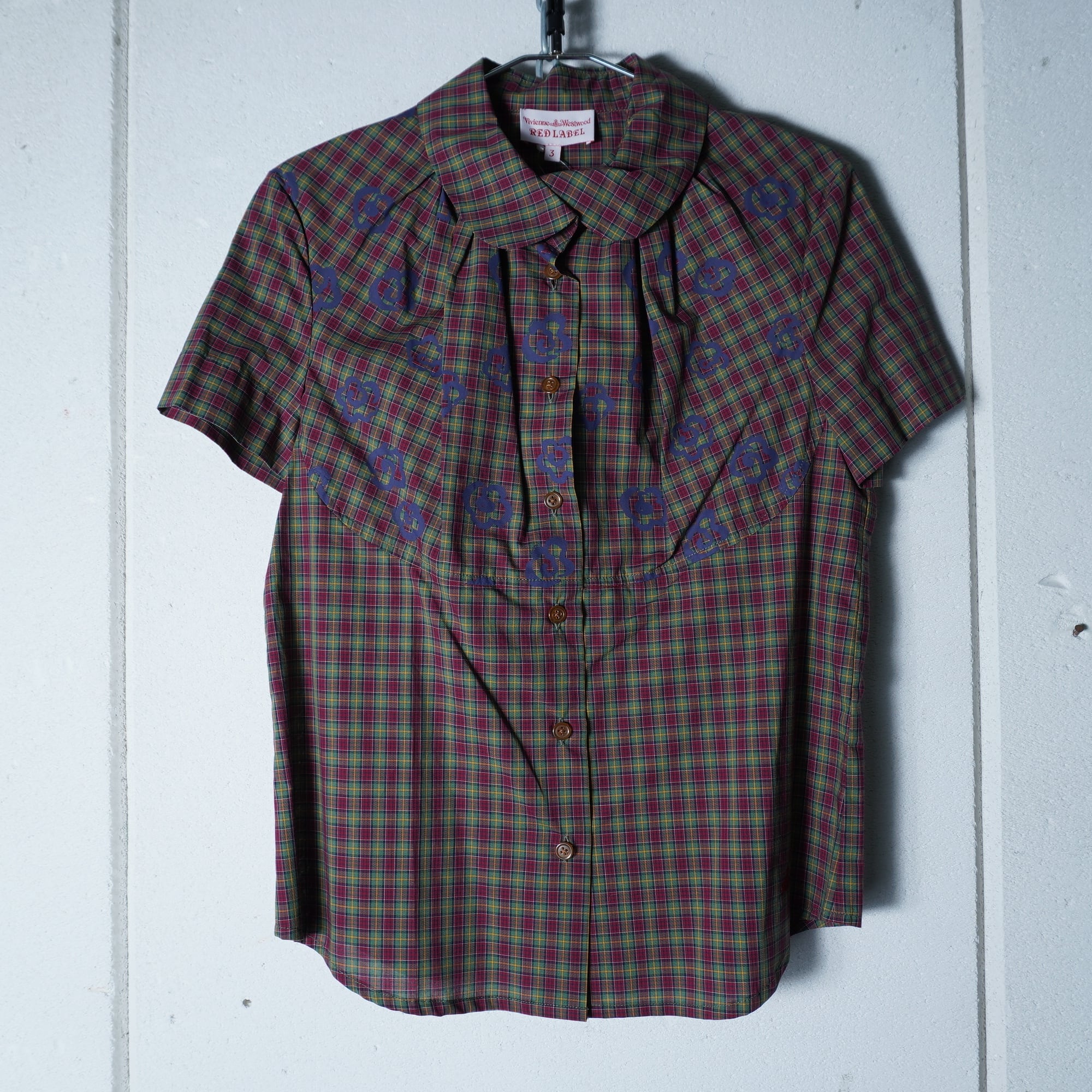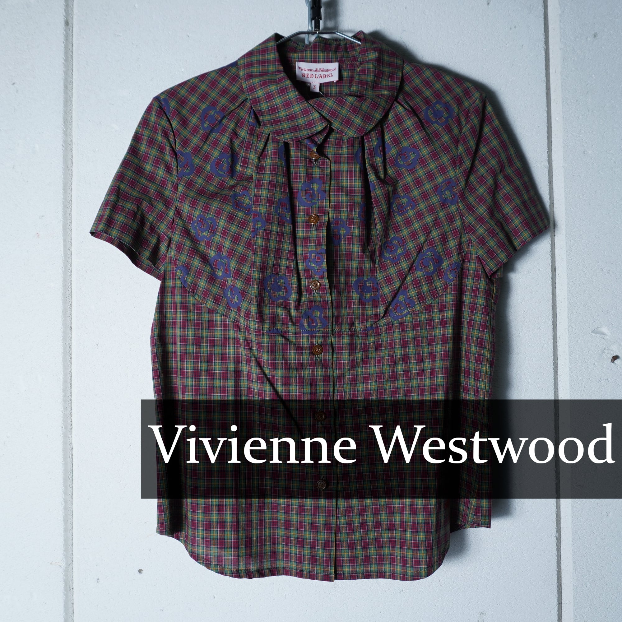 【Vivienne Westwood】ヴィヴィアンウエストウッド タグ付チェック柄フラワープリントボタンシャツ khaki&wine red