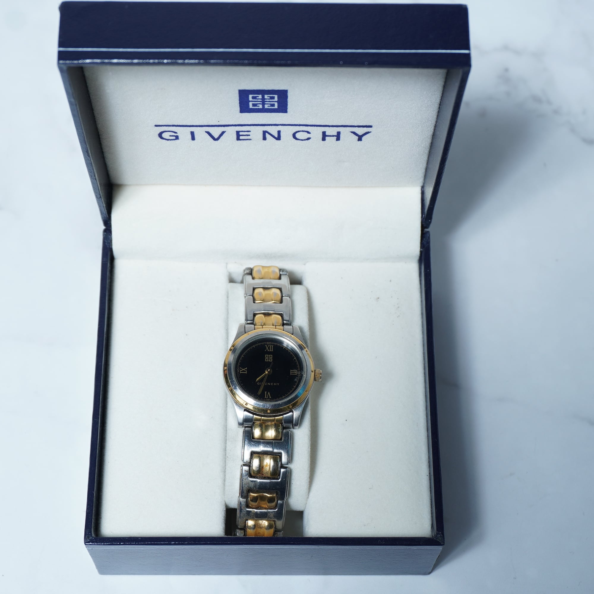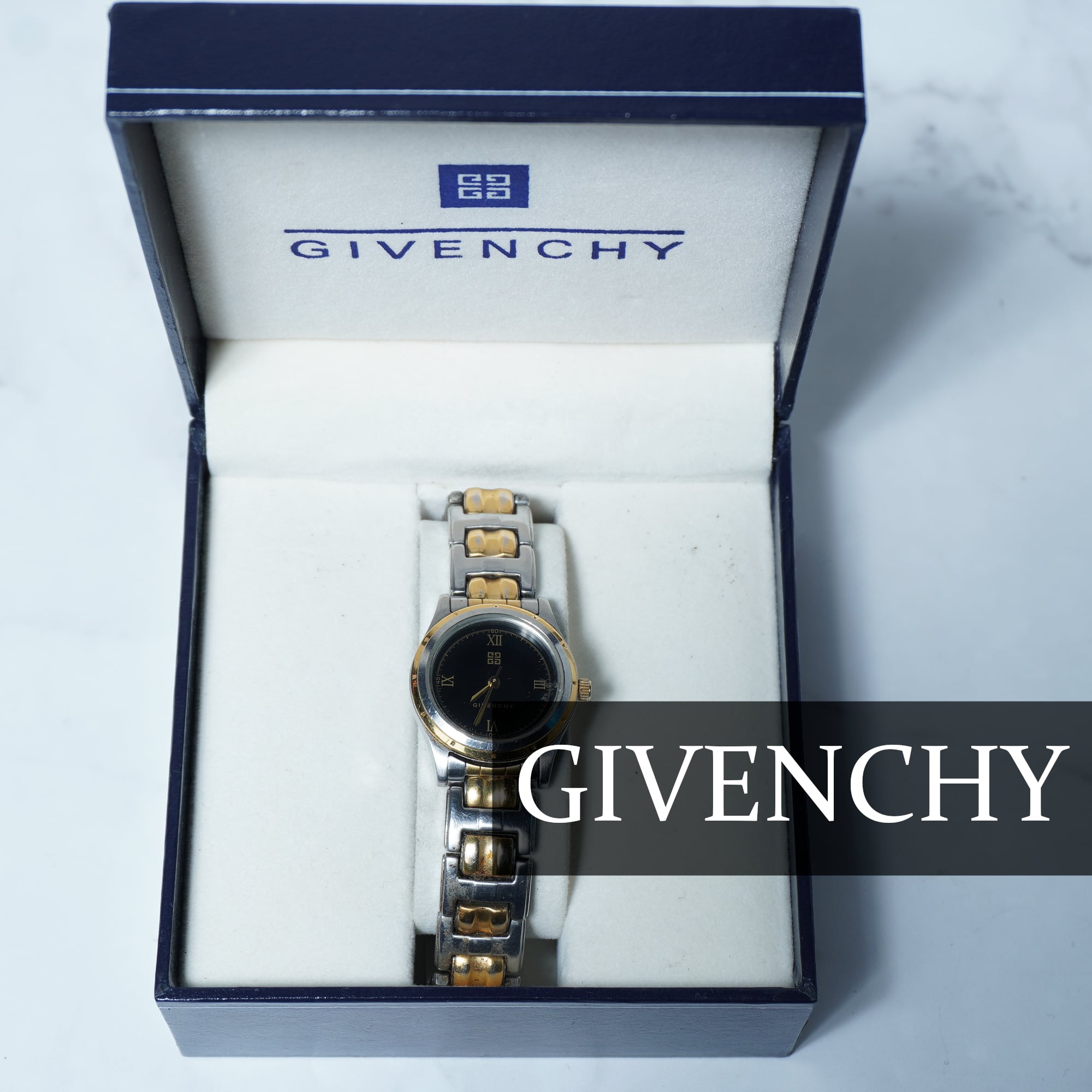 【GIVENCHY】ジバンシー ”稼働品””4Gロゴ”箱入ブラックフェイス2トーンクォーツウォッチ silver & gold