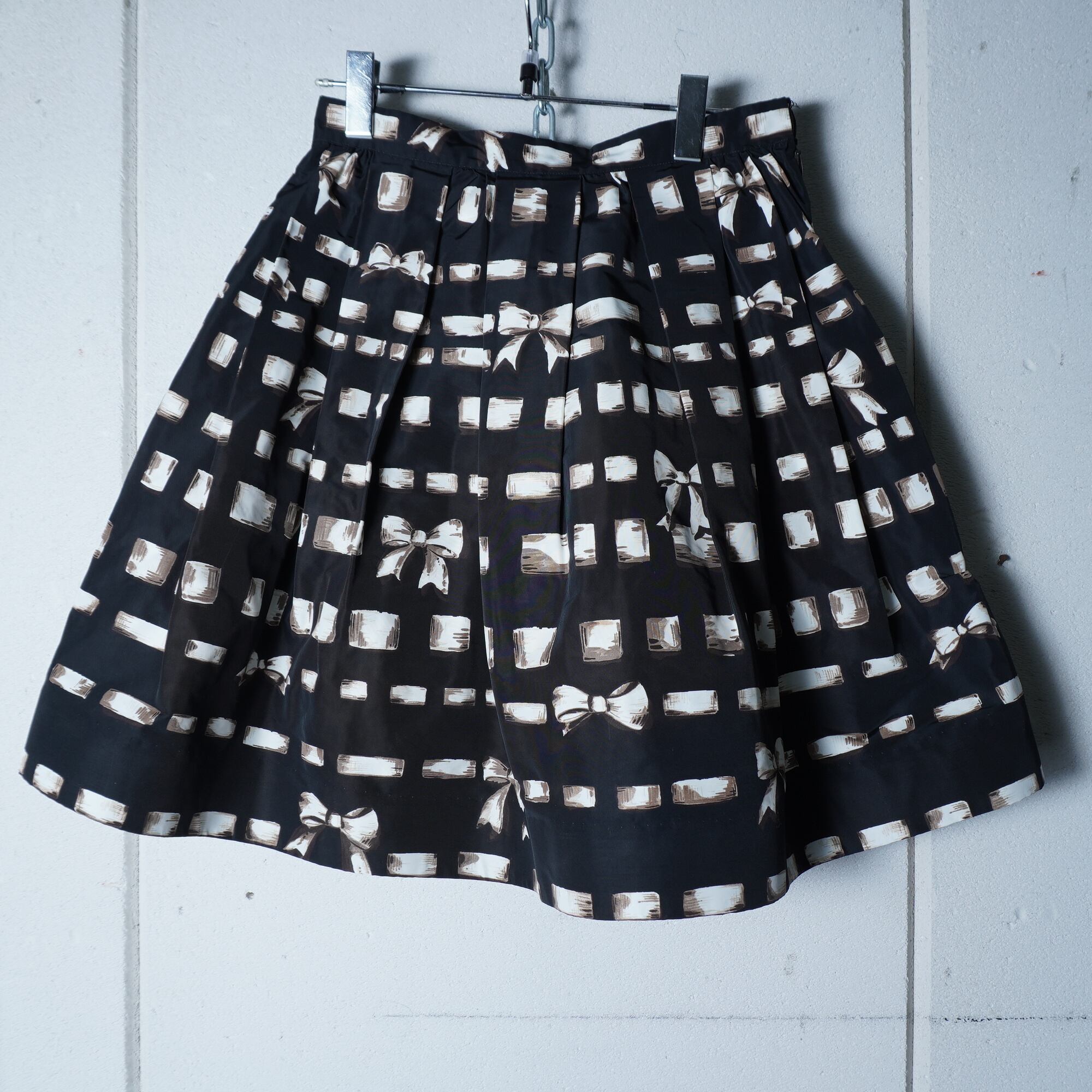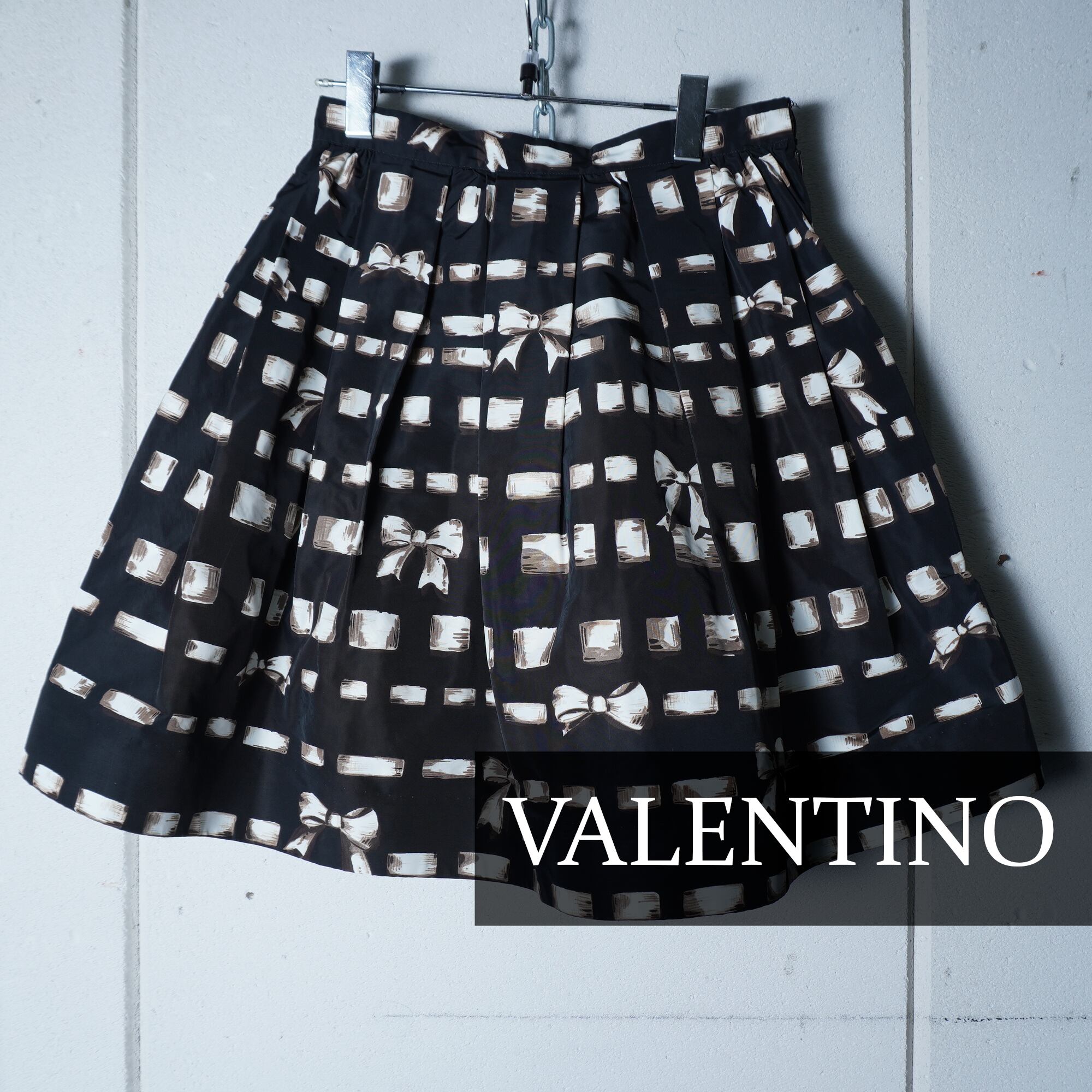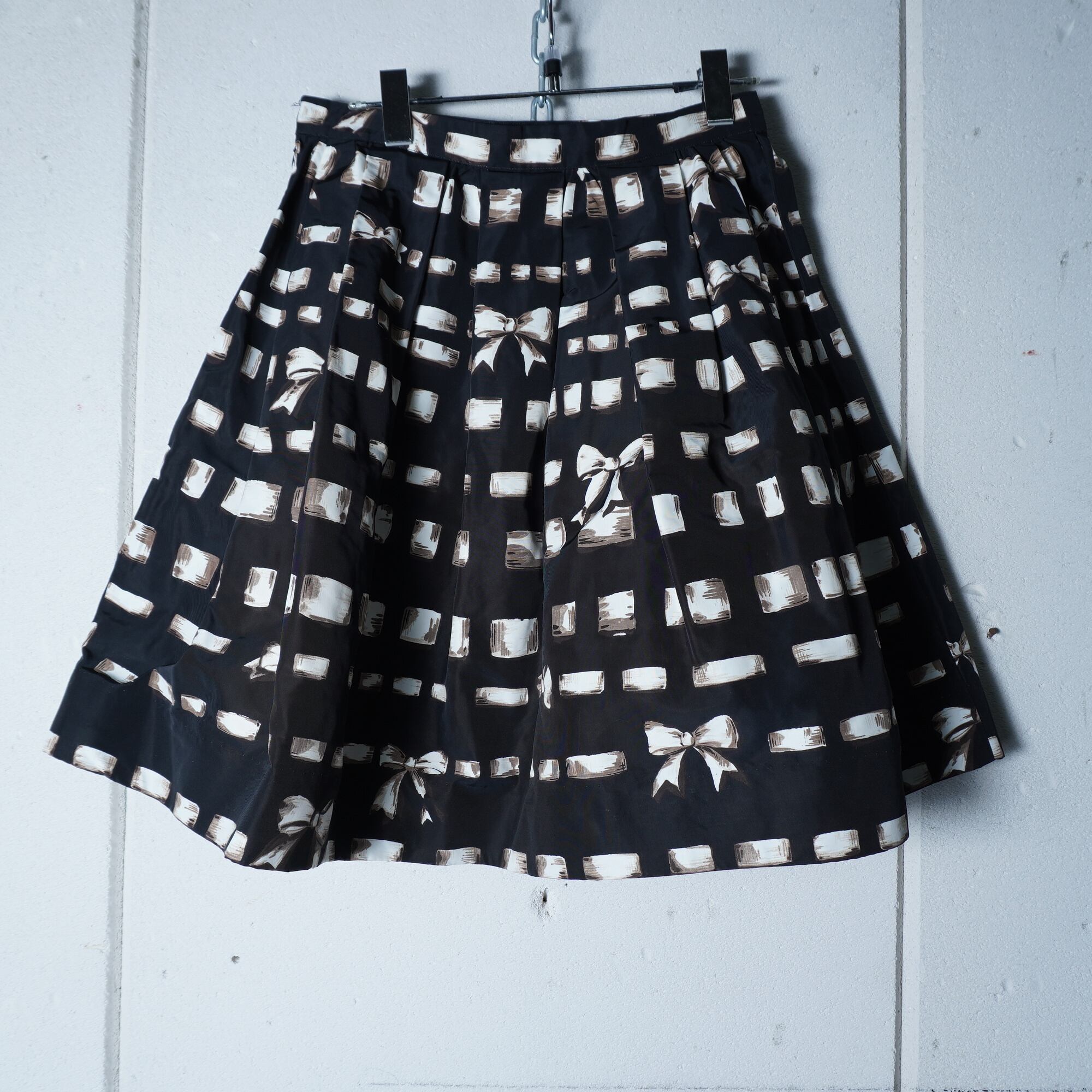 【RED VALENTINO】レッドヴァレンティノ リボン柄フレアスカート black & white