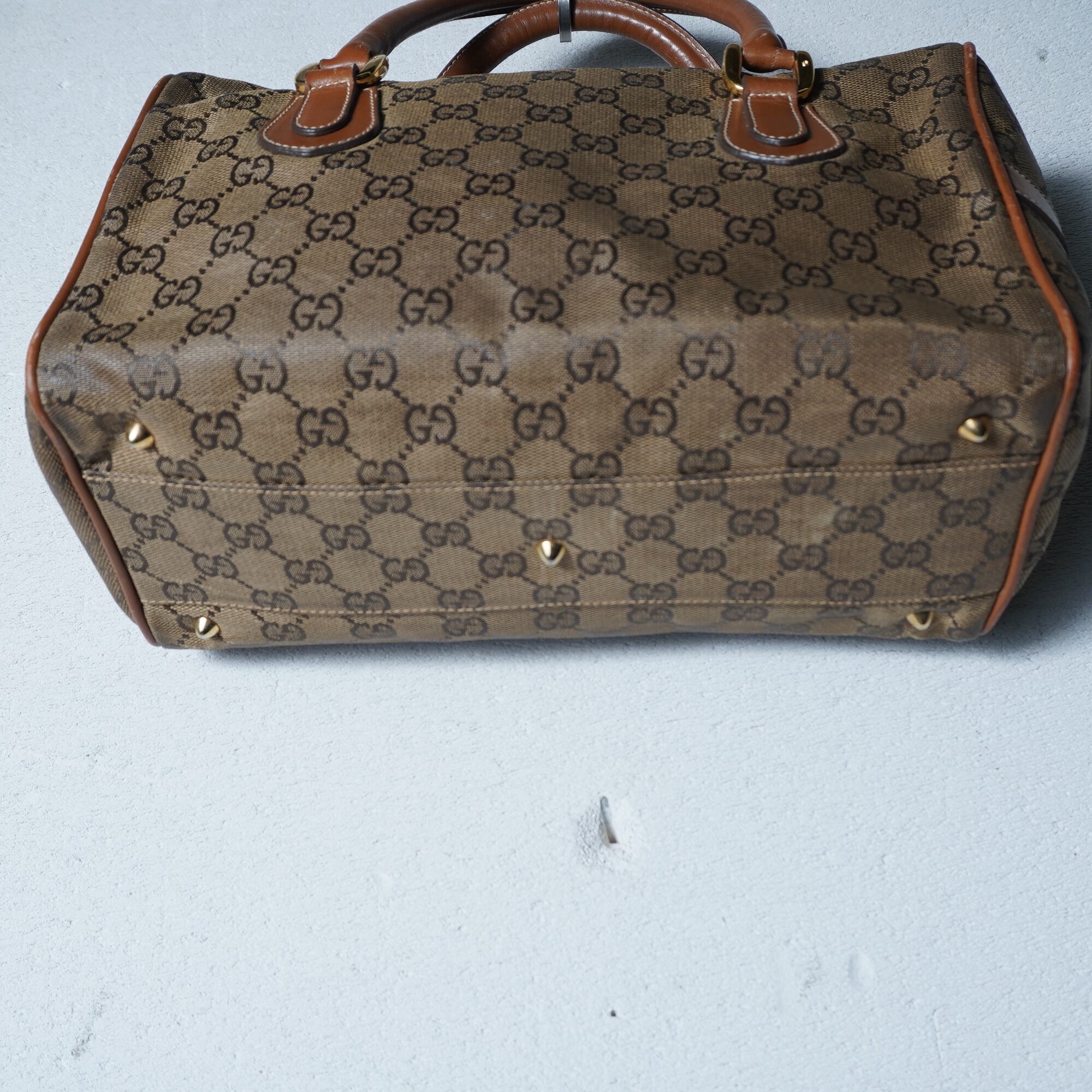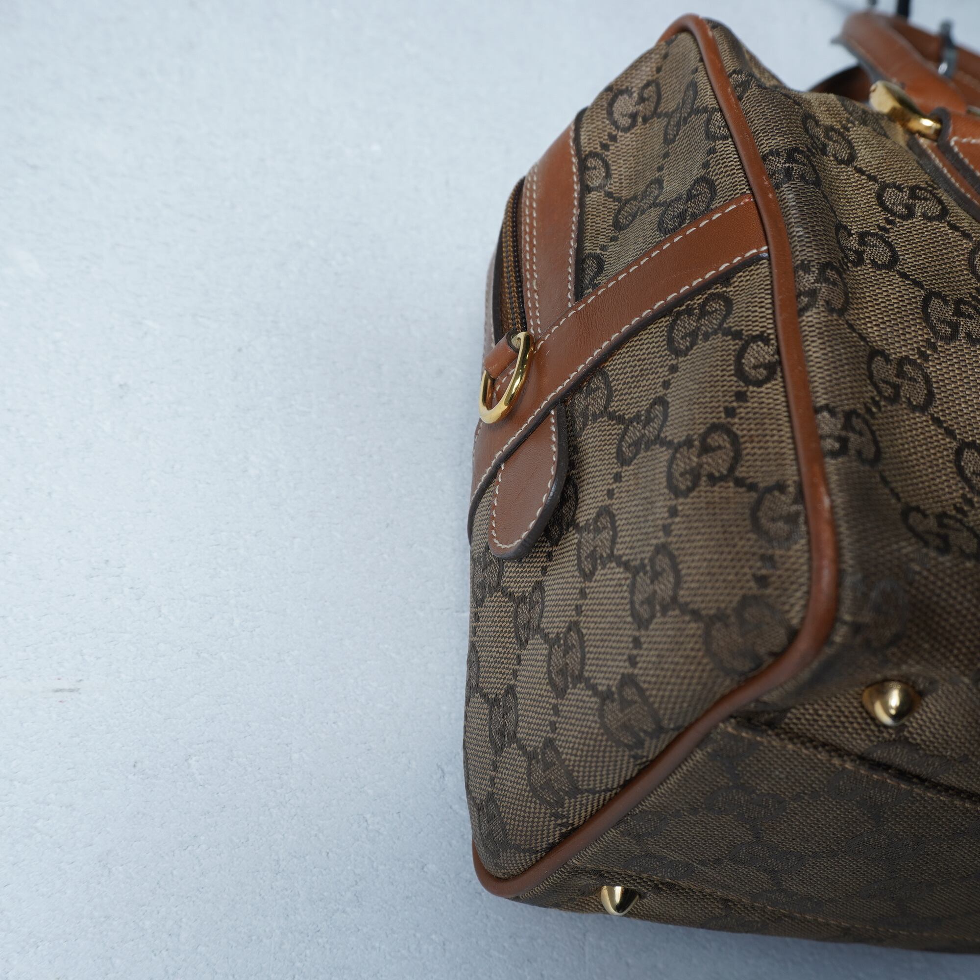 【GUCCI】グッチ "インターロッキンGロゴ”レザー切替ミニボストンバッグ brown