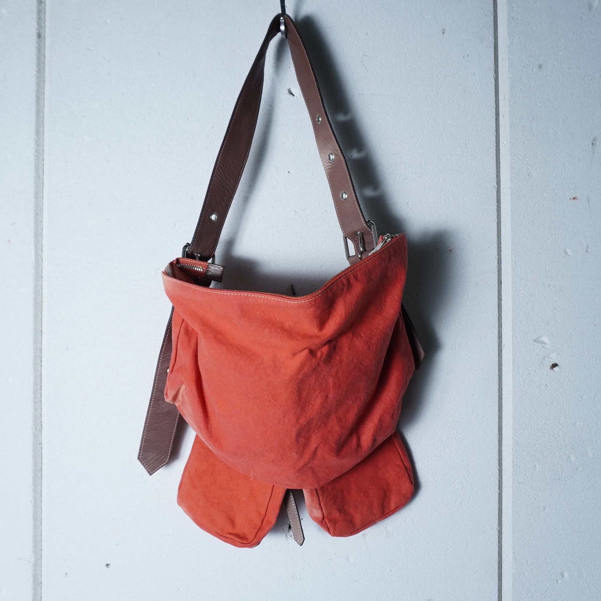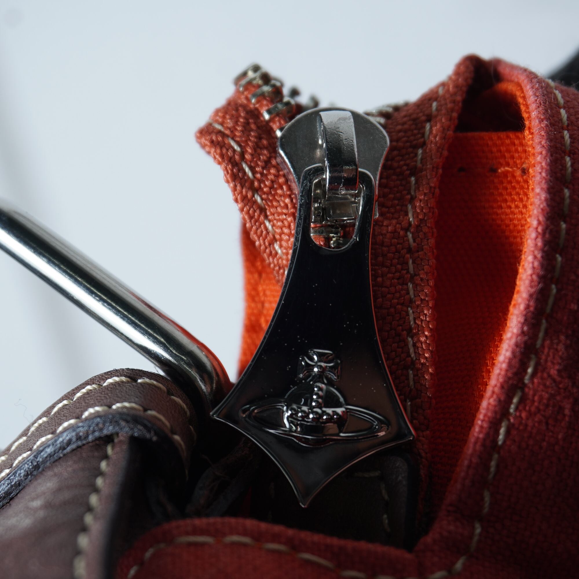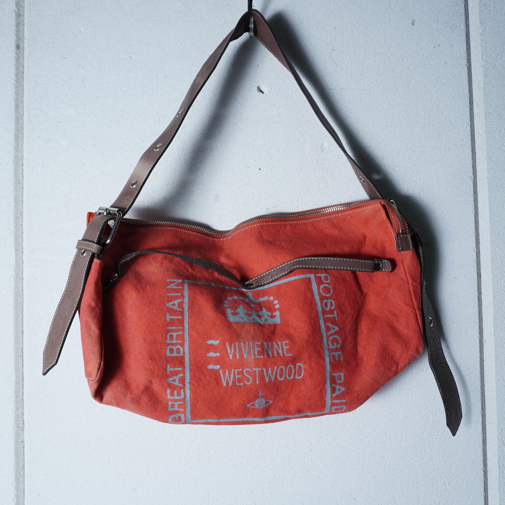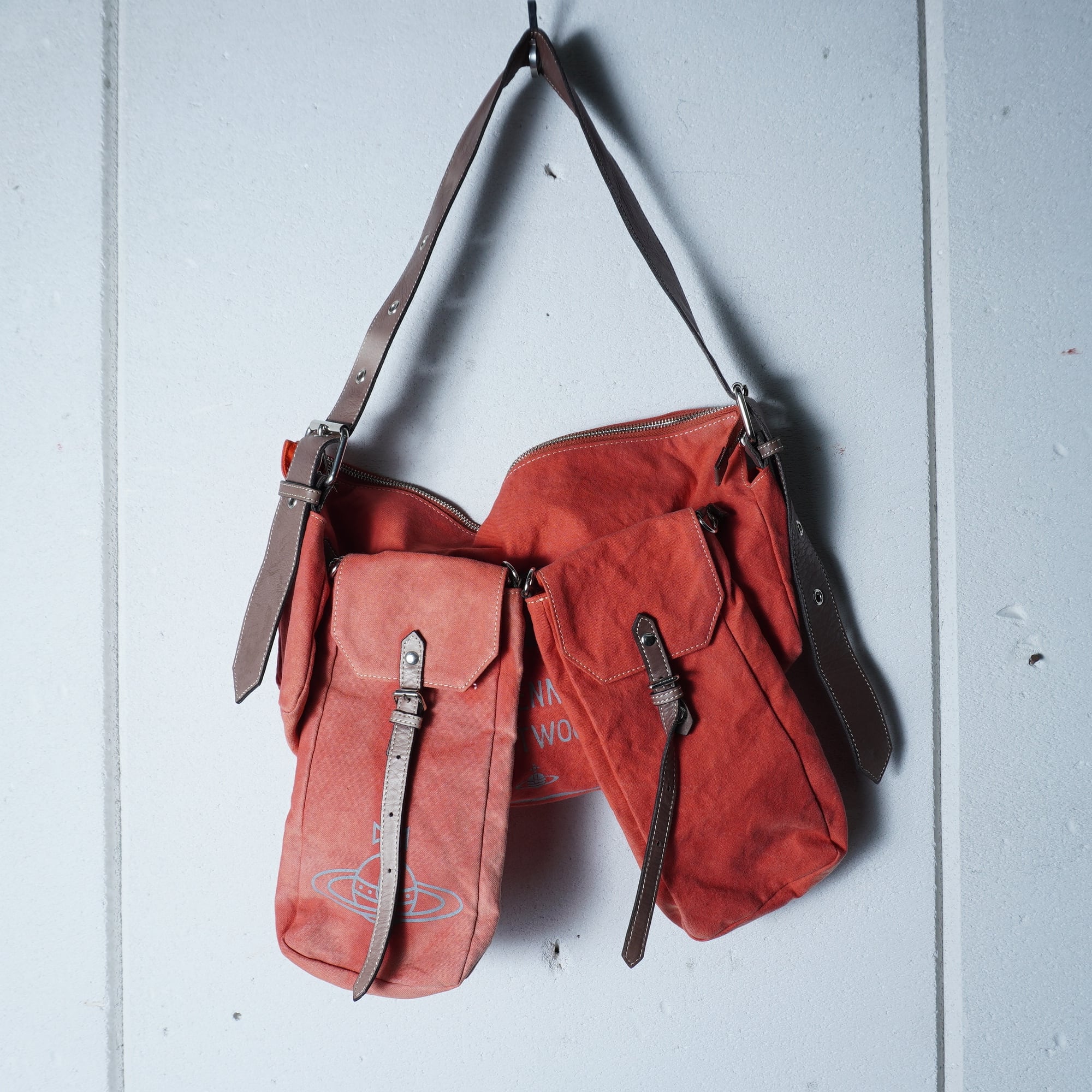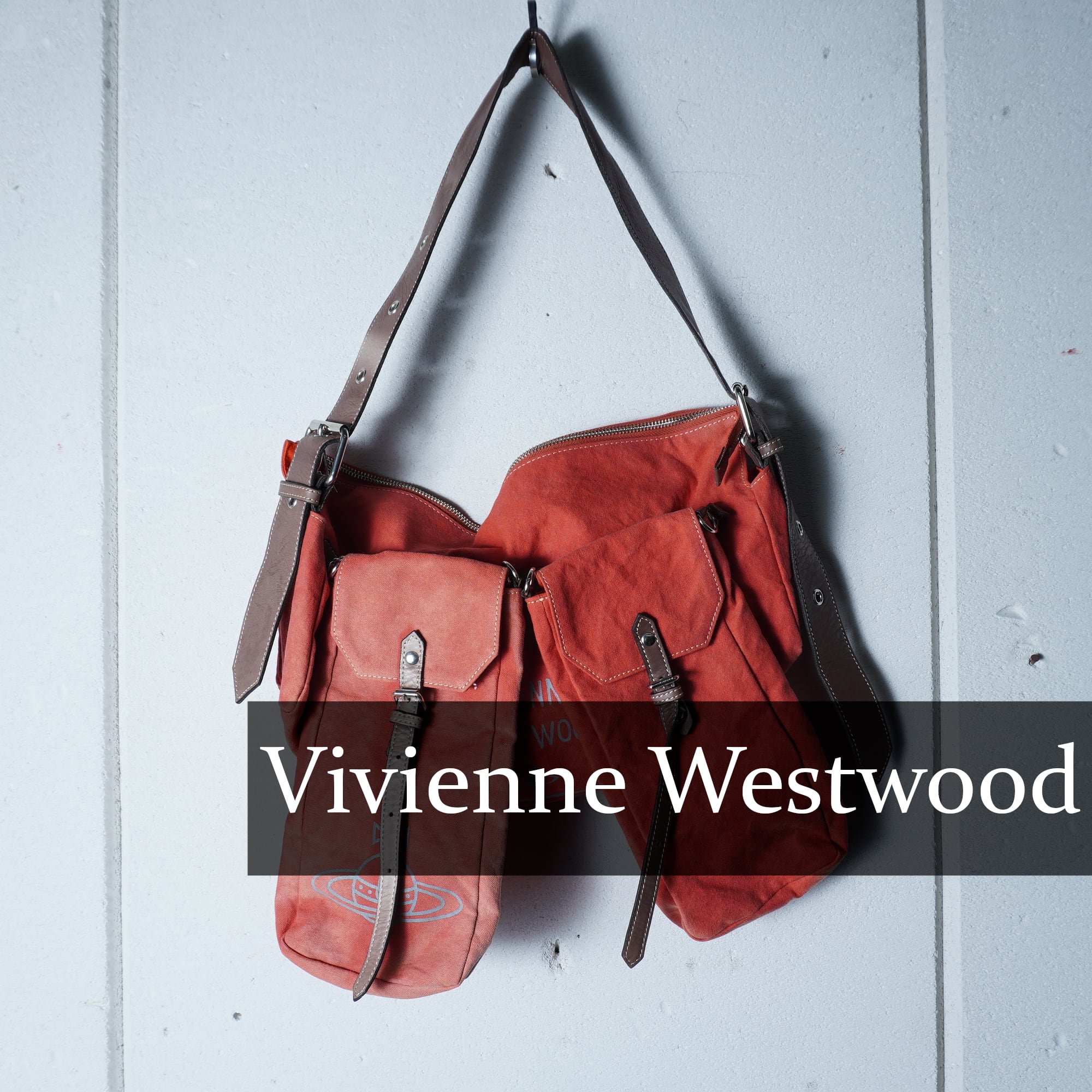 【Vivienne Westwood】ヴィヴィアンウエストウッド "オーブロゴ・Y2K" 2ポーチ付カウレザー切替ショルダーバッグ orange&brown